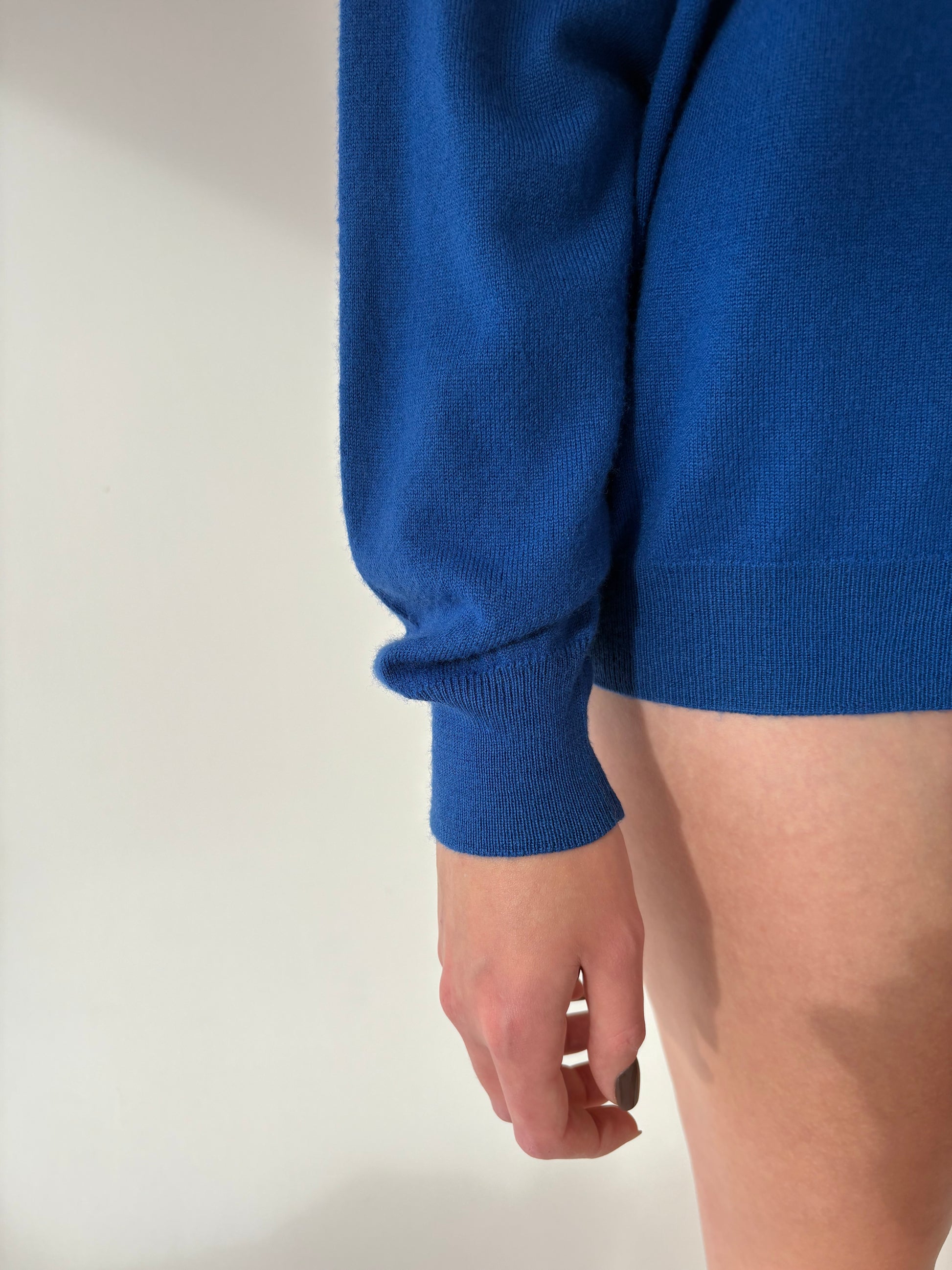Pulover vintage polo italian albastru regal din lana merino extrafina