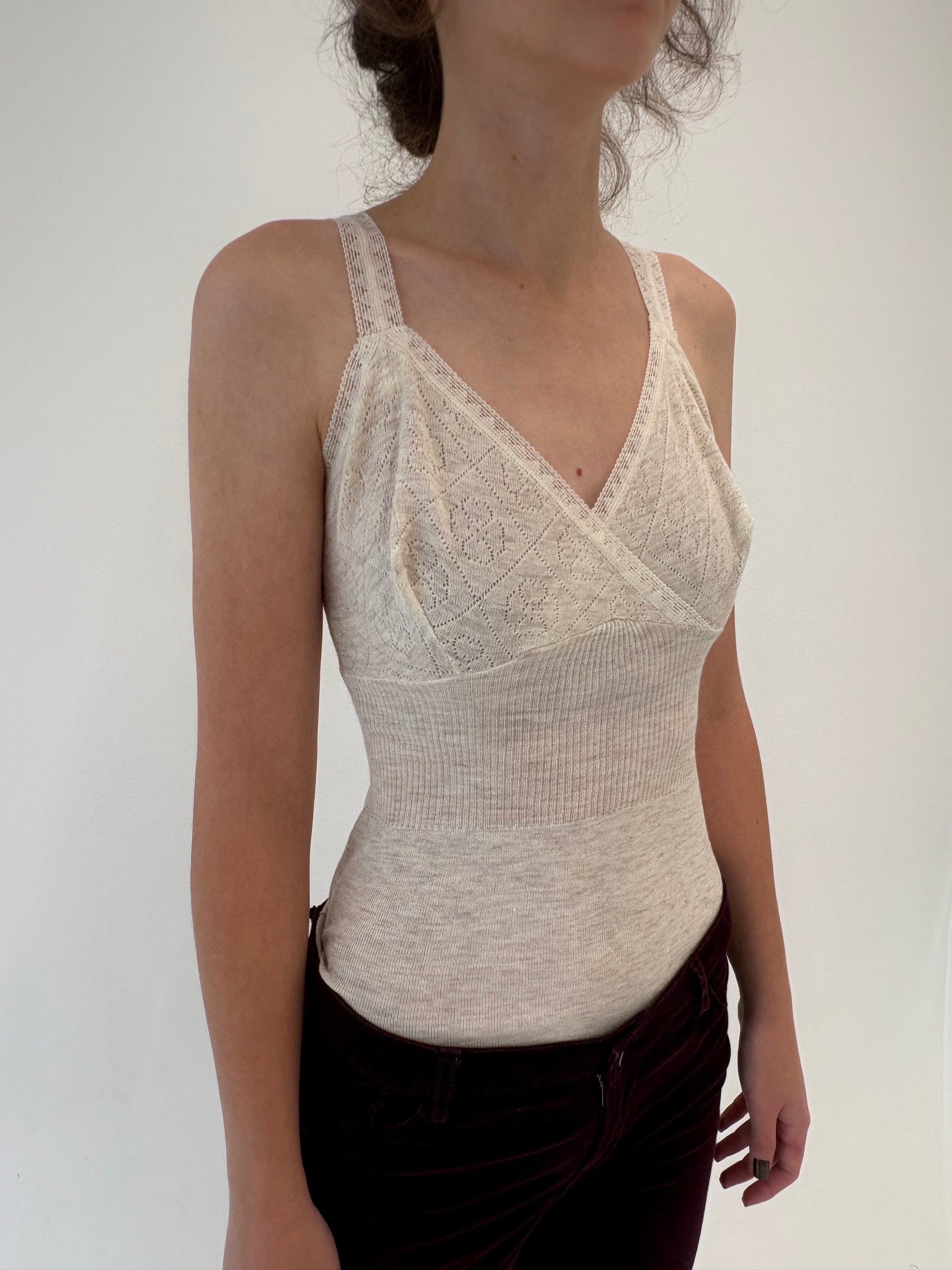 Maieu italian cambrat petite light nude din lana extrafina irestringibila