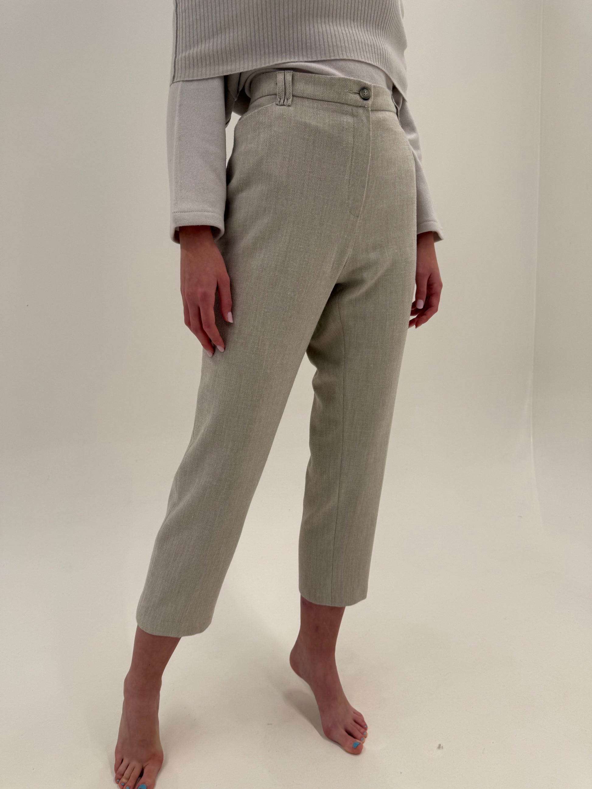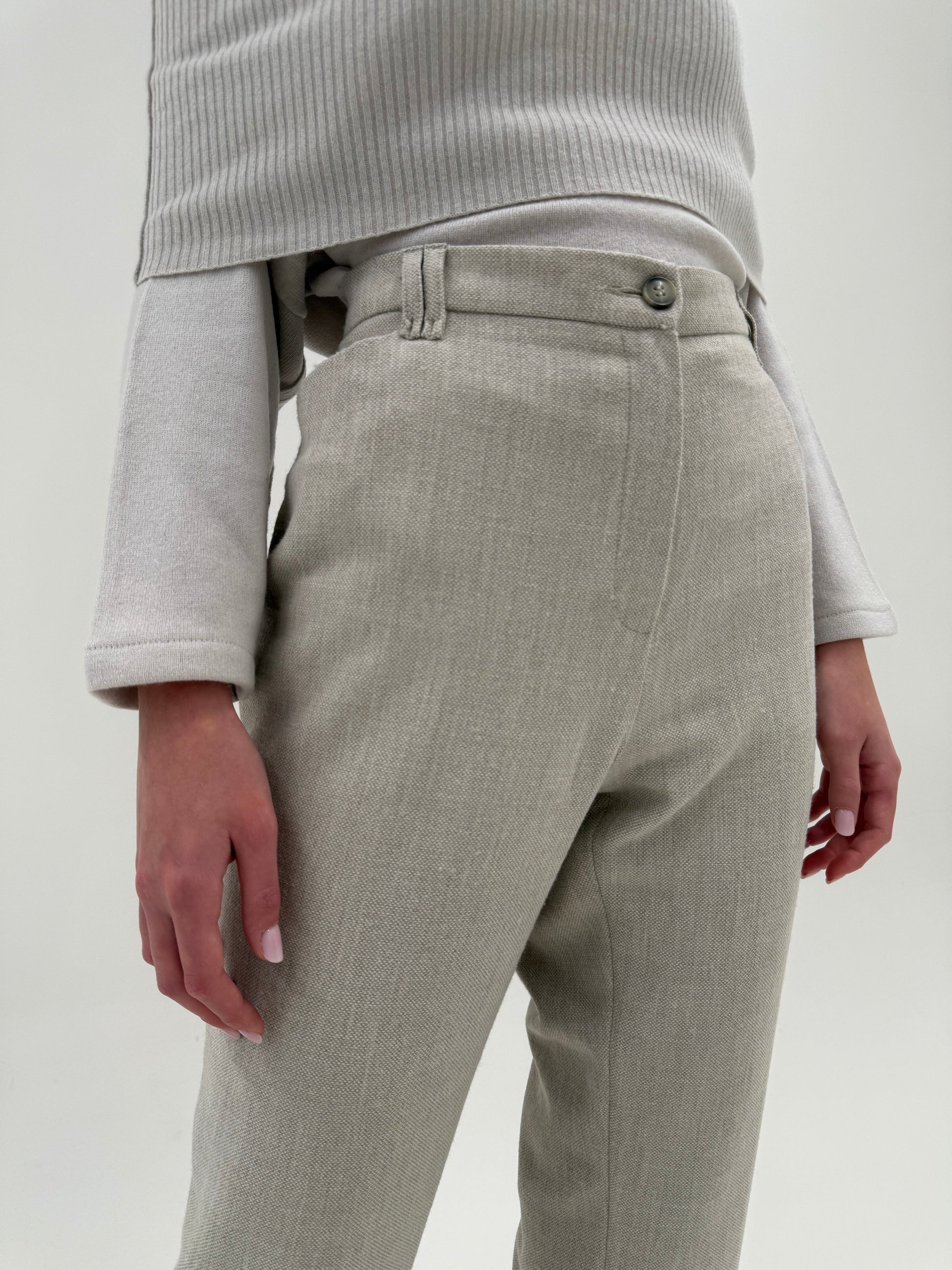 Pantaloni light nude din lana plină extrafina cu talie înaltă