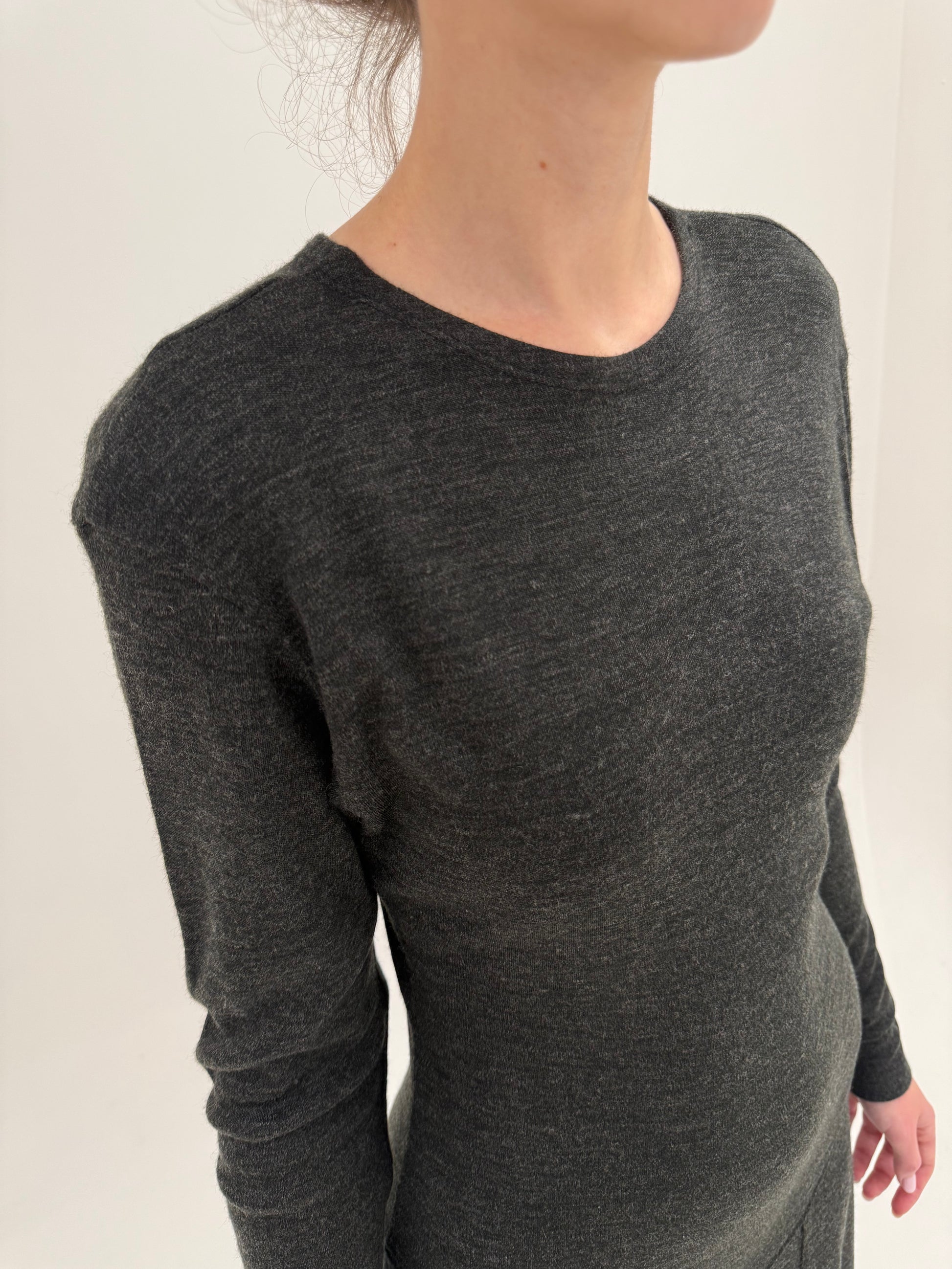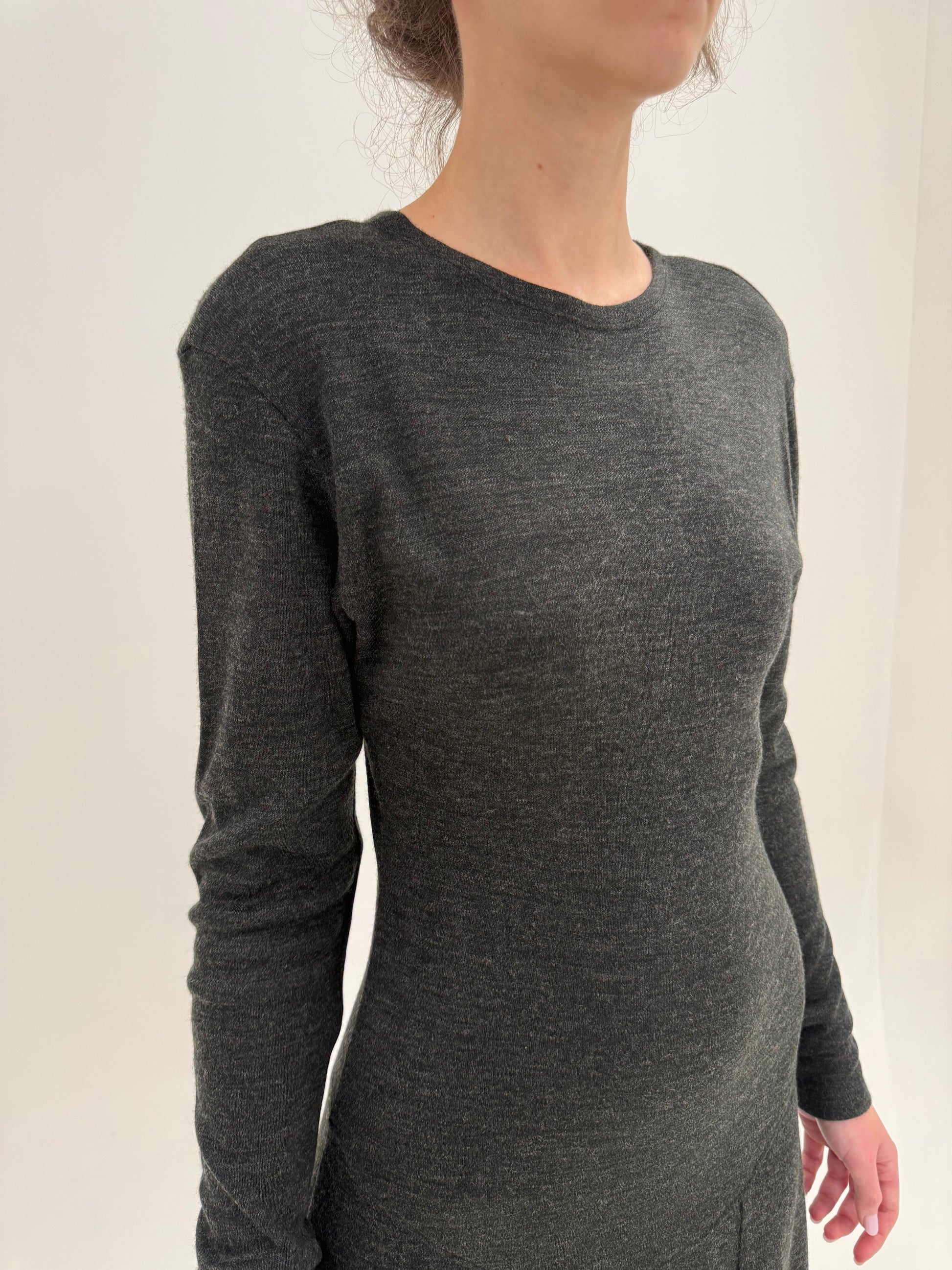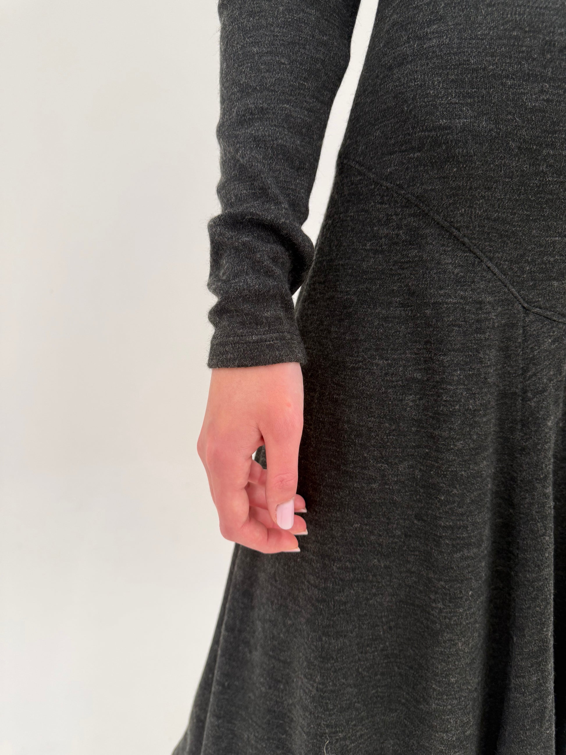 Rochie vintage cambrata maxi cu talie ușor căzută din tricot de lana extrafina