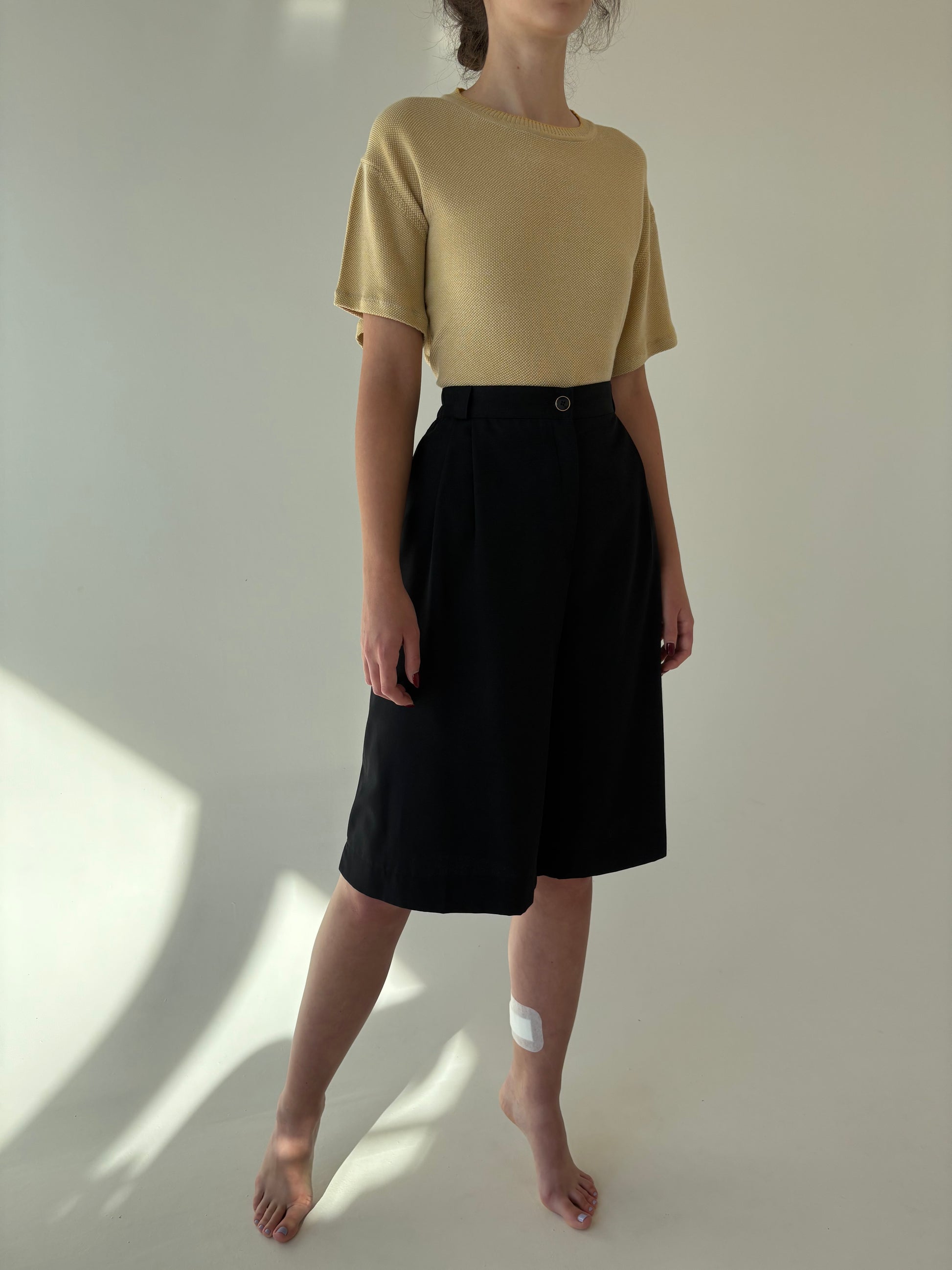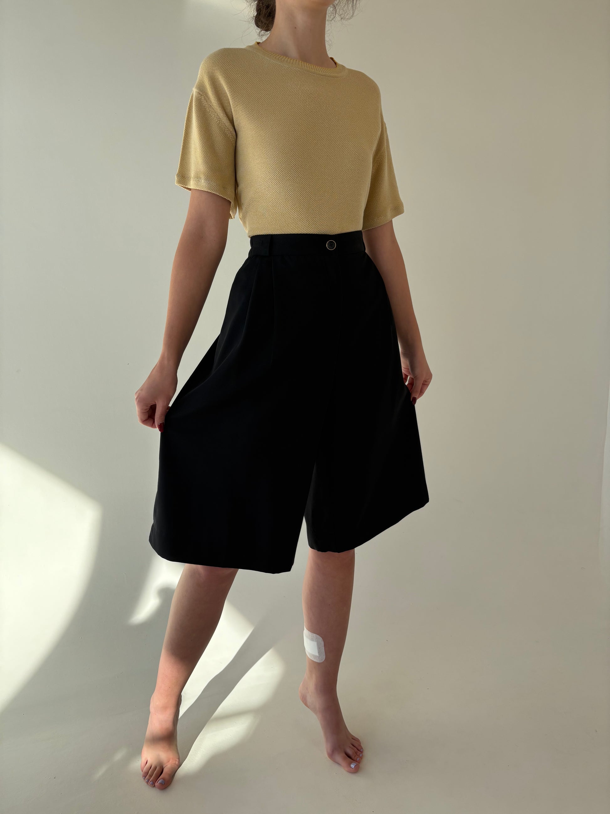 Pantaloni cu talie ultra înaltă negri din stofita extrafina de lana
