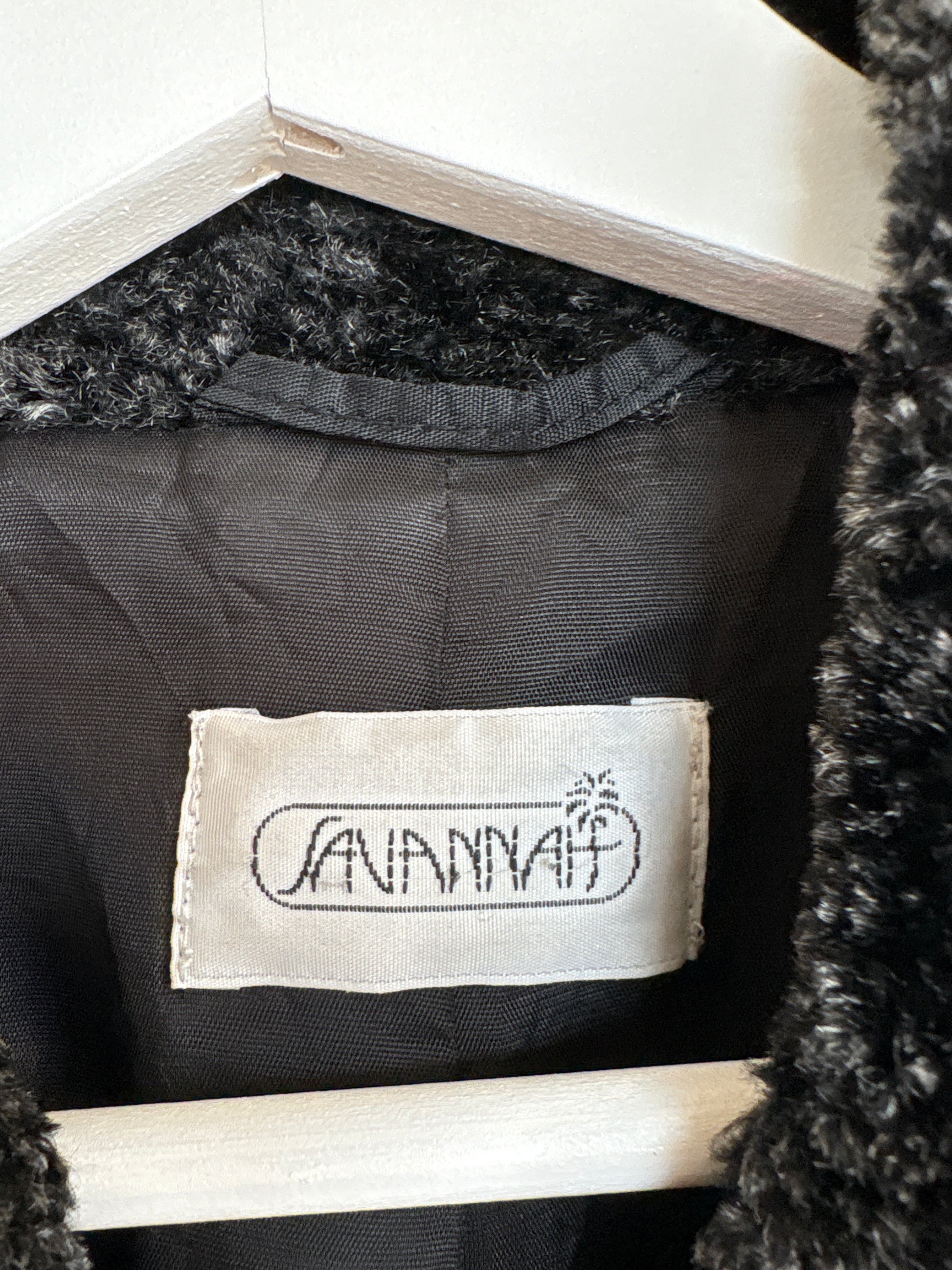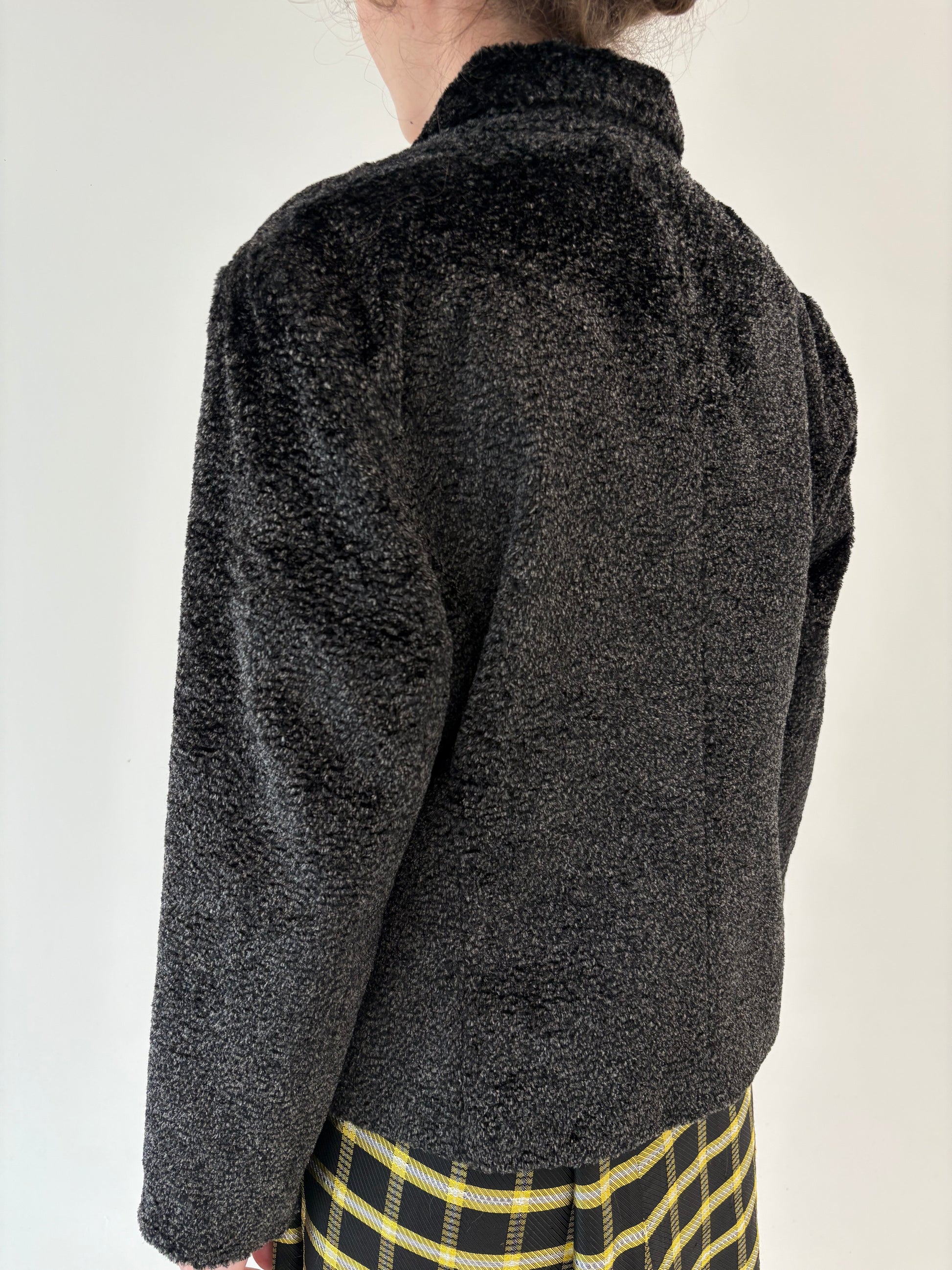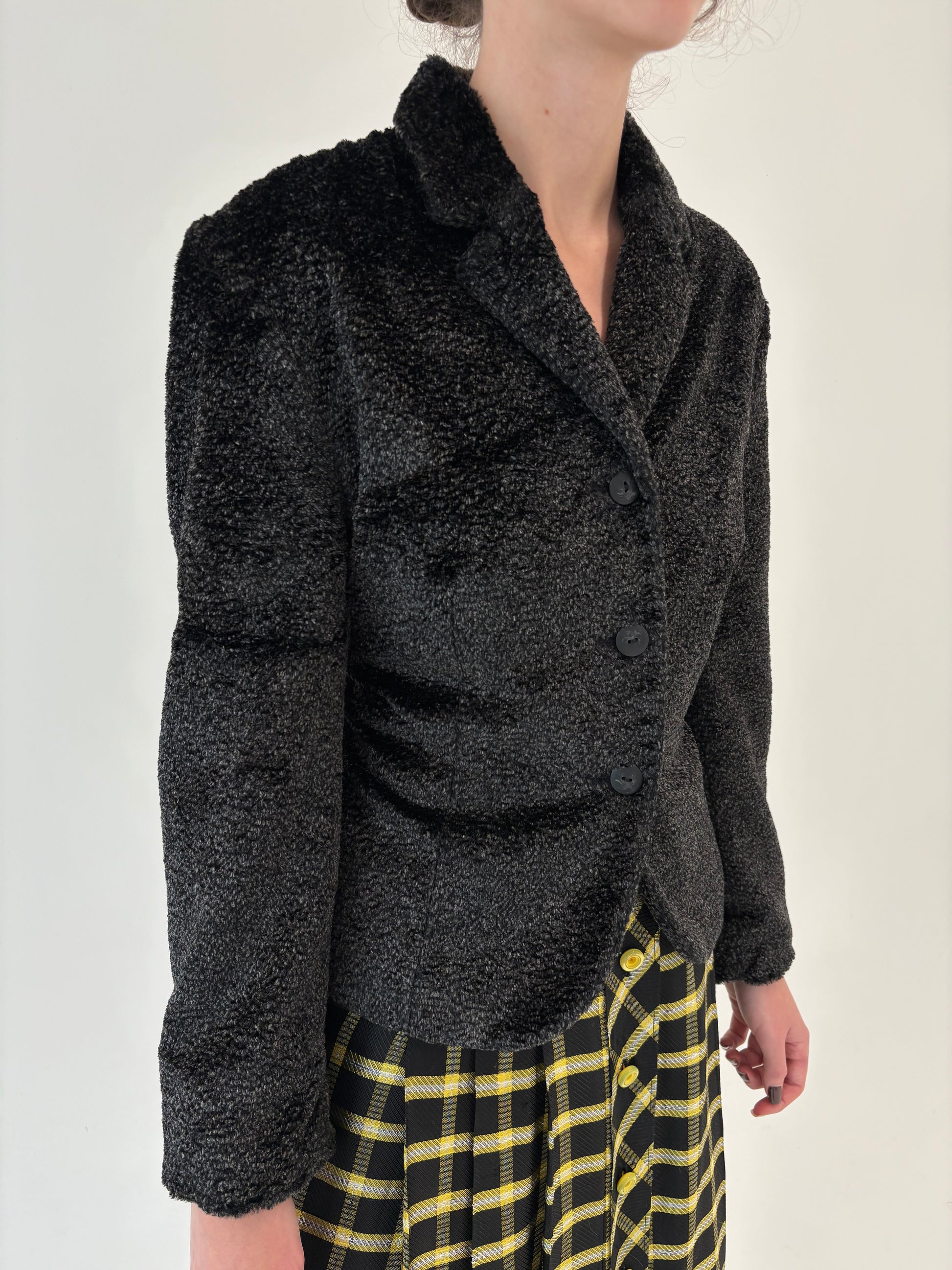 Sacou premium negru cambrat cu aspect de blăniță lucioasă