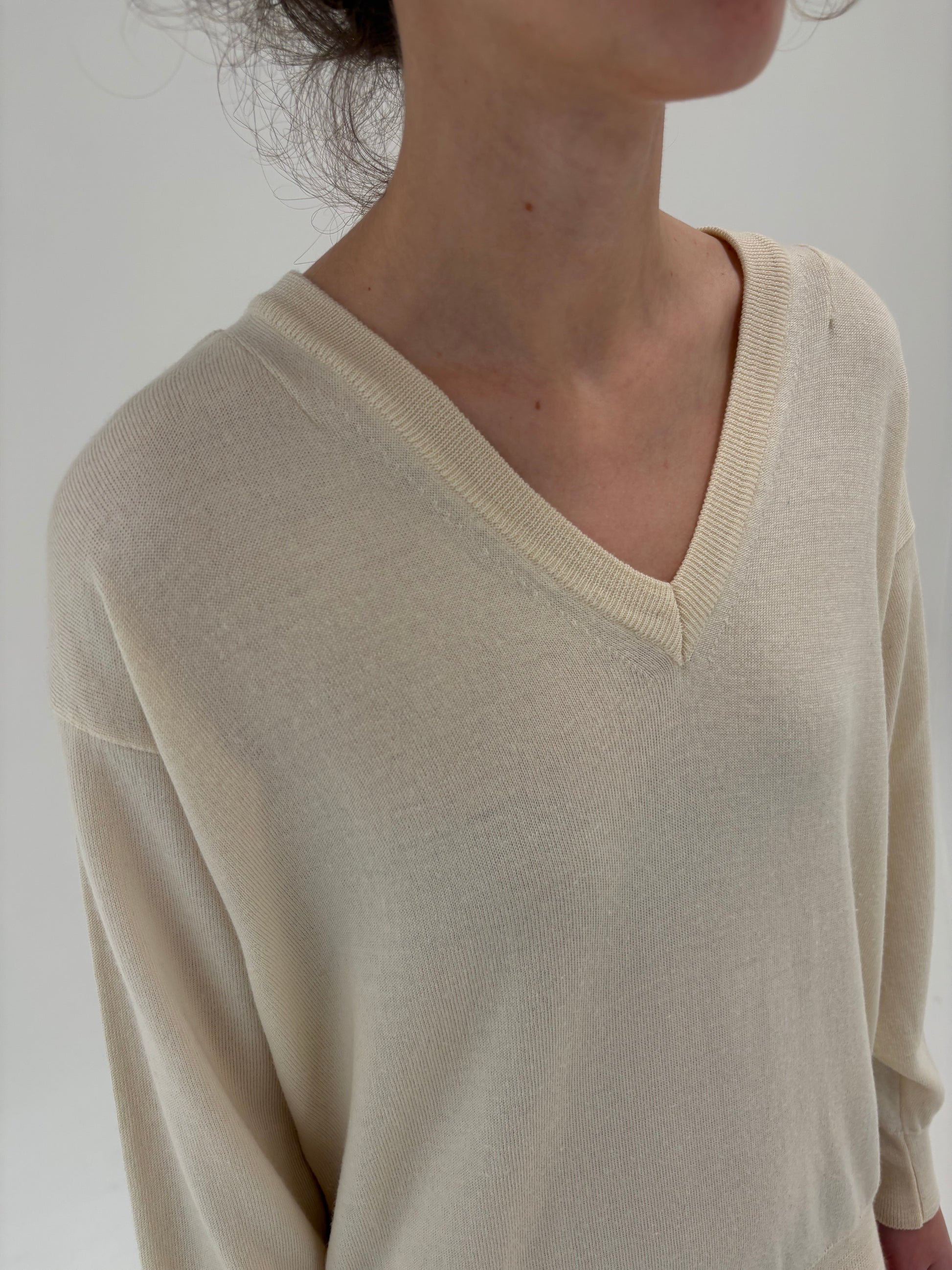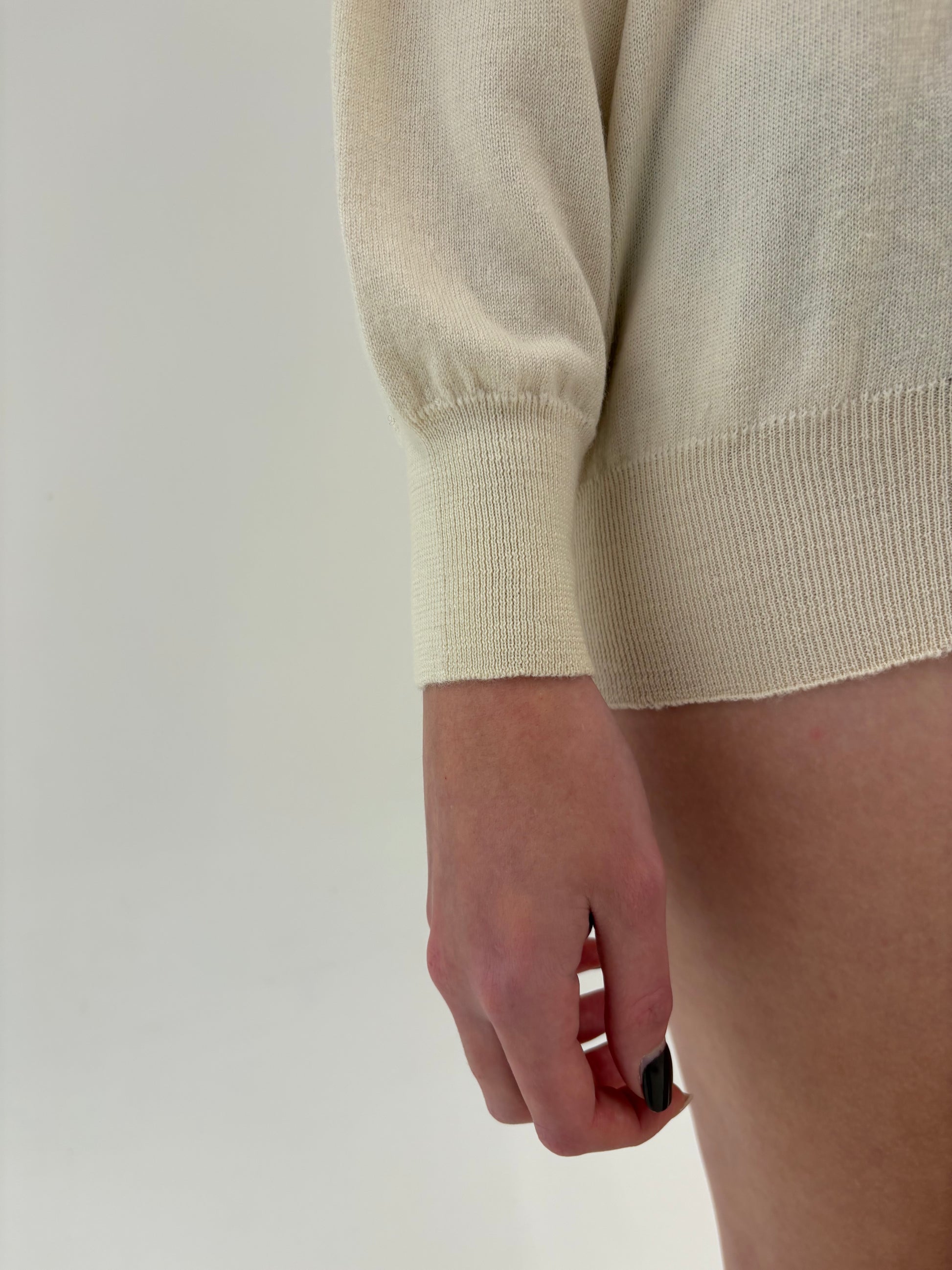Pulover butter white italian din lana merino de gramaj mare în croi lejer