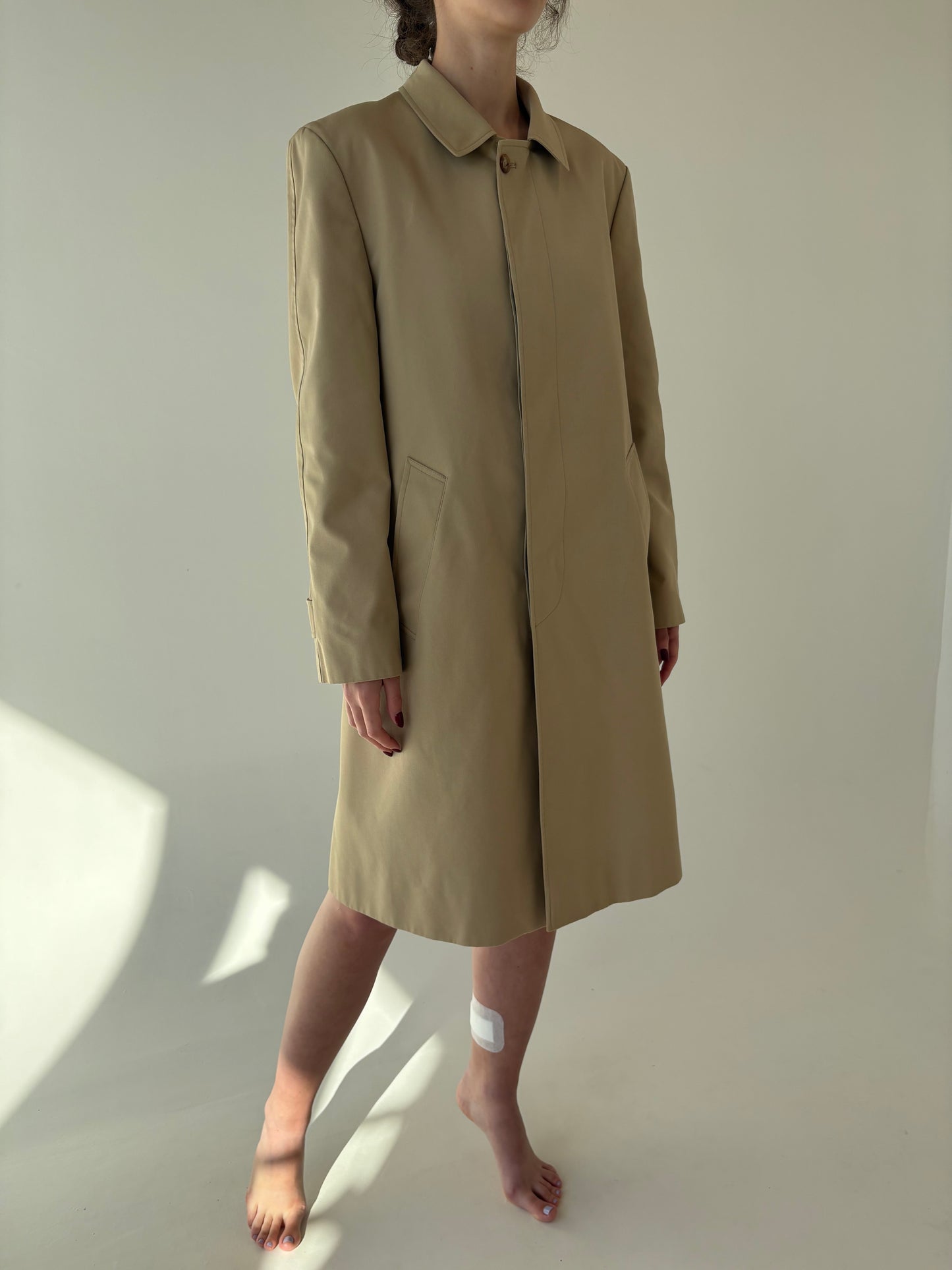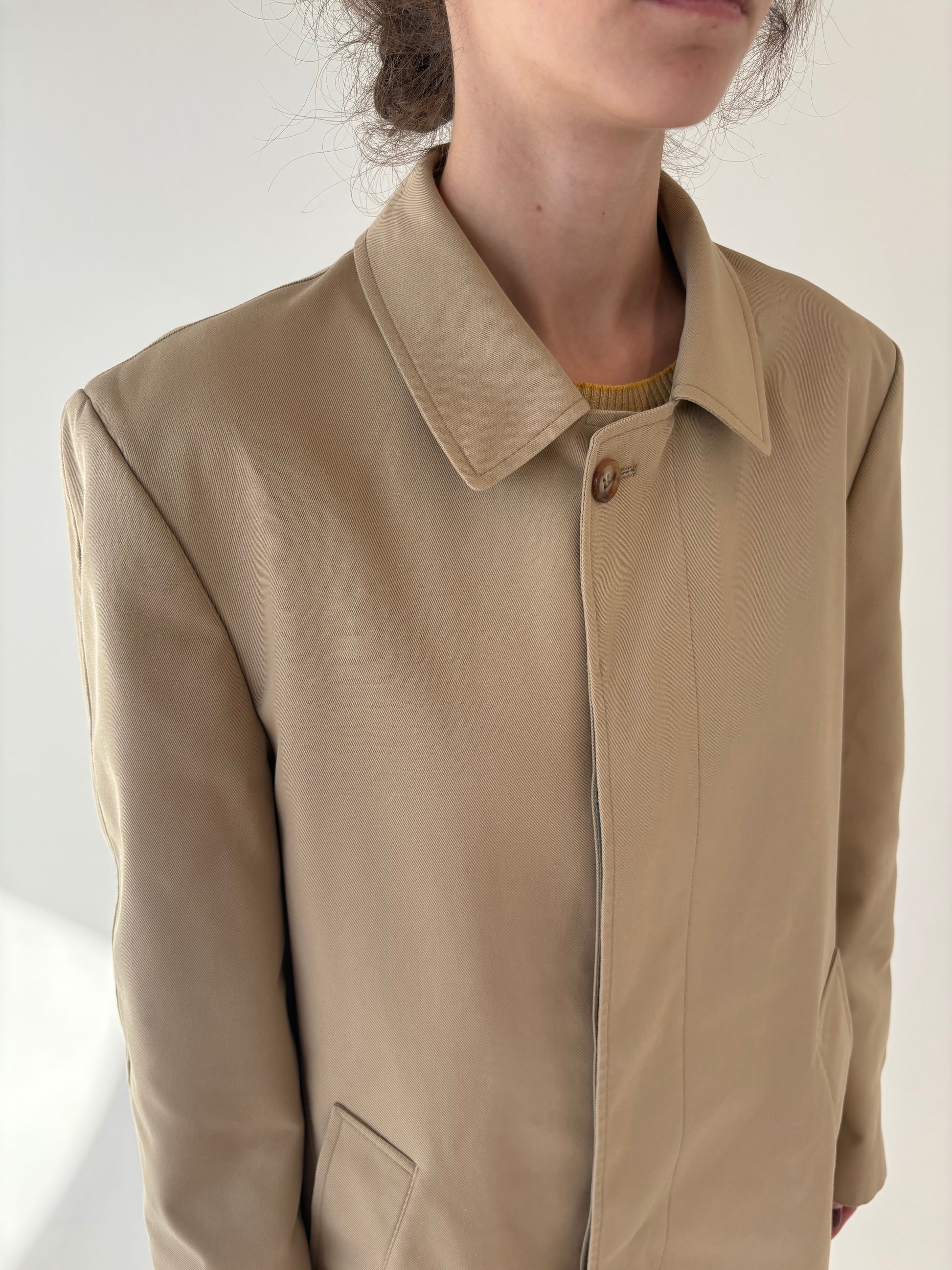 Trench vintage camel din gabardină în croi super revenit în trend impermeabil