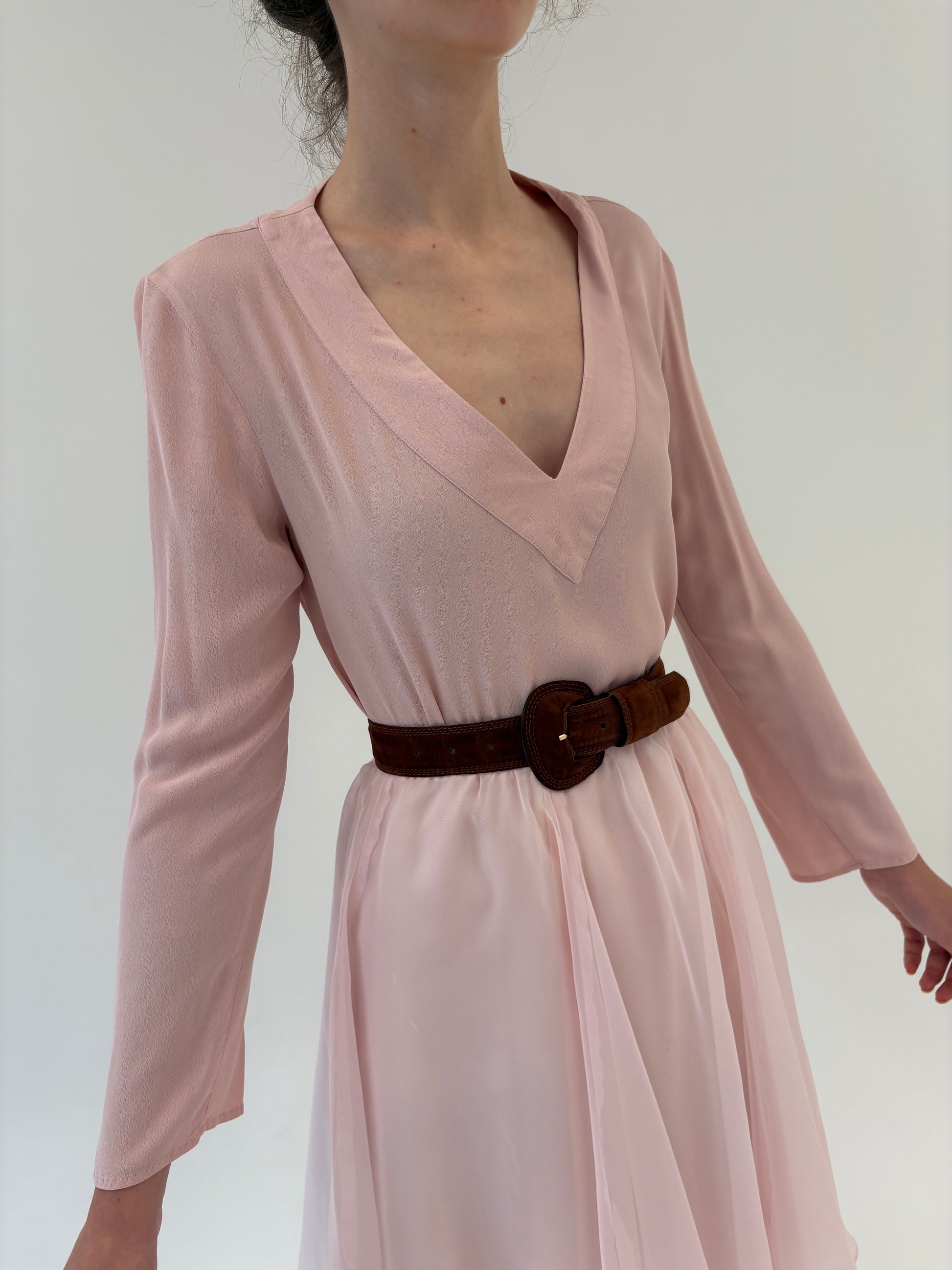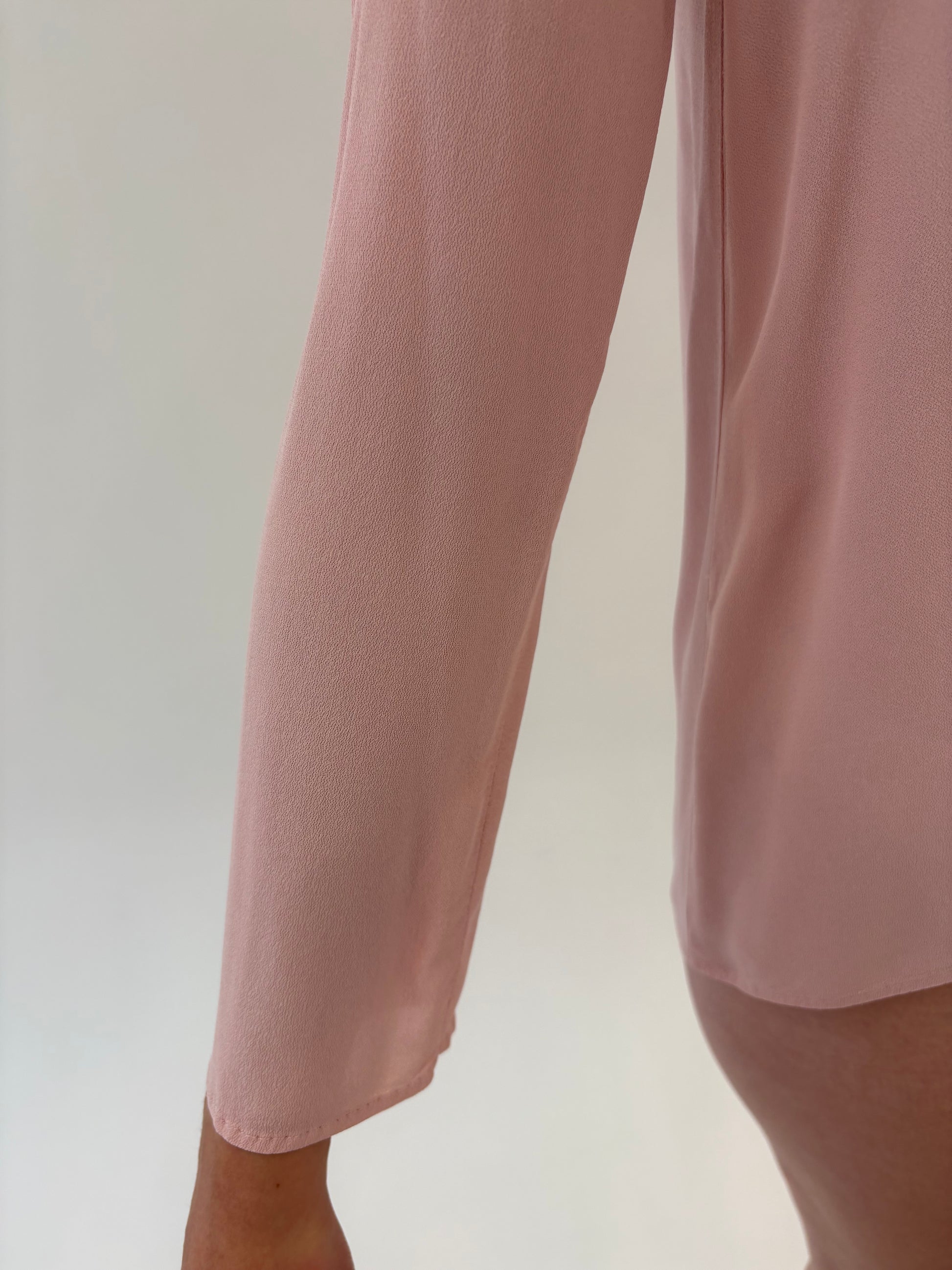 Tunica din mătase naturală mată powder Pink cu mâneci ușor evazate