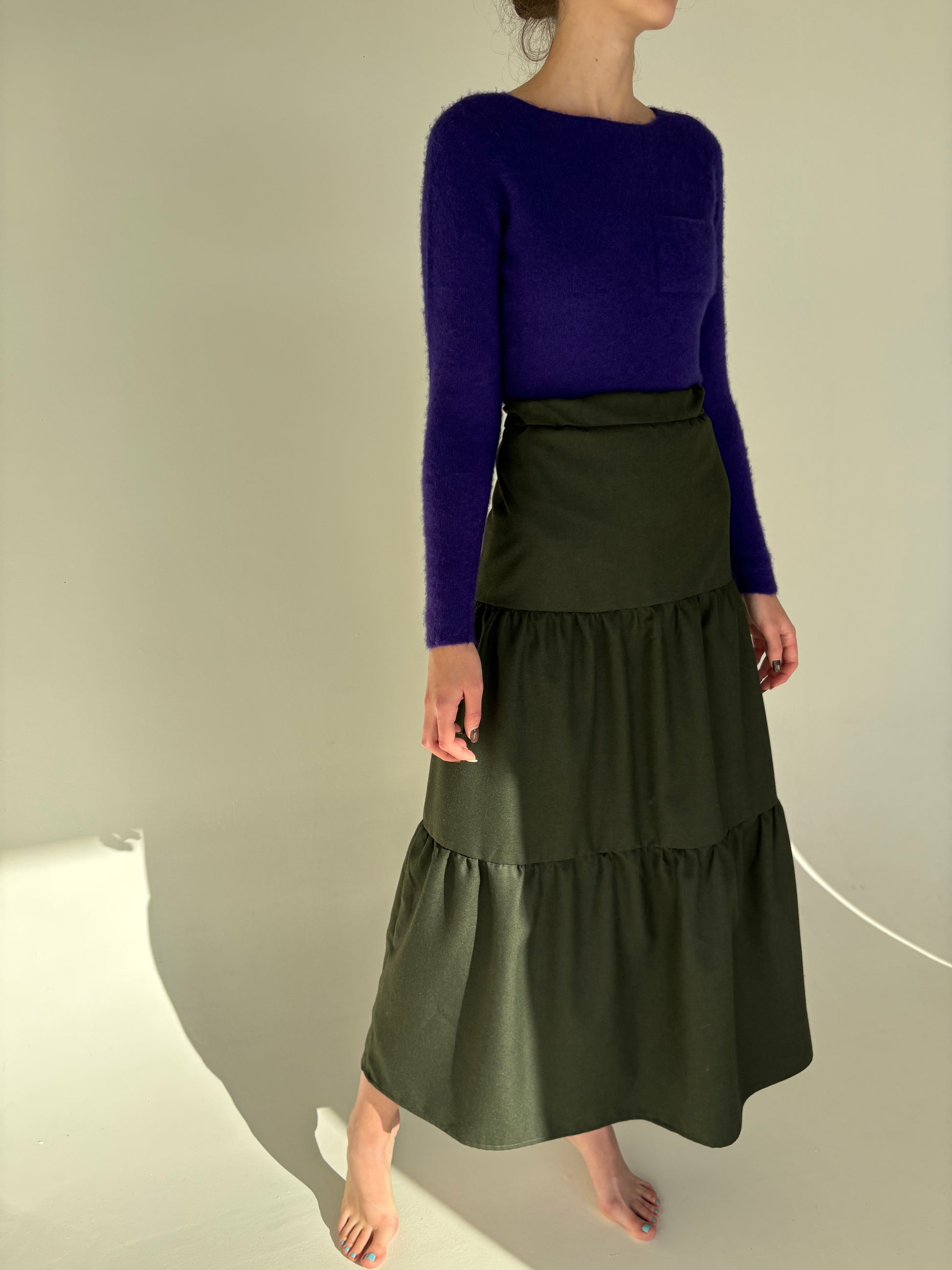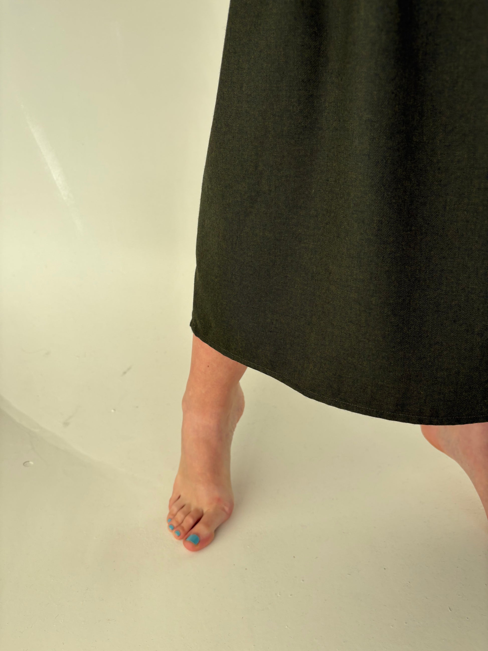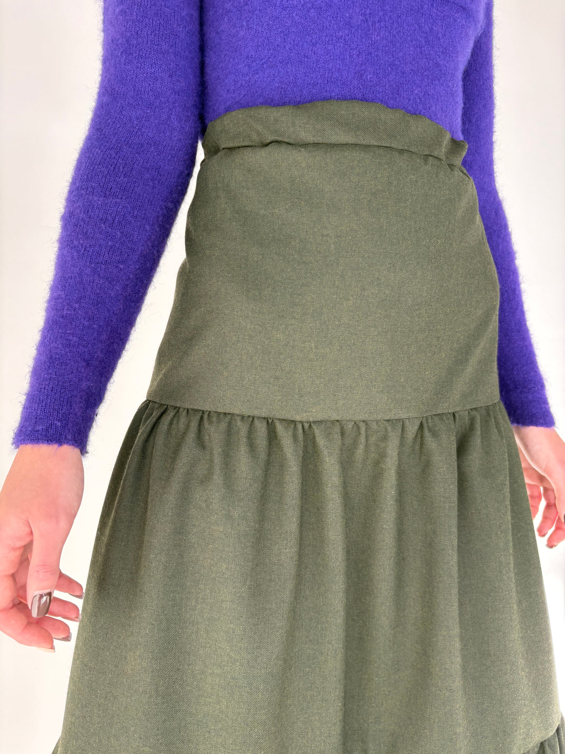 Fustă maxi forest green cu talie ultra înaltă elastica din stofă