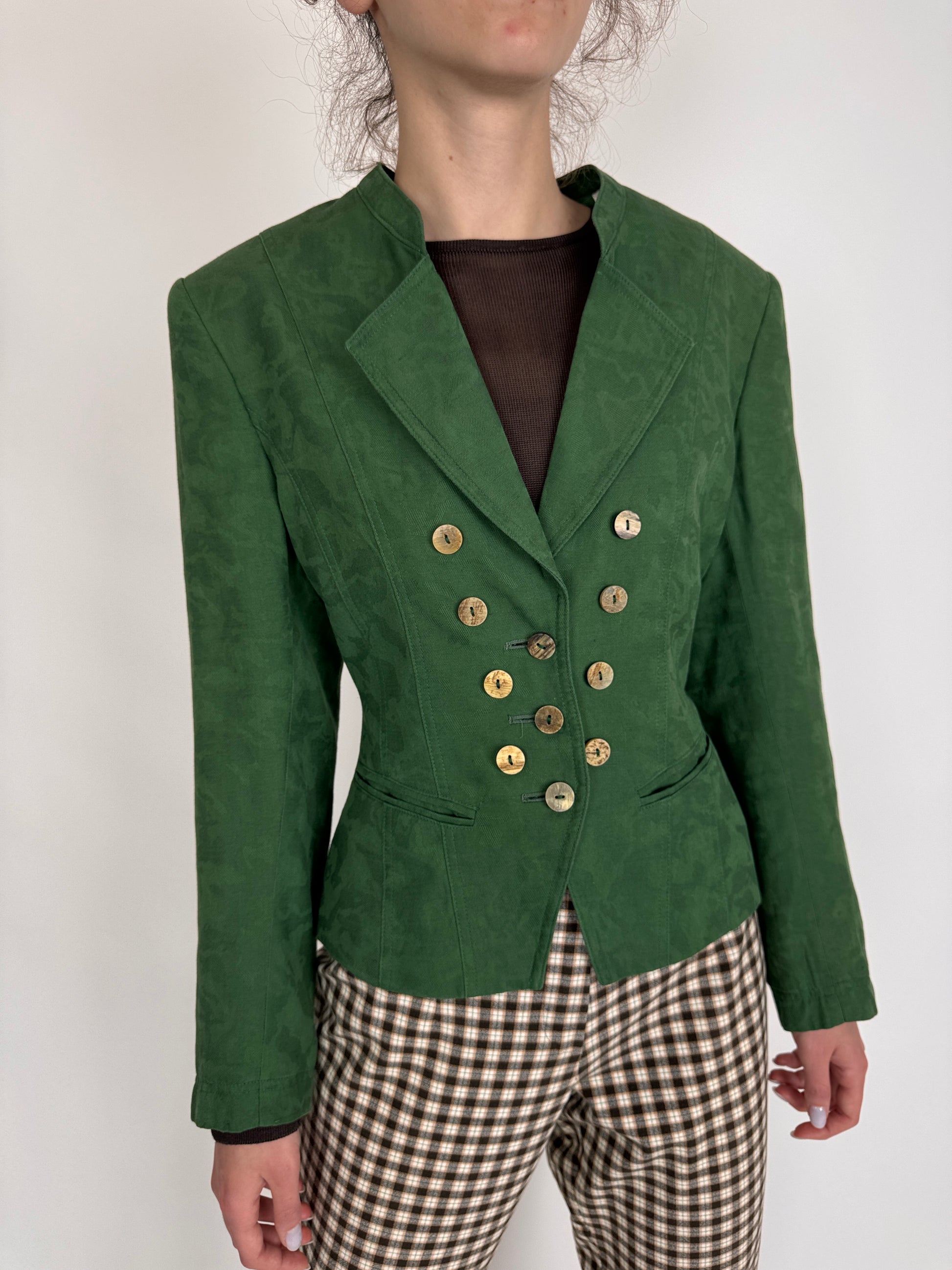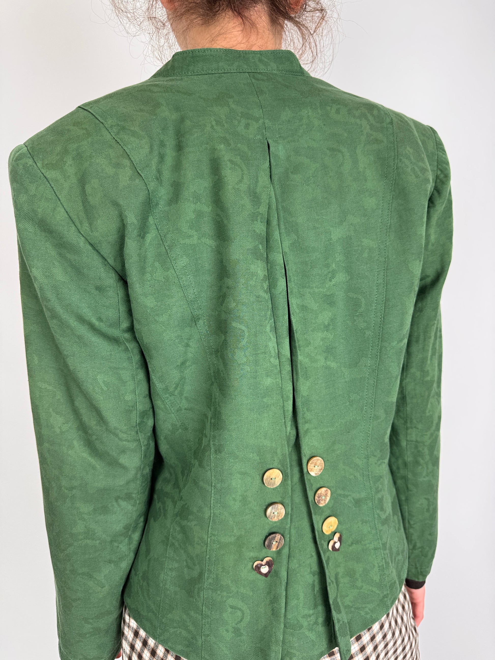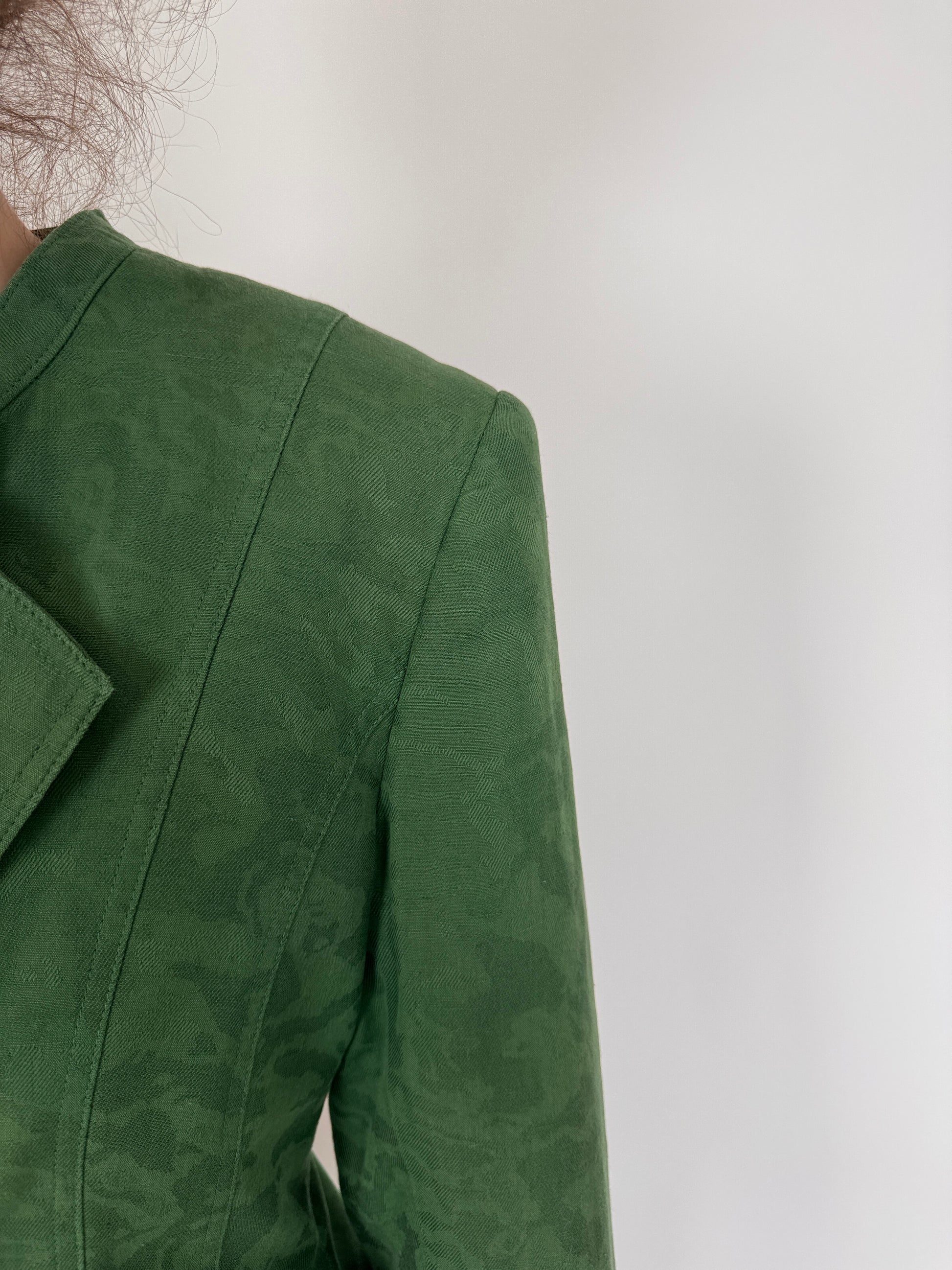 Sacou vintage cambrat forest green din pânză de in și bumbac