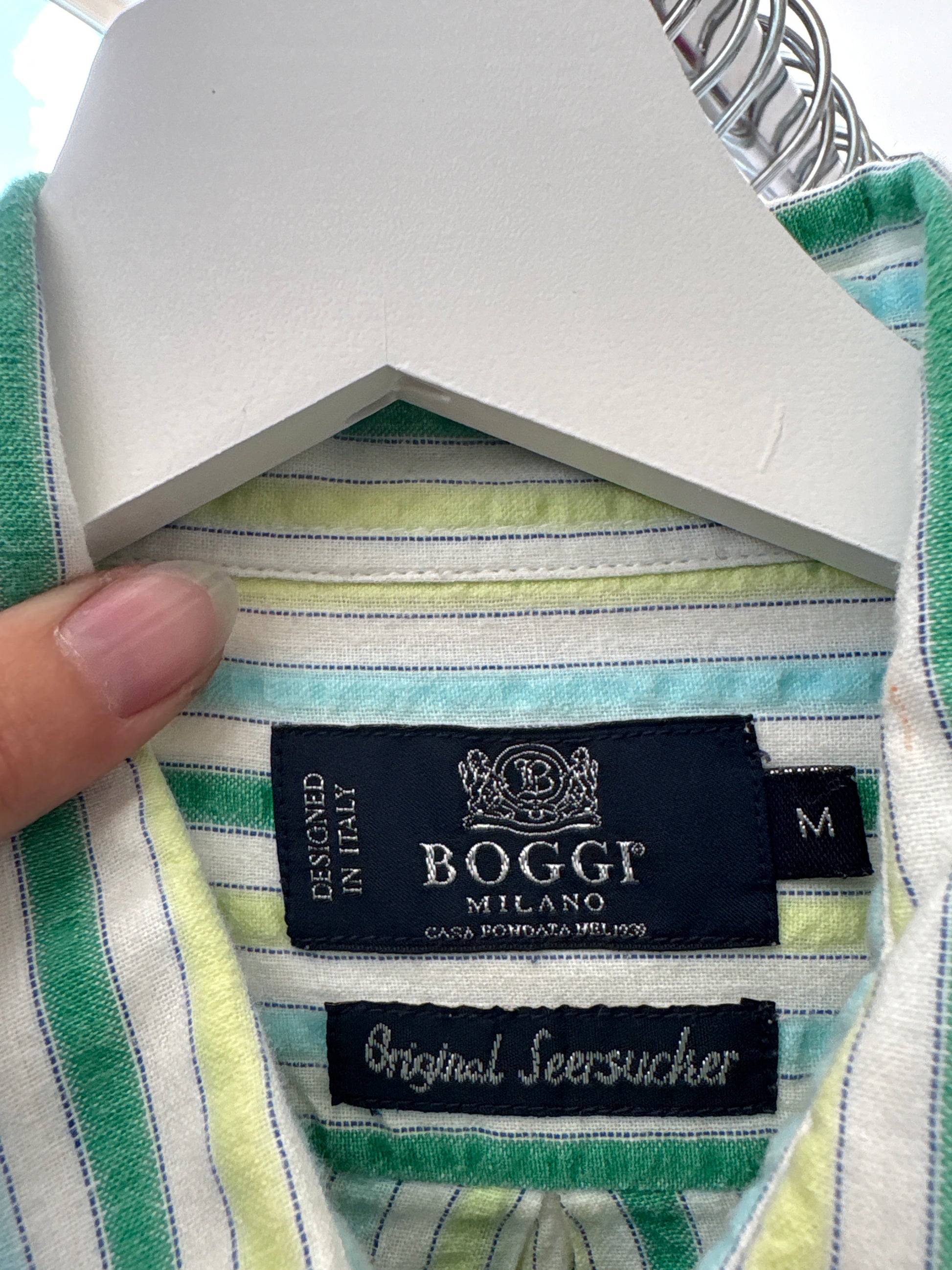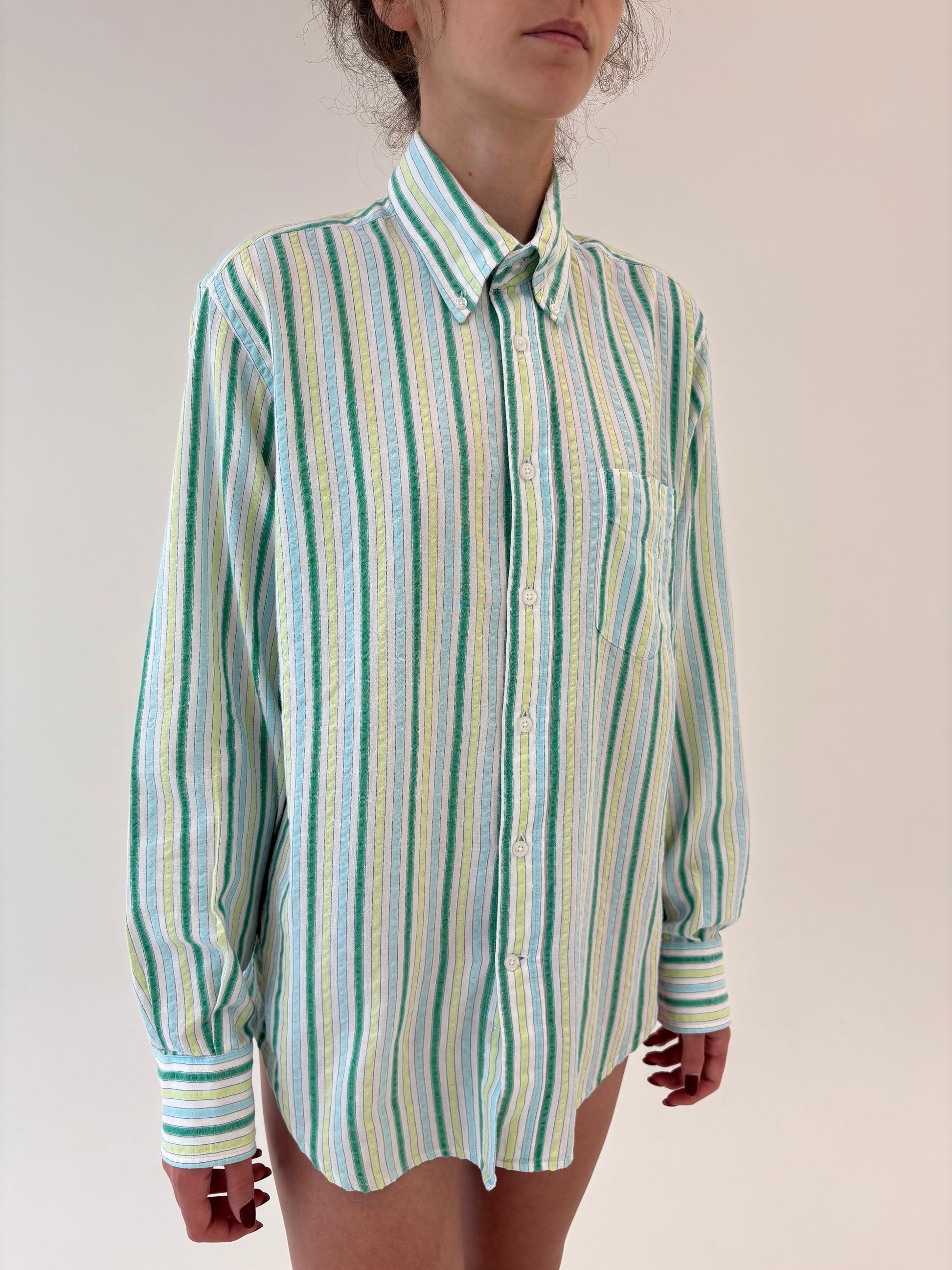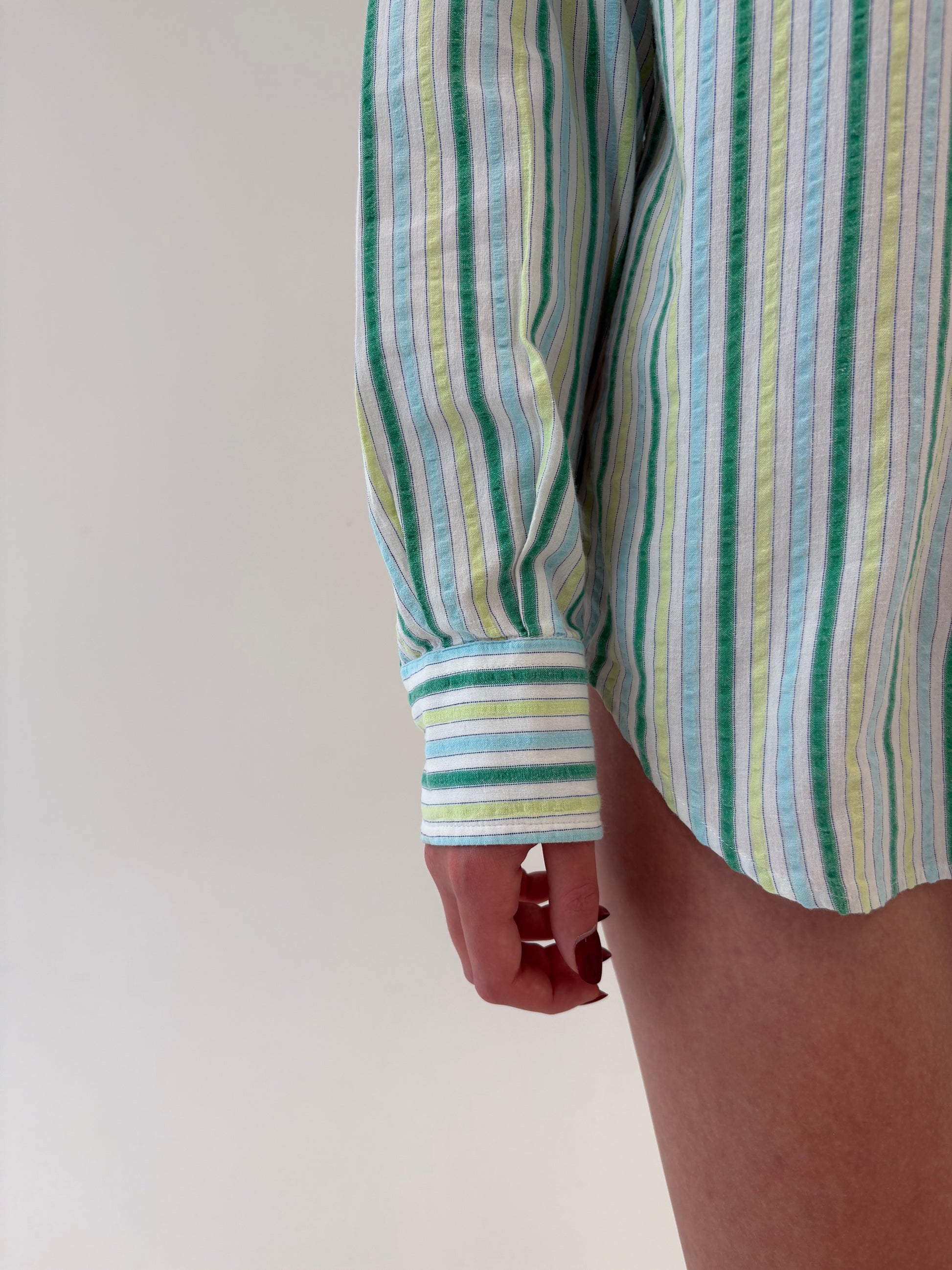 Cămașa premium italiană din seersucker cu dungi verticale în nuanțe superbe