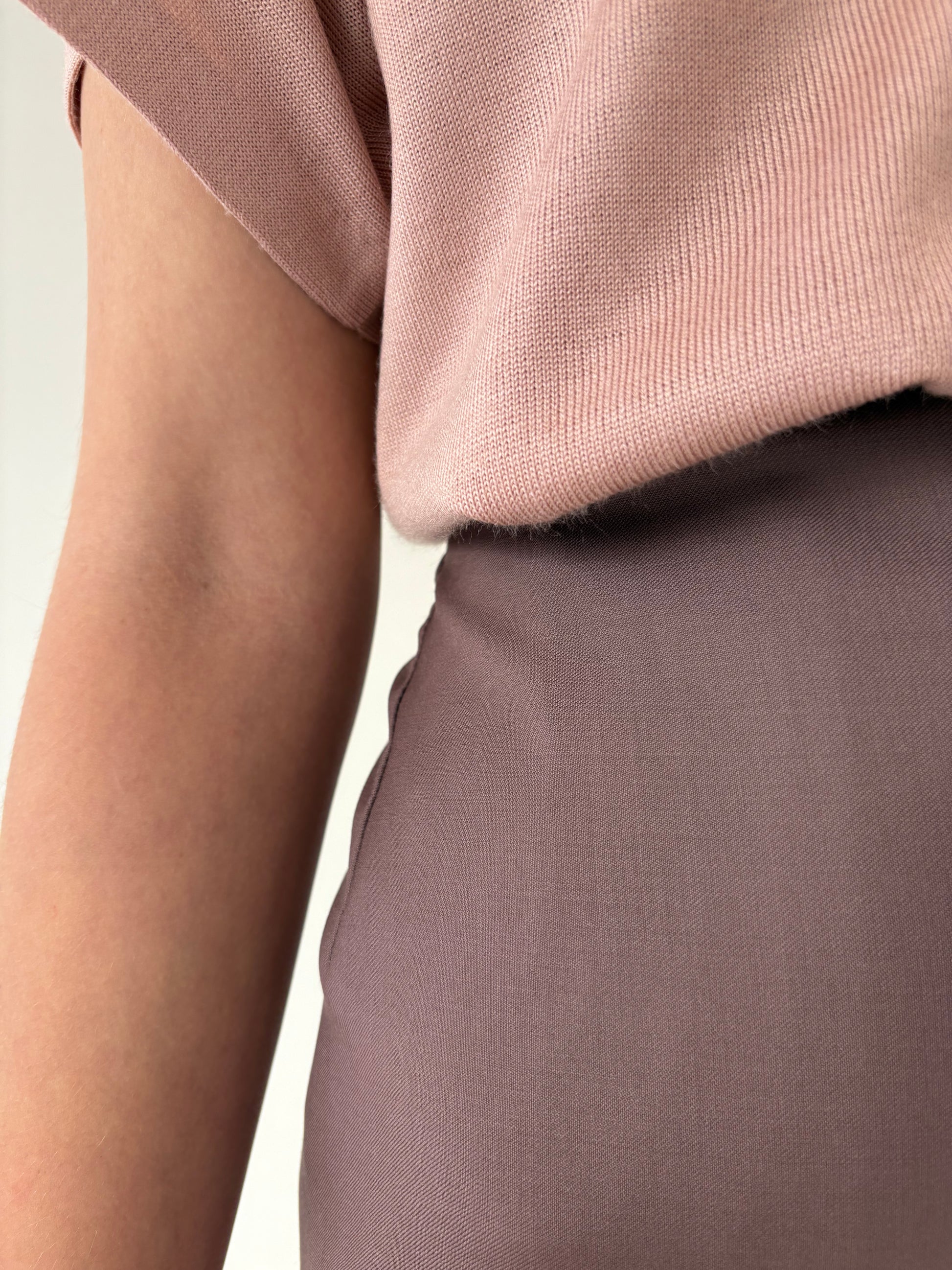 Fustă dusty Pink cu talie ultra înaltă din lana extrafina