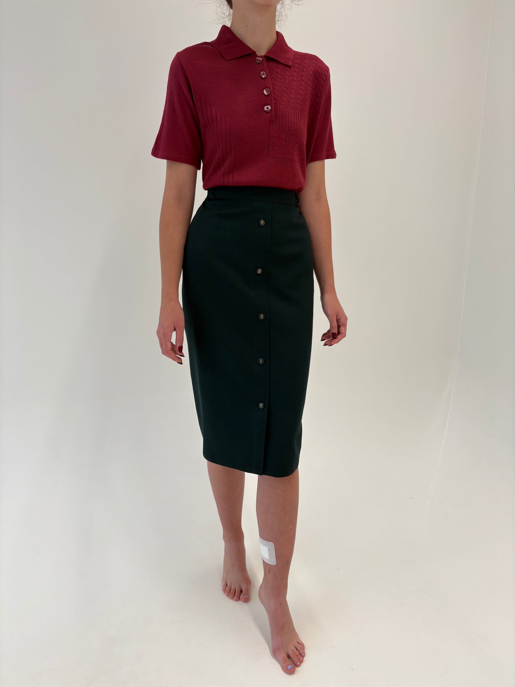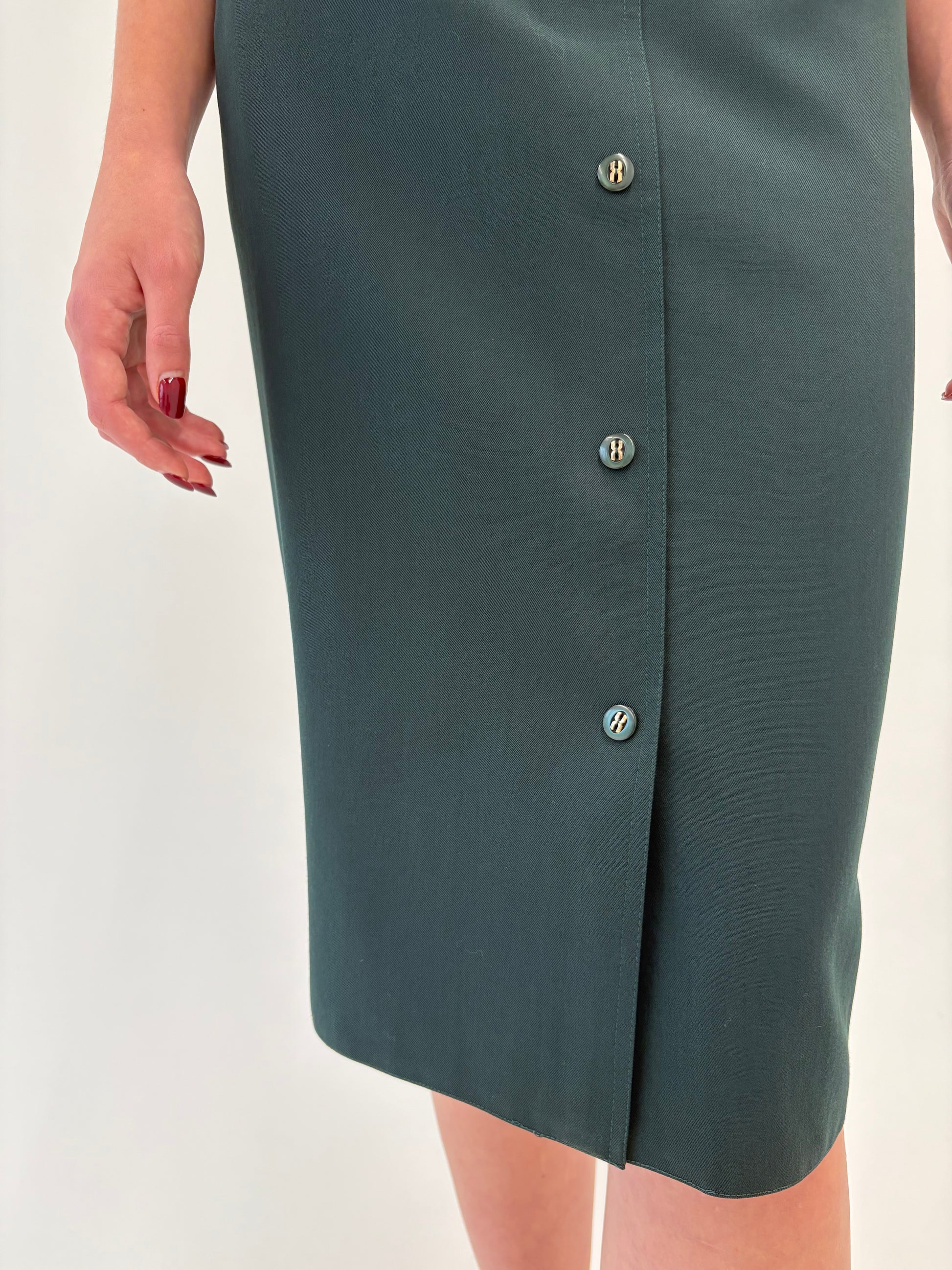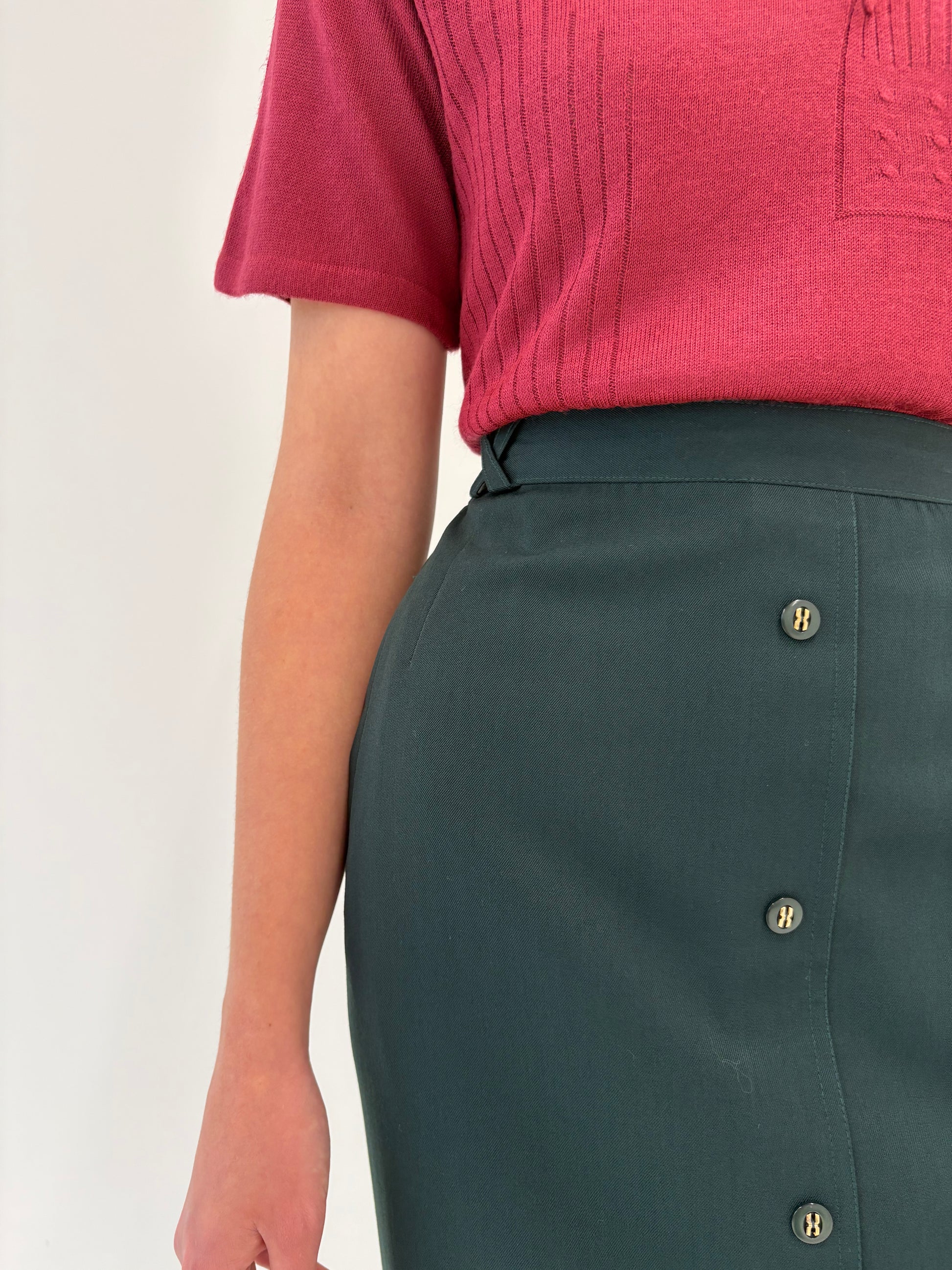 Fustă forest green cu talie ultra înaltă marcată elastică în croi conic