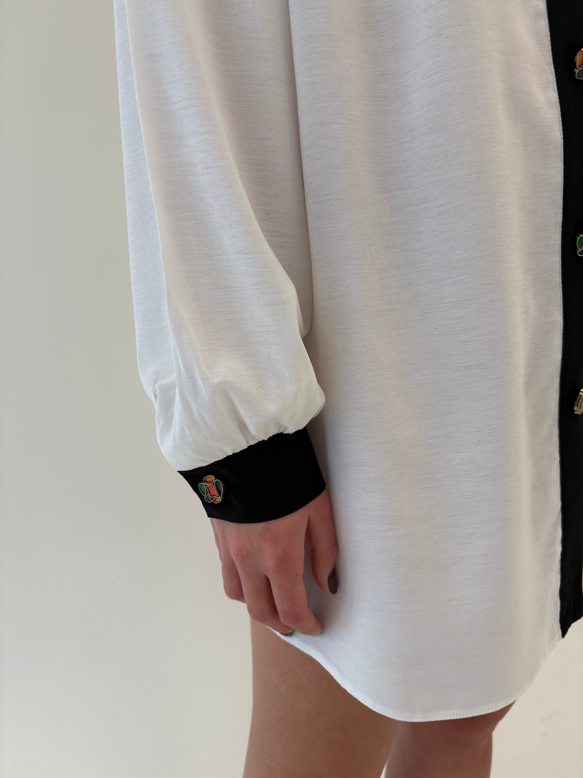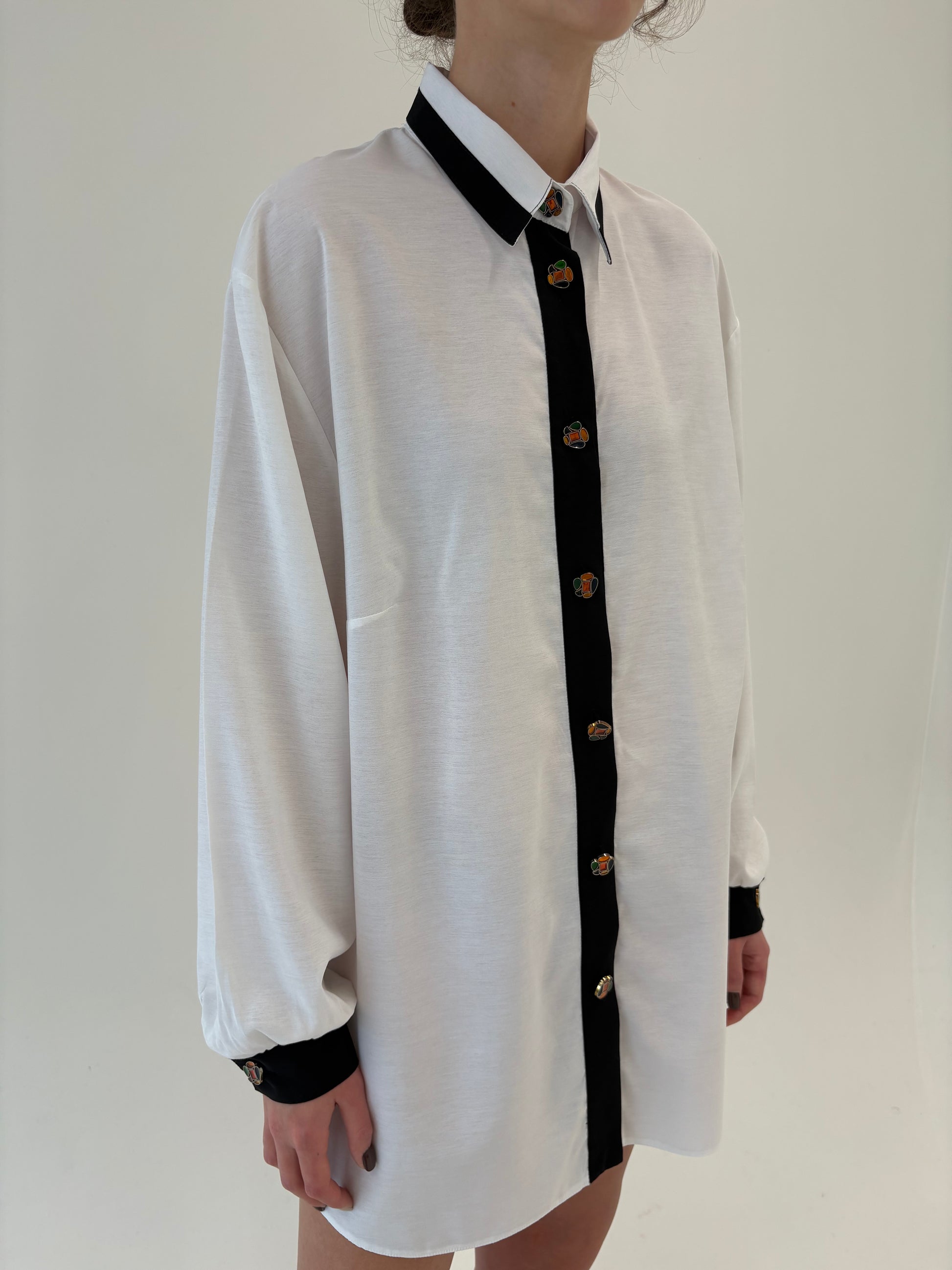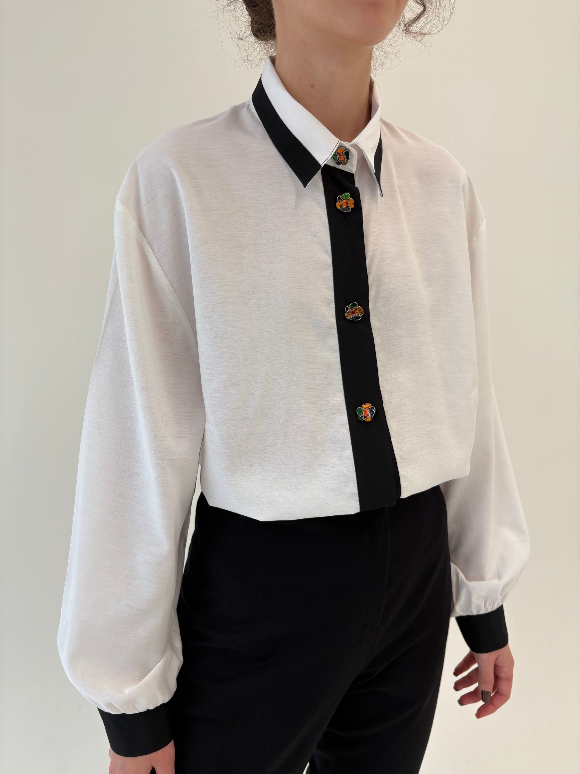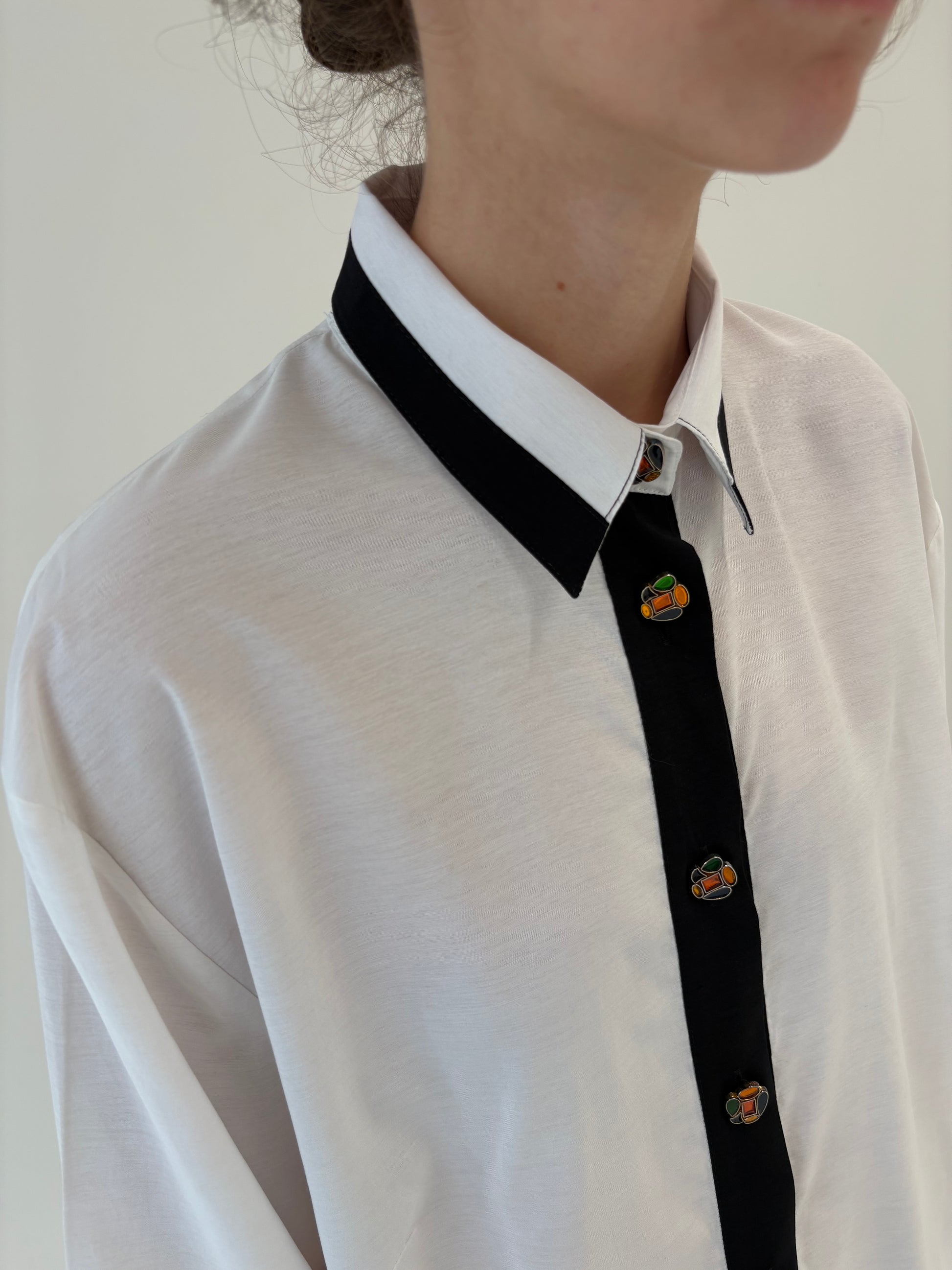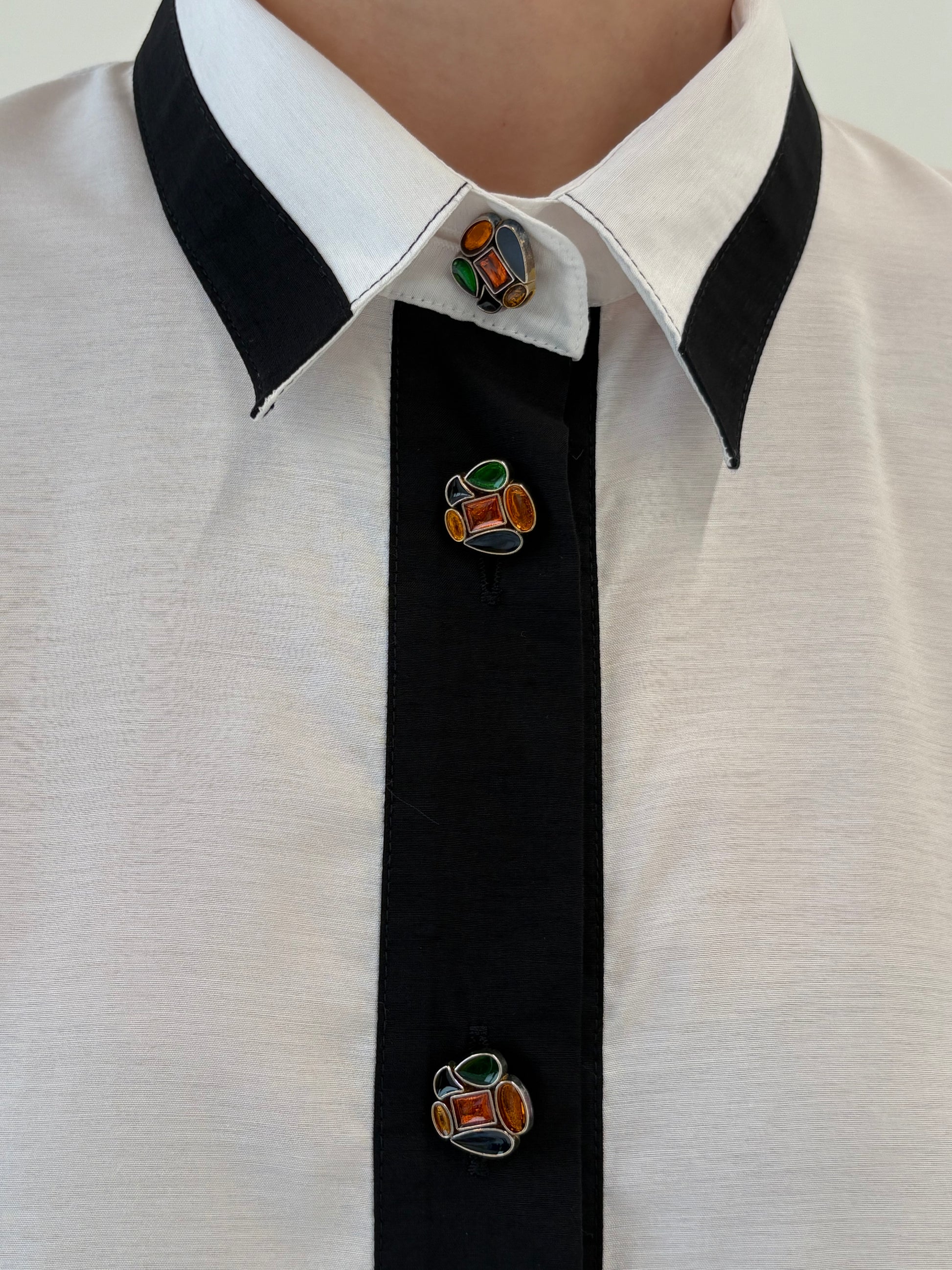 Cămașa vintage cu paspoal negru și nasturi decorativi