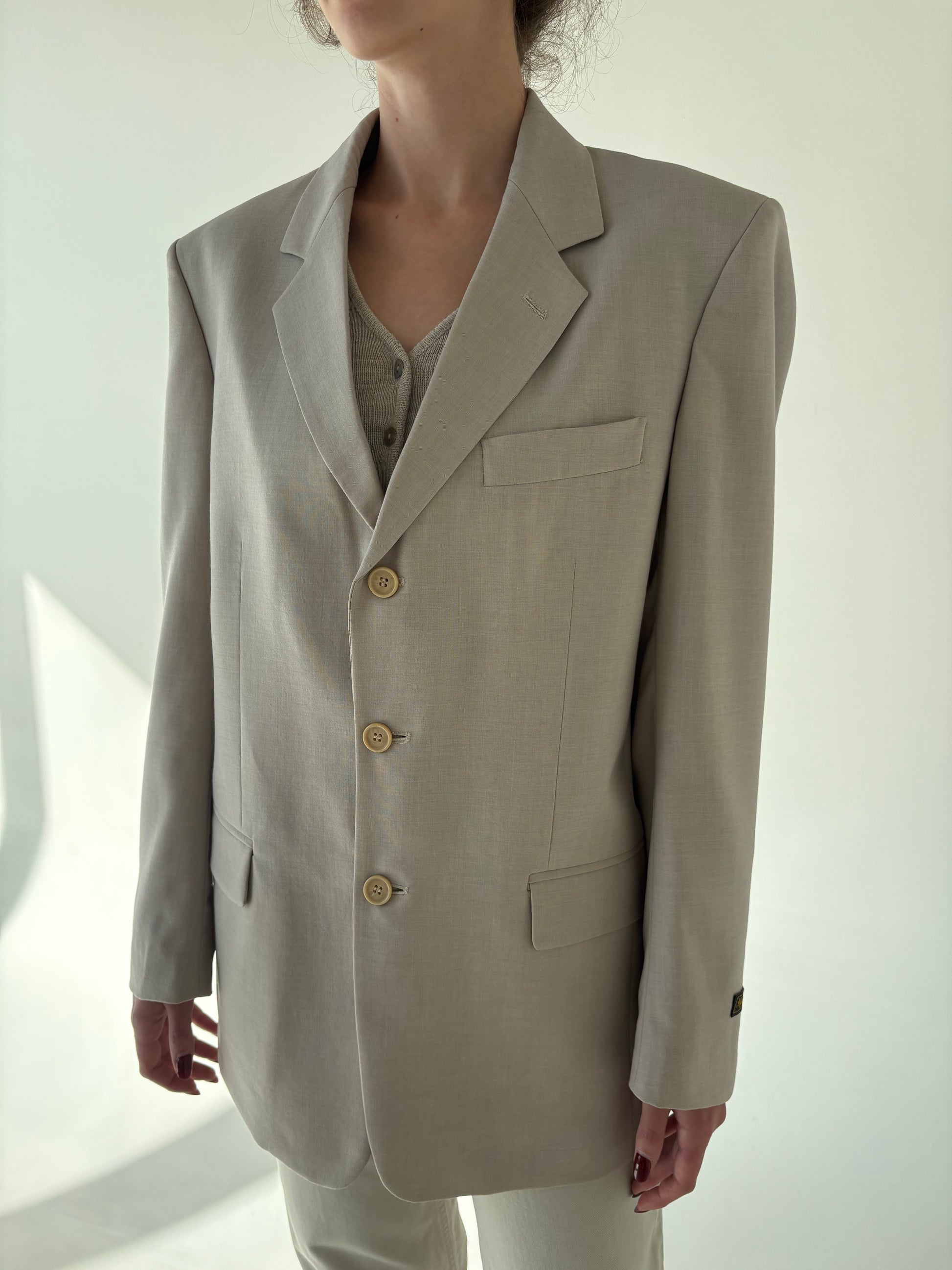 Sacou luxury italian light nude nou din lana pura virgină certificată extrafina