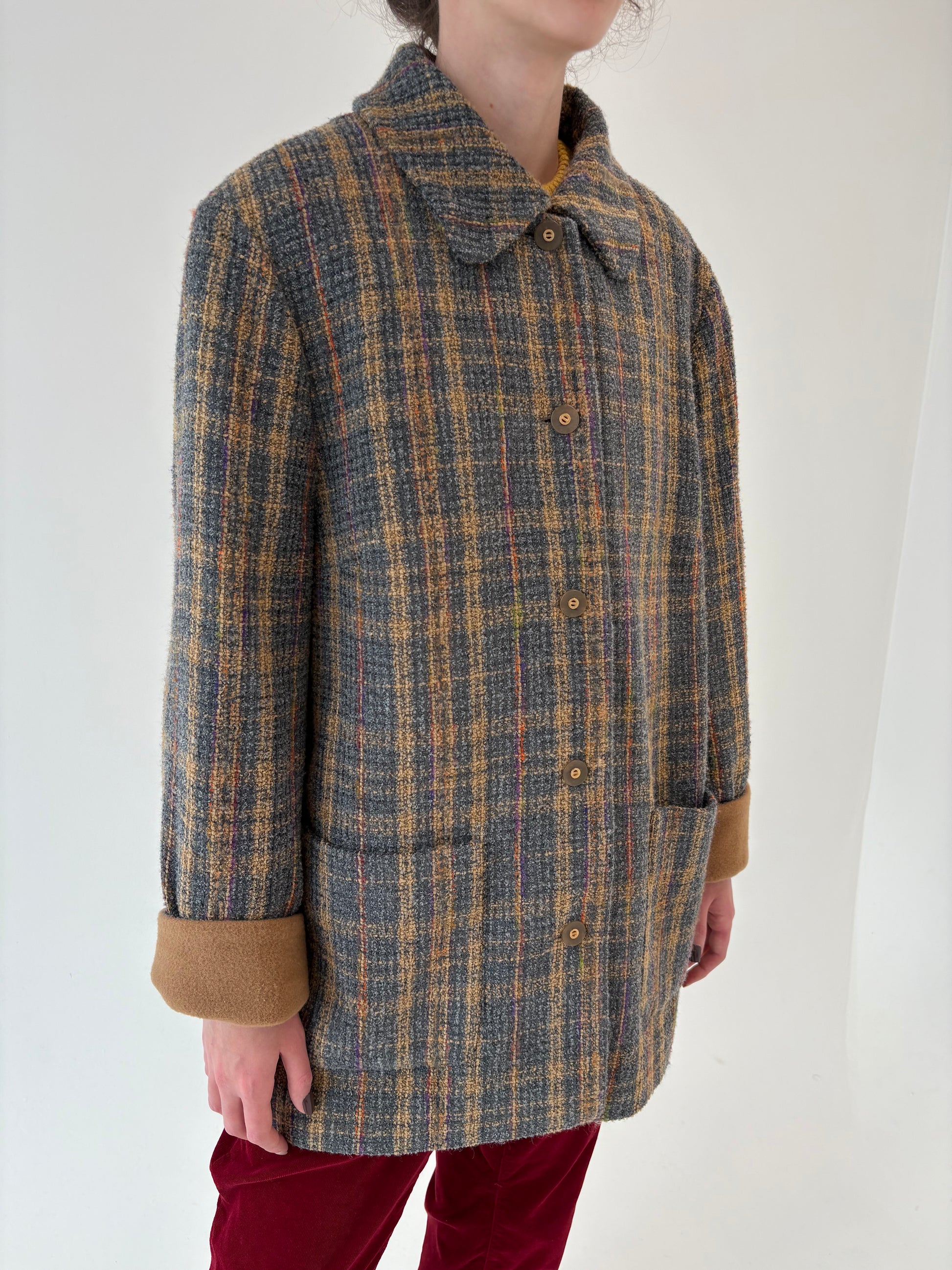 Jacheta din tweed de lana în culori superbe și croi revenit în trend
