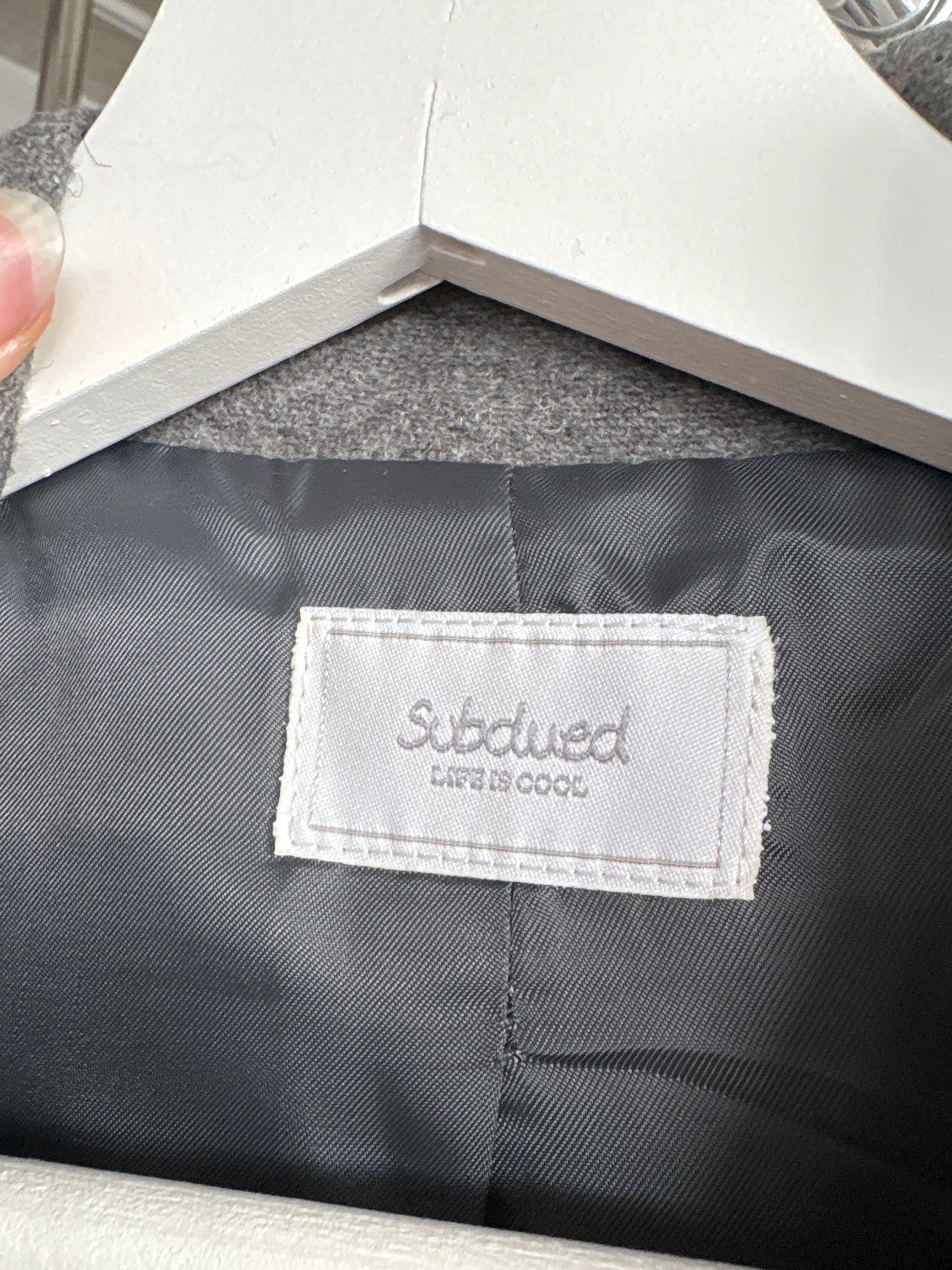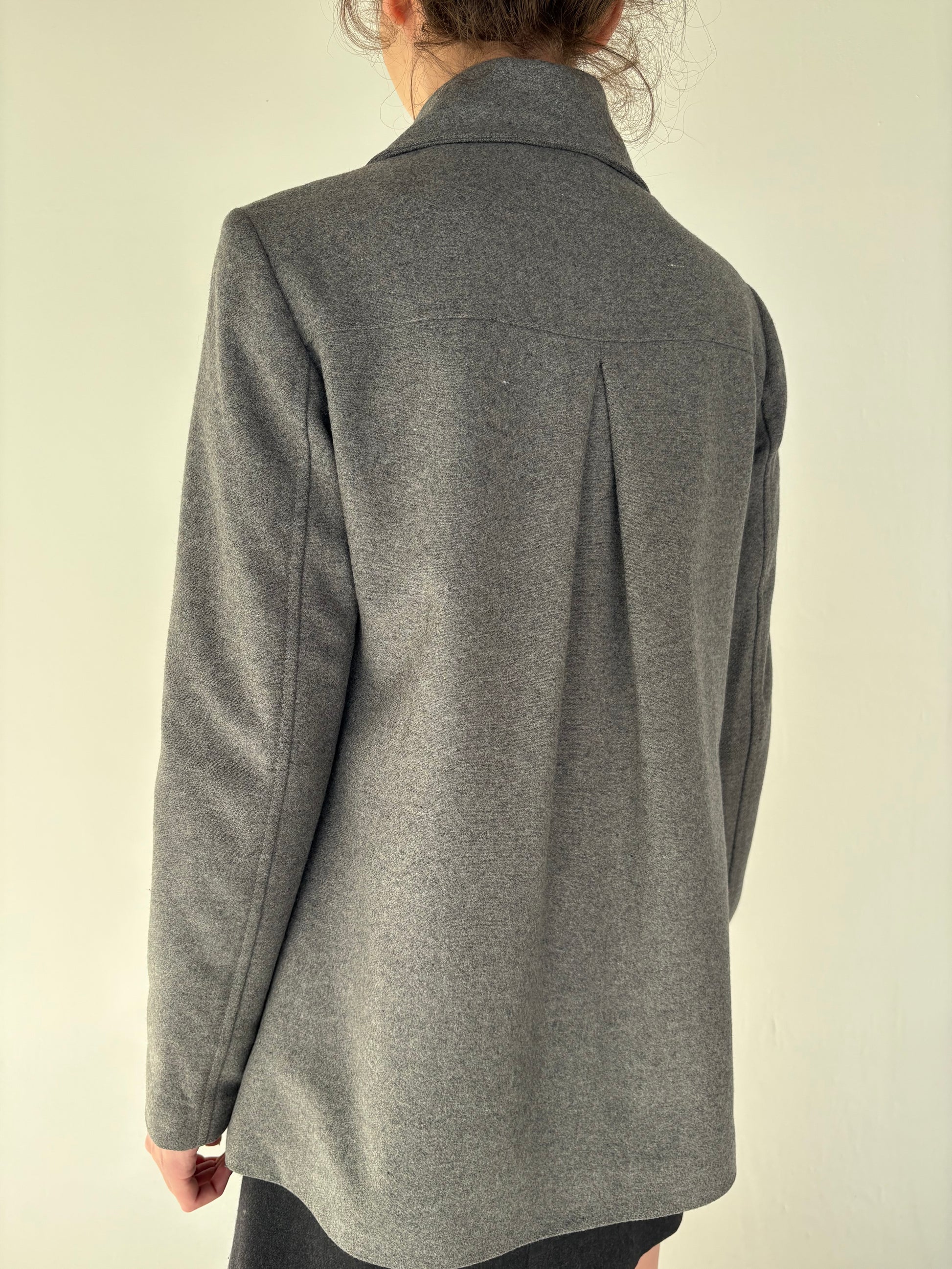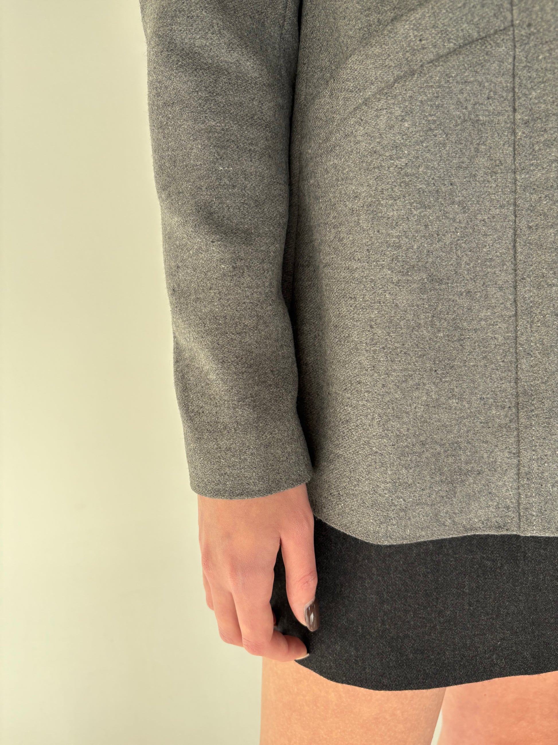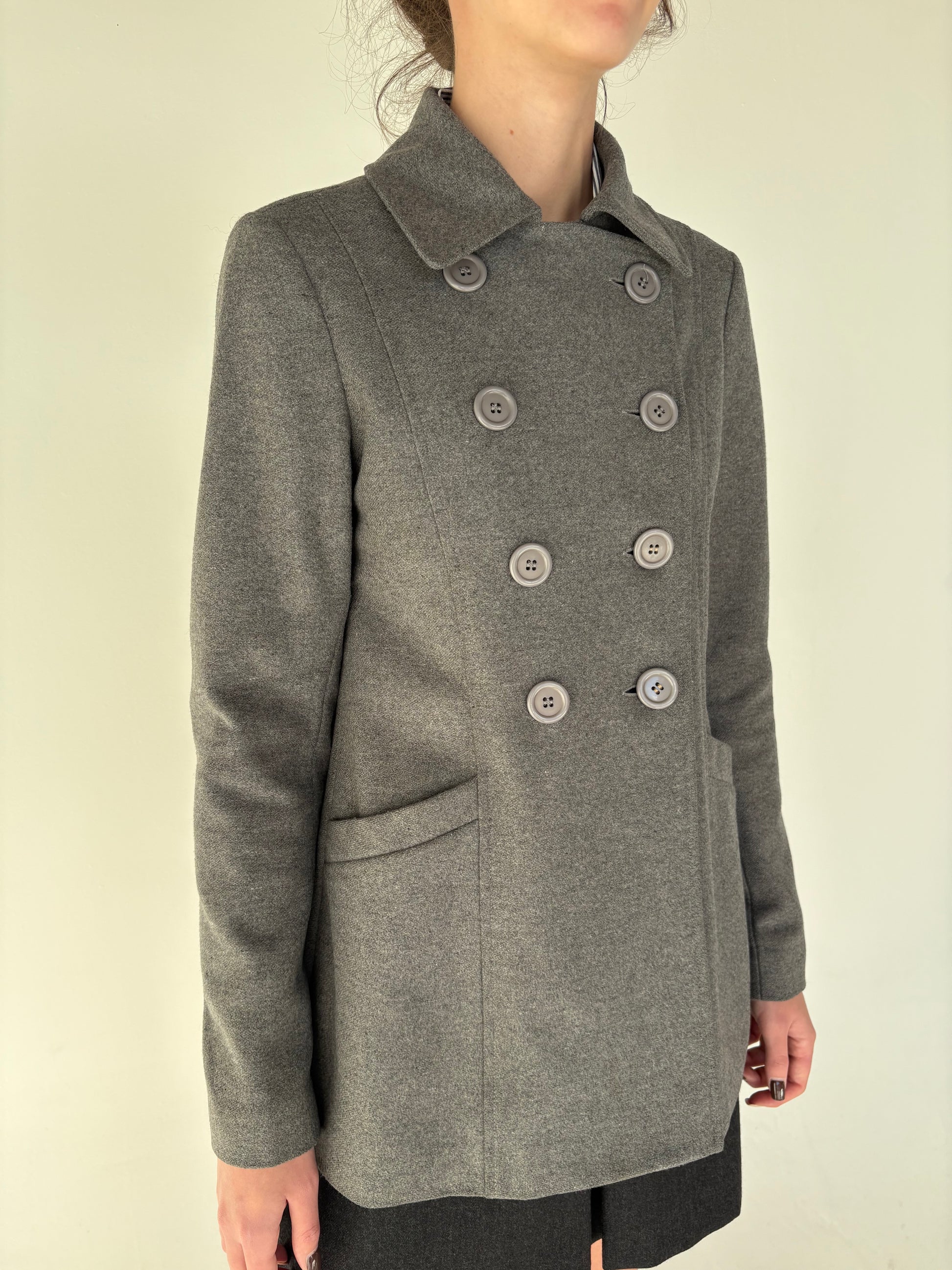 Jacheta silver gray din stofă extrafina cu ținuta și închidere dublă