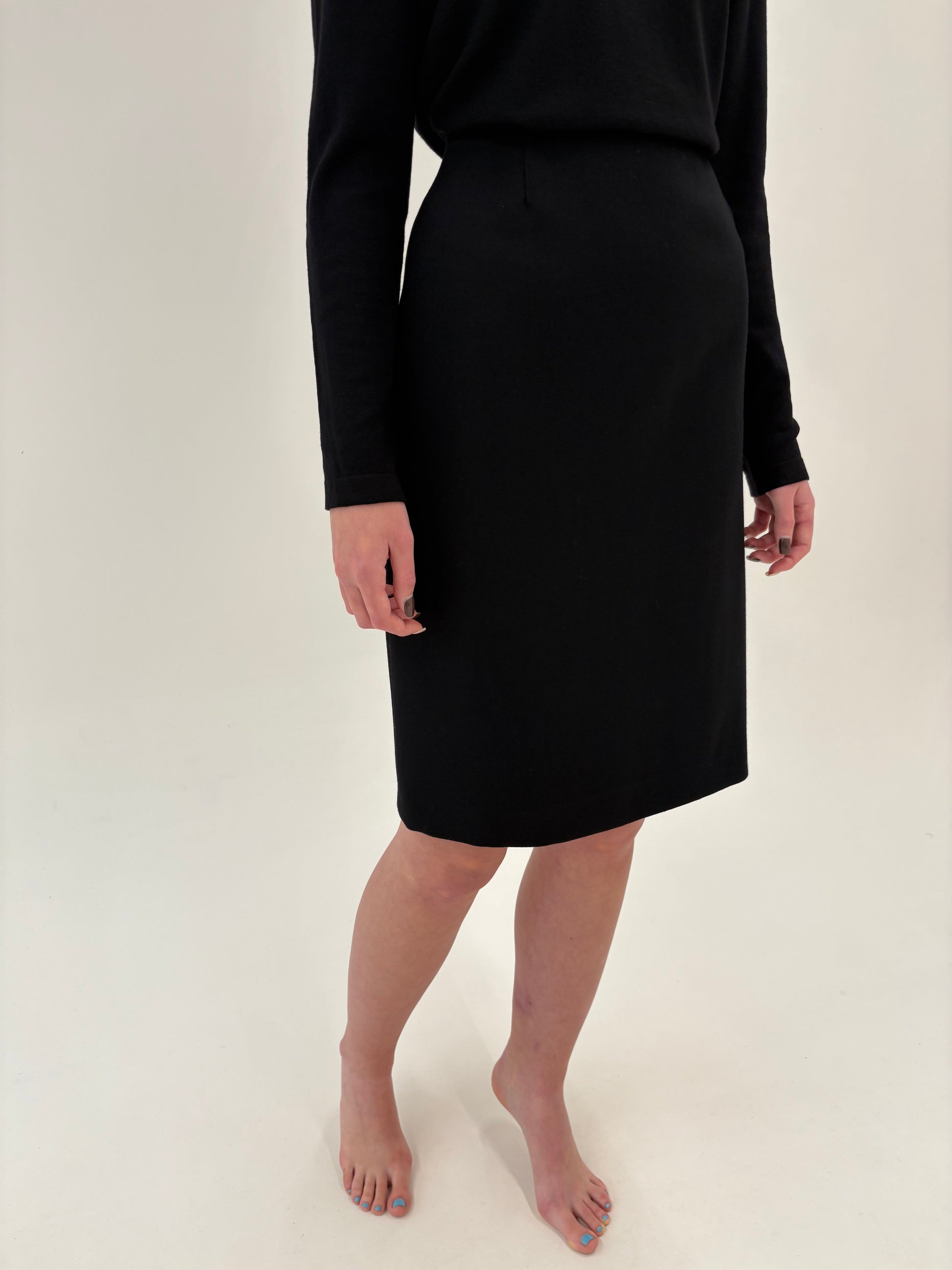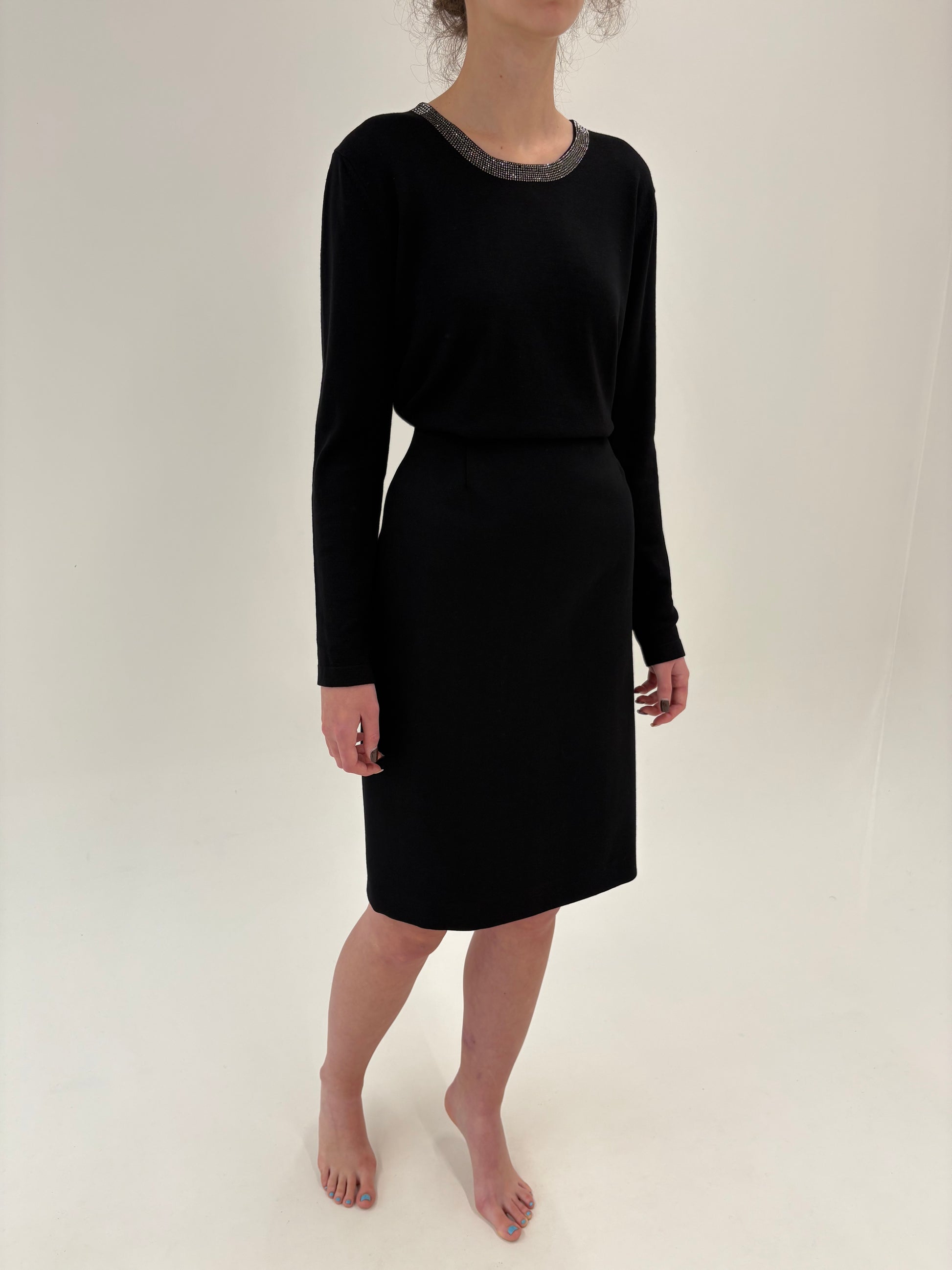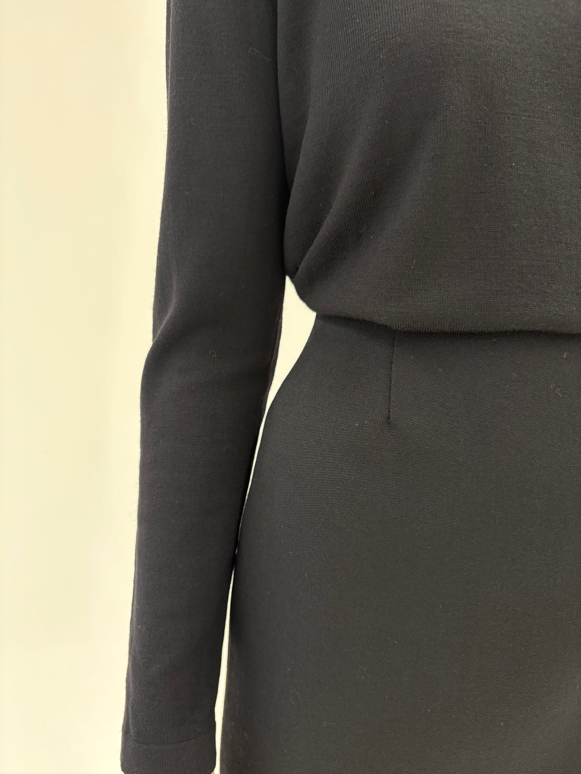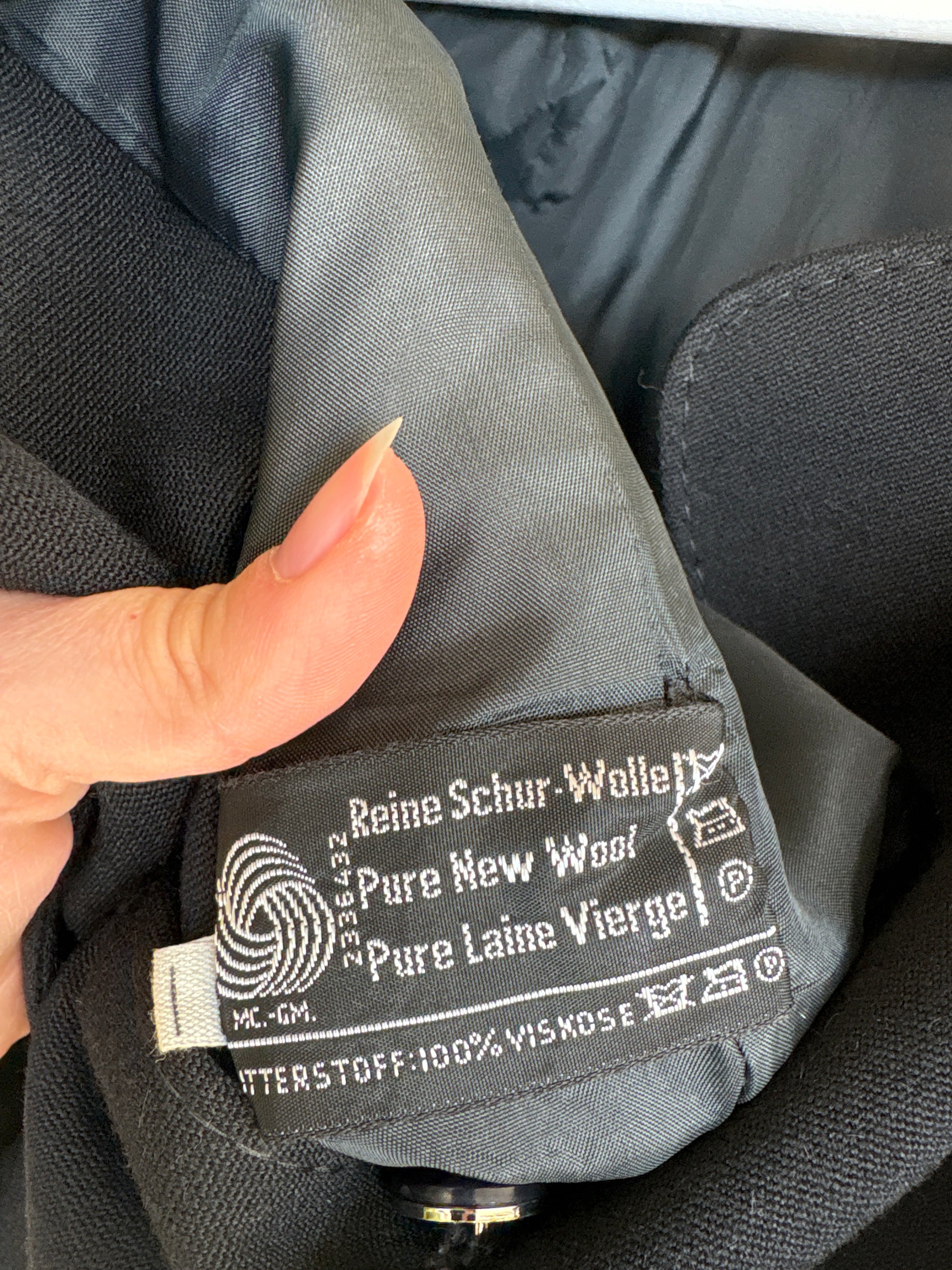 Deux piece vintage negru cu sacou cambrat și revere rotunjite din lana certificată