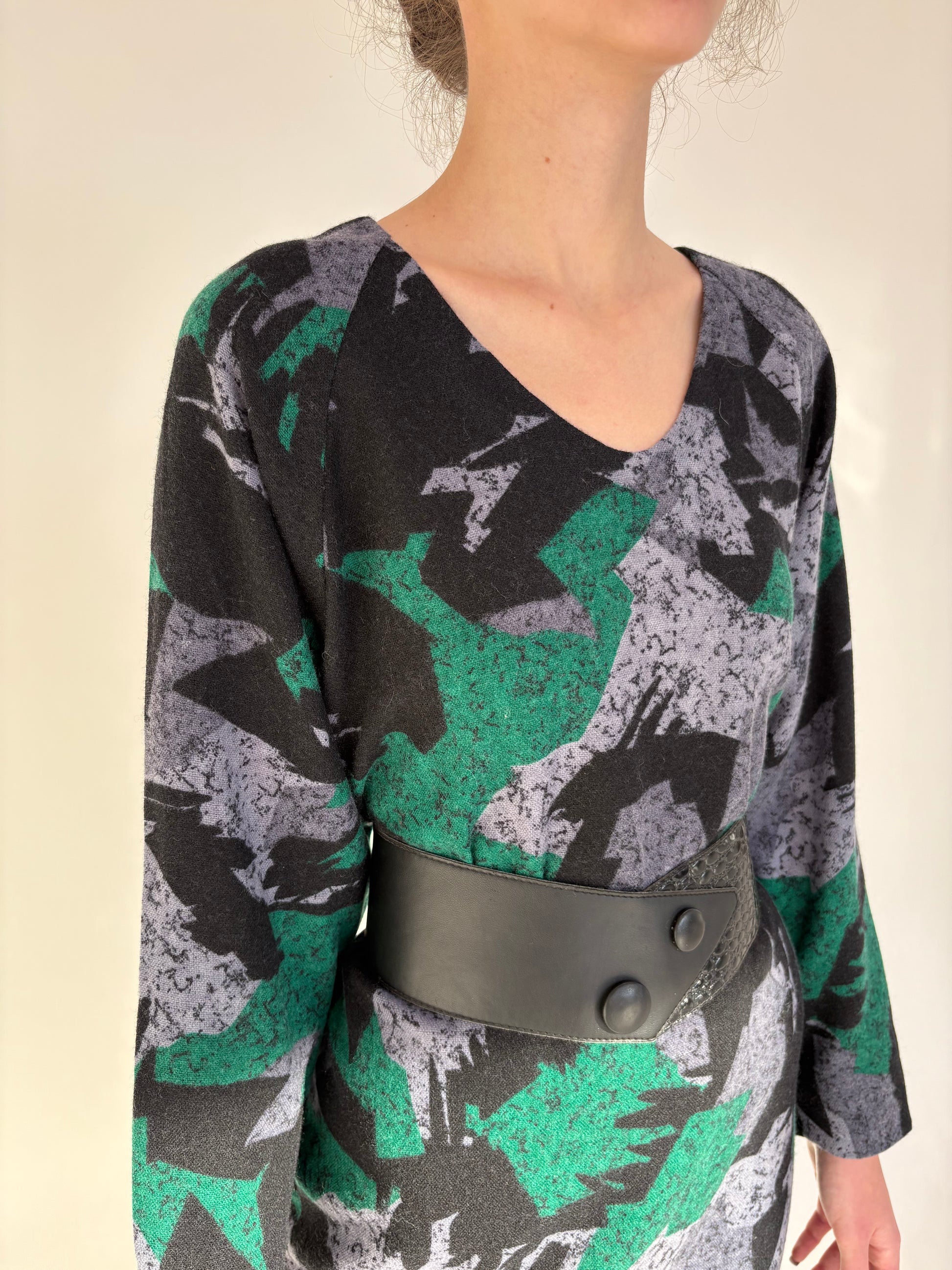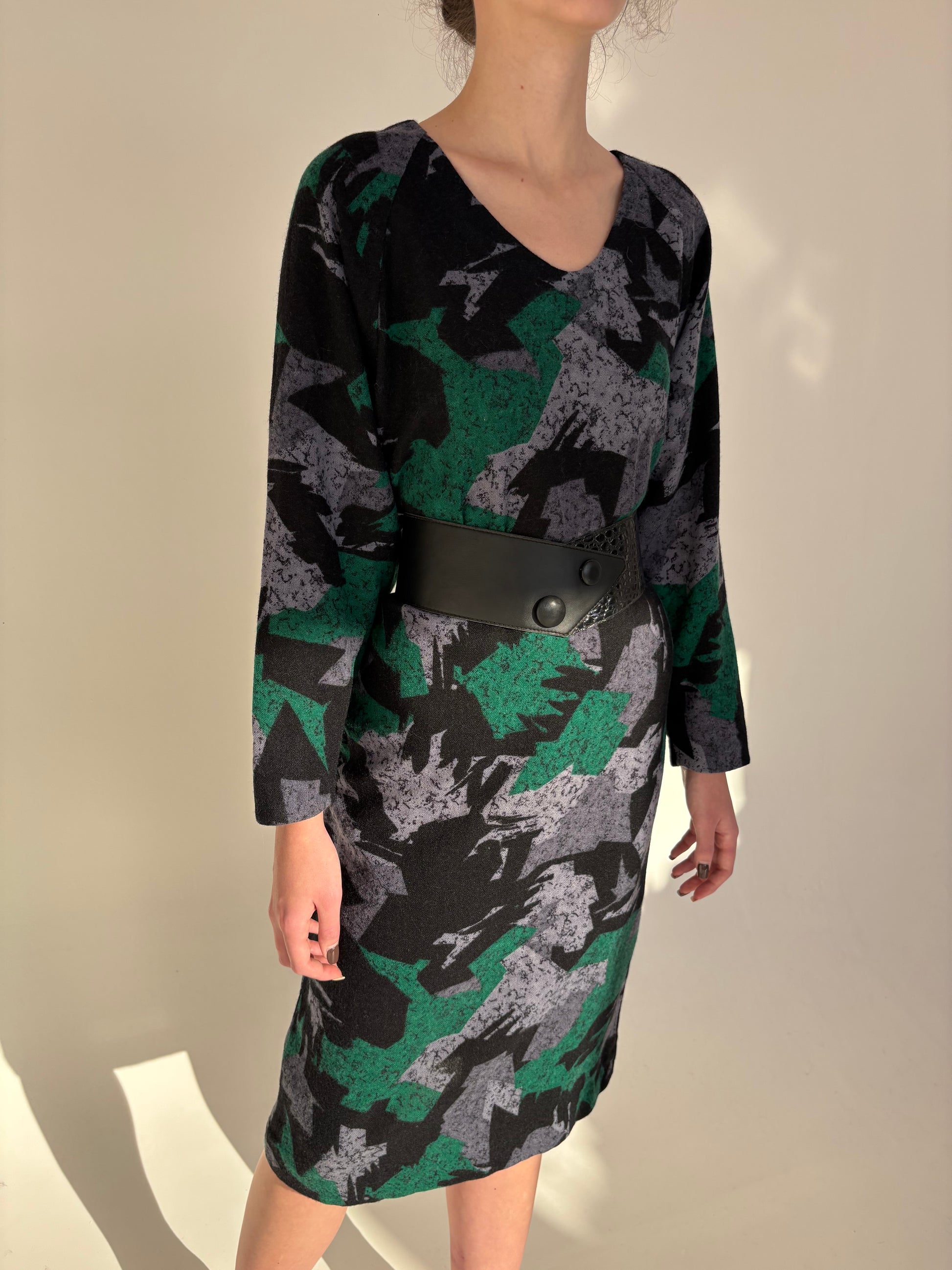 Rochie vintage din tricot dens de lana extrafina în croi retro modern