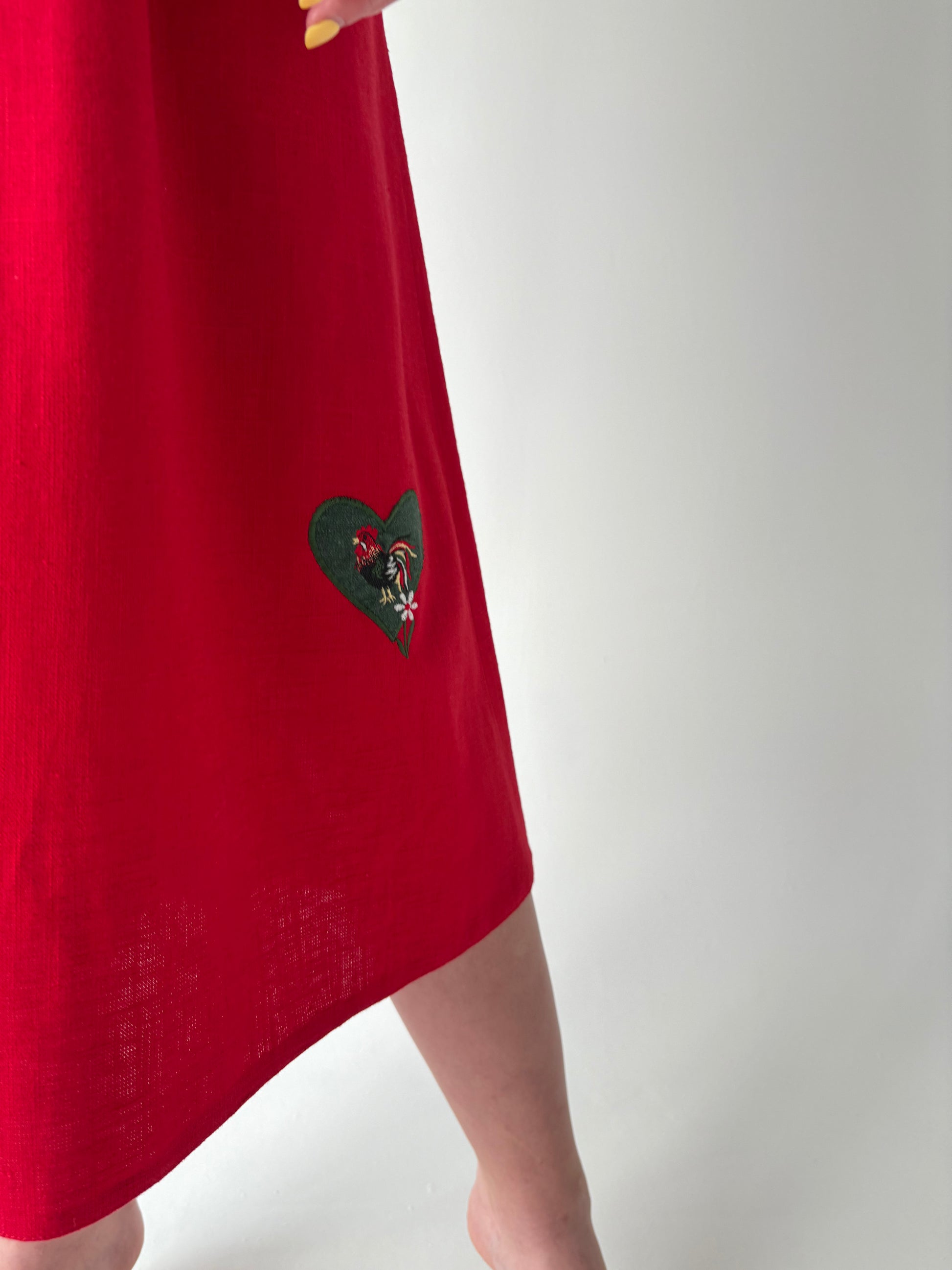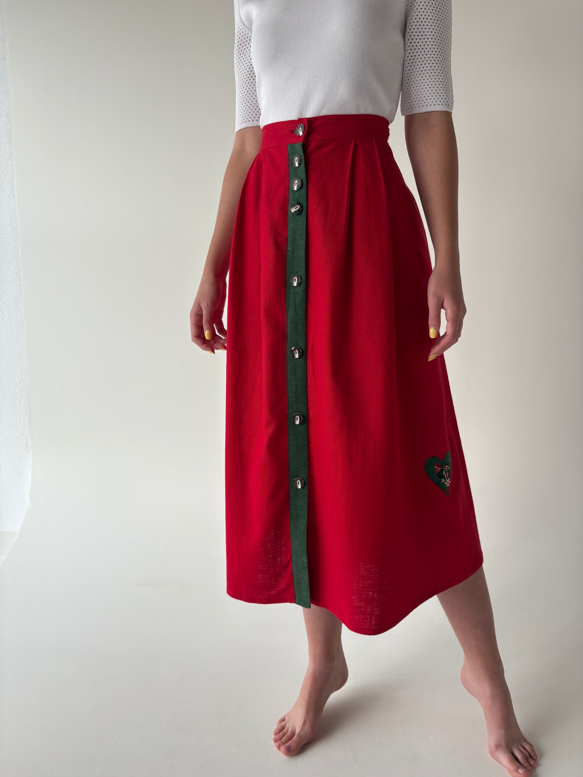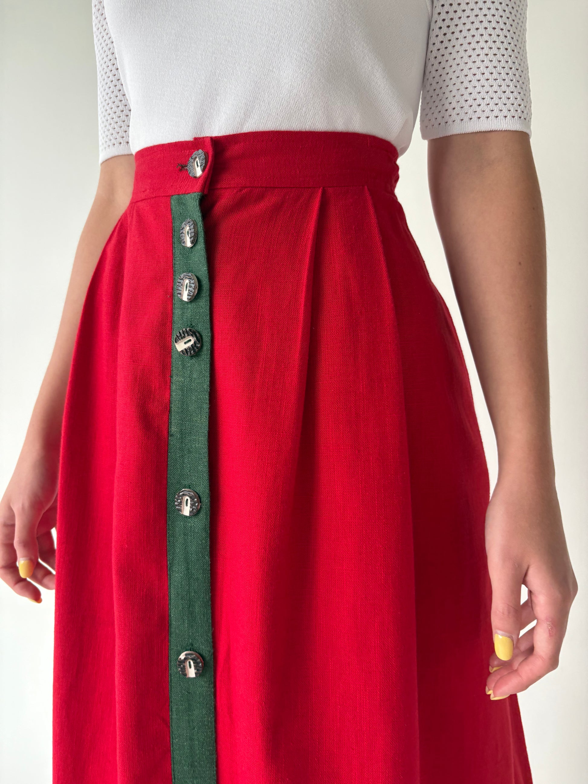 Fustă vintage cherry red din pânză mai groasă cu buzunare