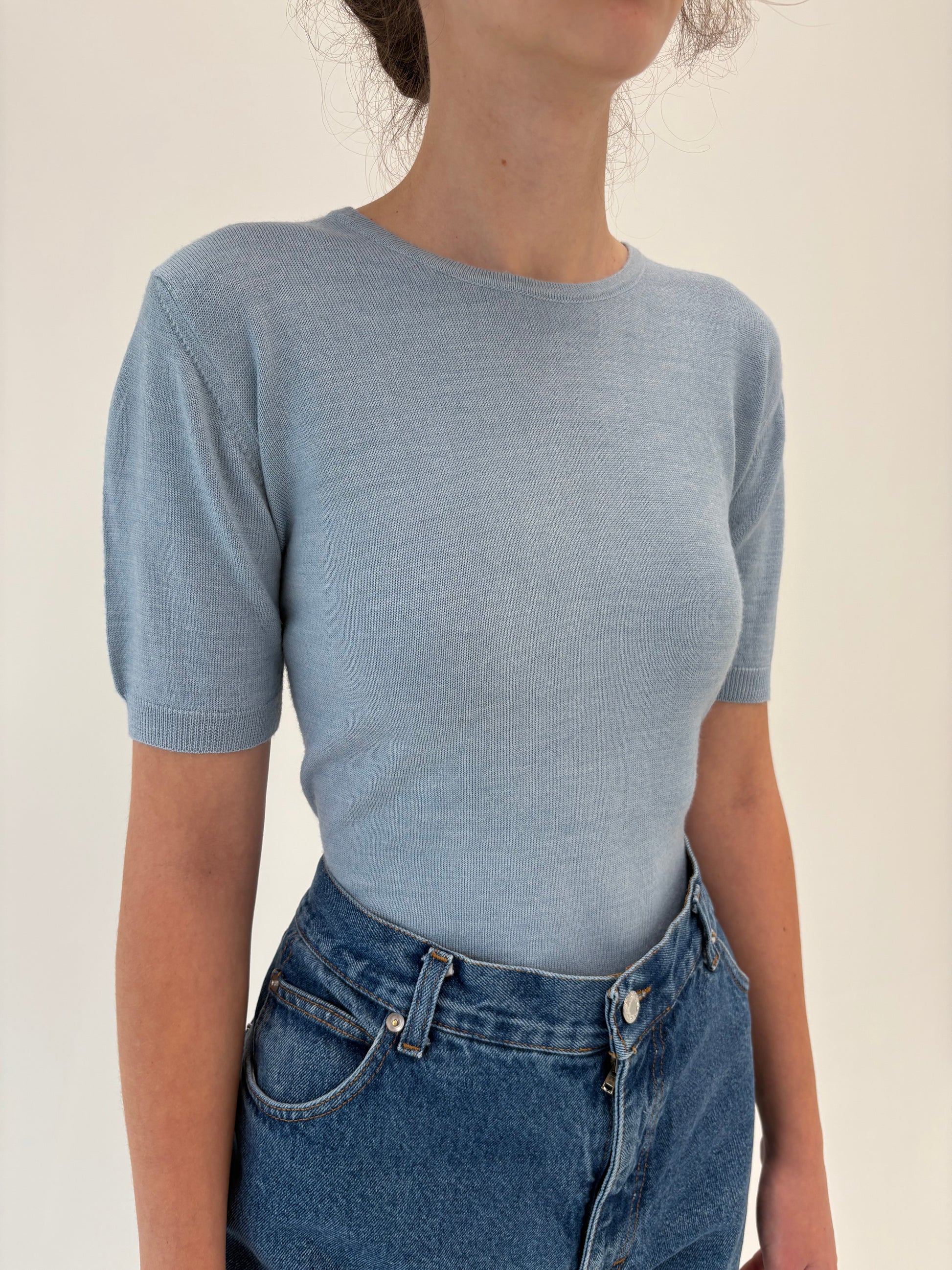 Top baby blue italian din lana merino extrafina de gramaj mare