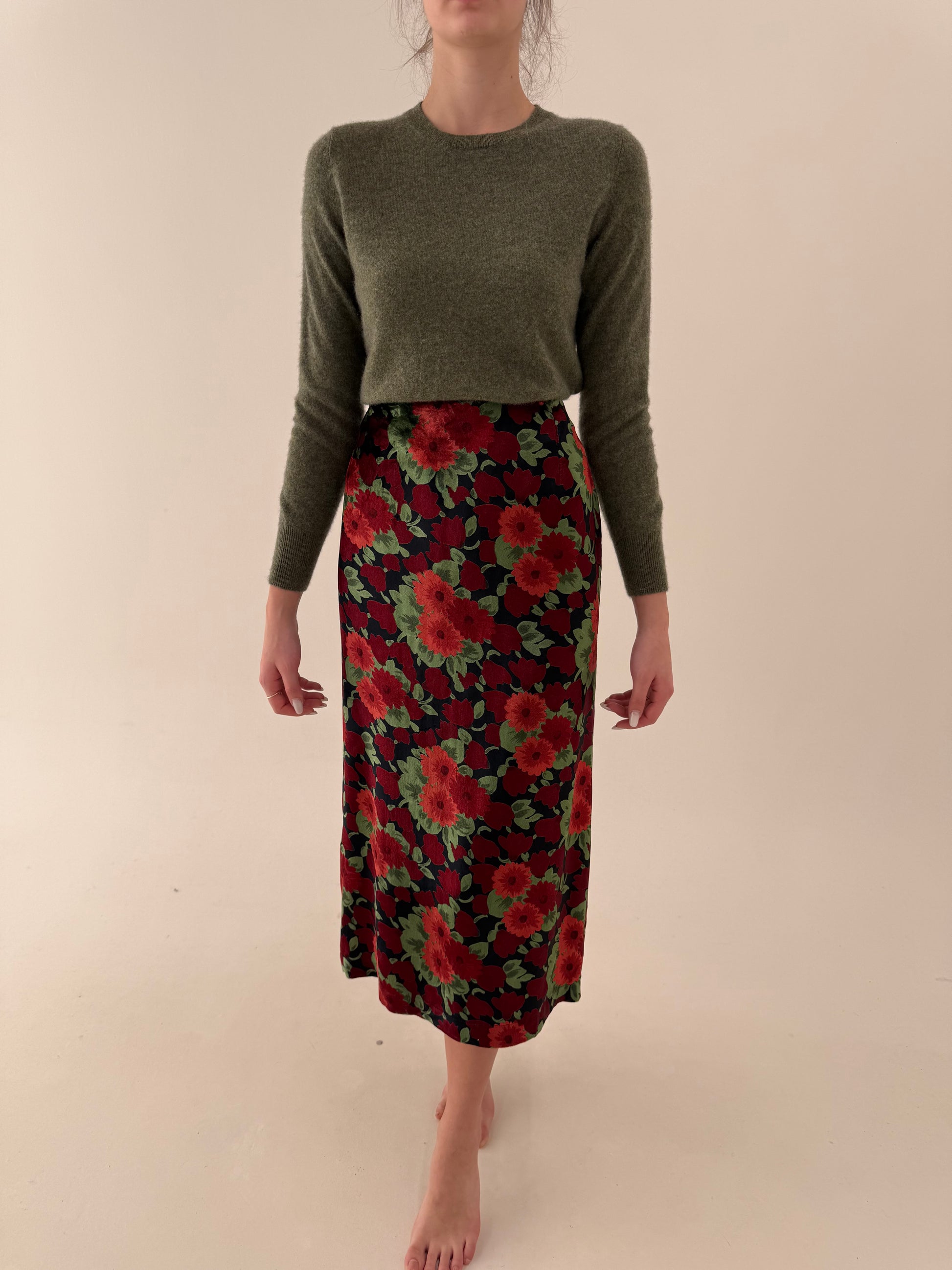Fustă maxi din catifea excepțională cu mătase naturală și talie ultra înaltă
