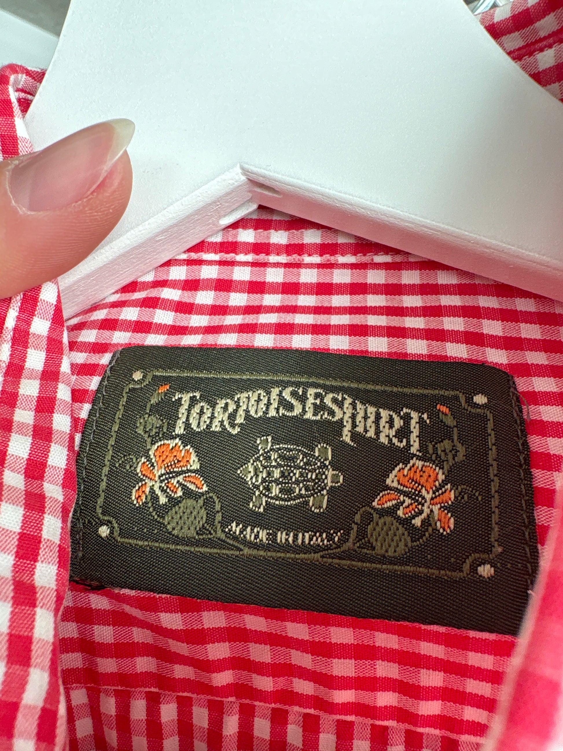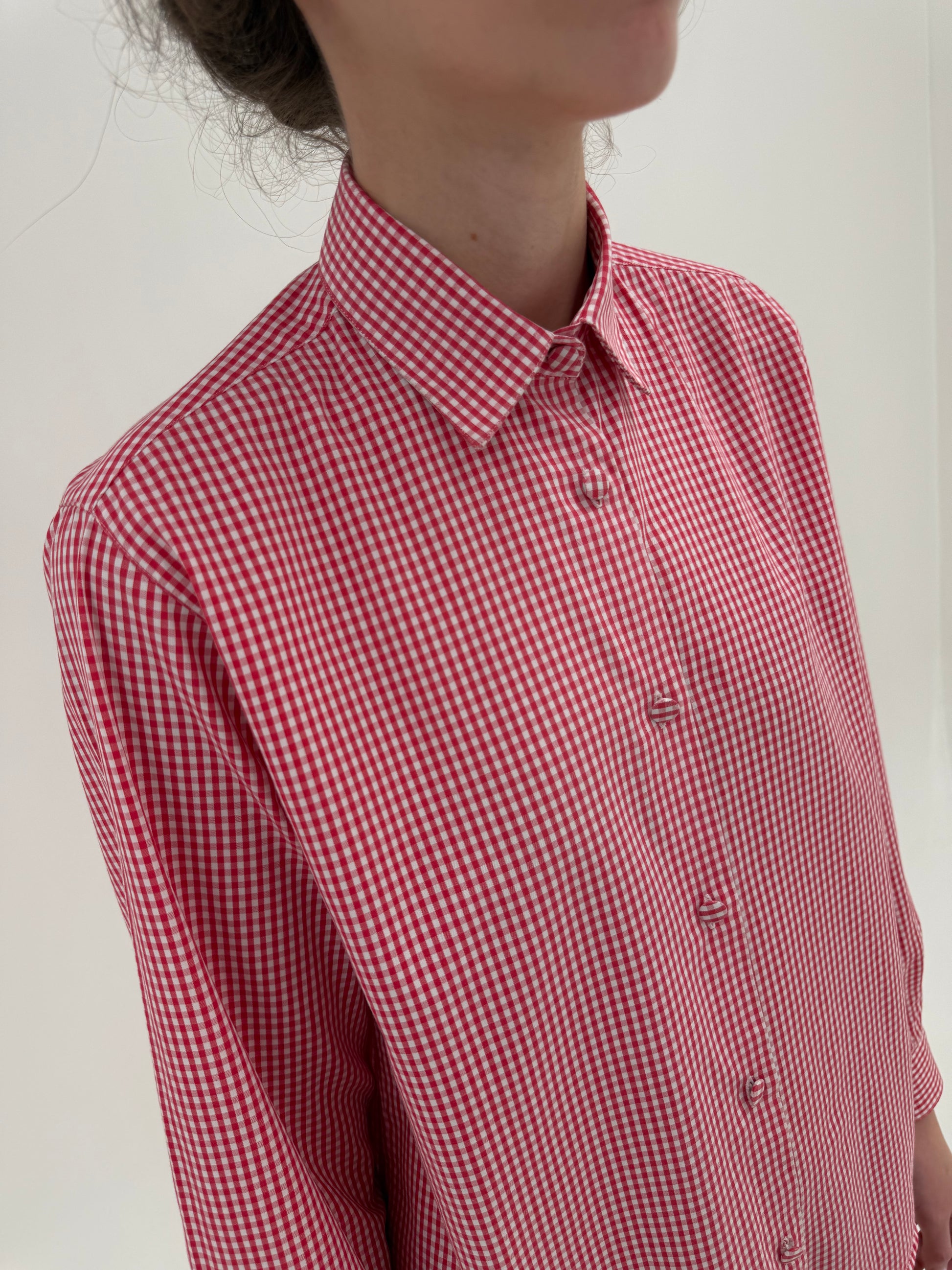 Cămașa vintage din poplin de bumbac în carouri fine cherry red