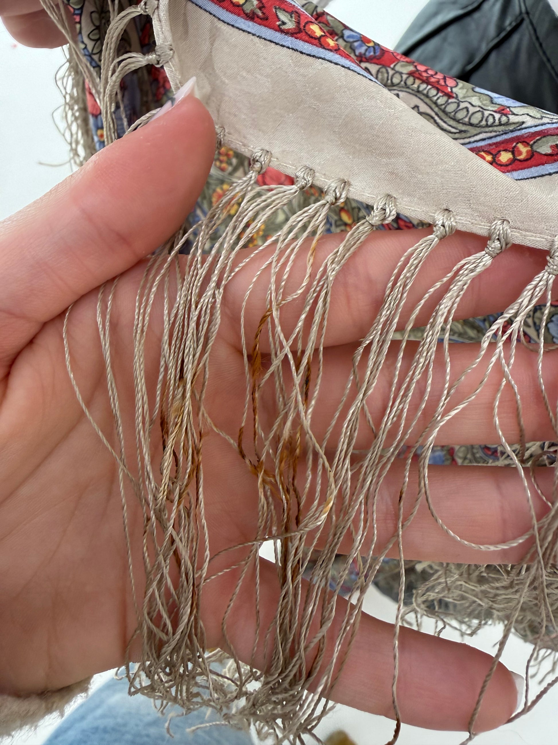Eșarfă XL din mătase naturală light nude cu print paisley