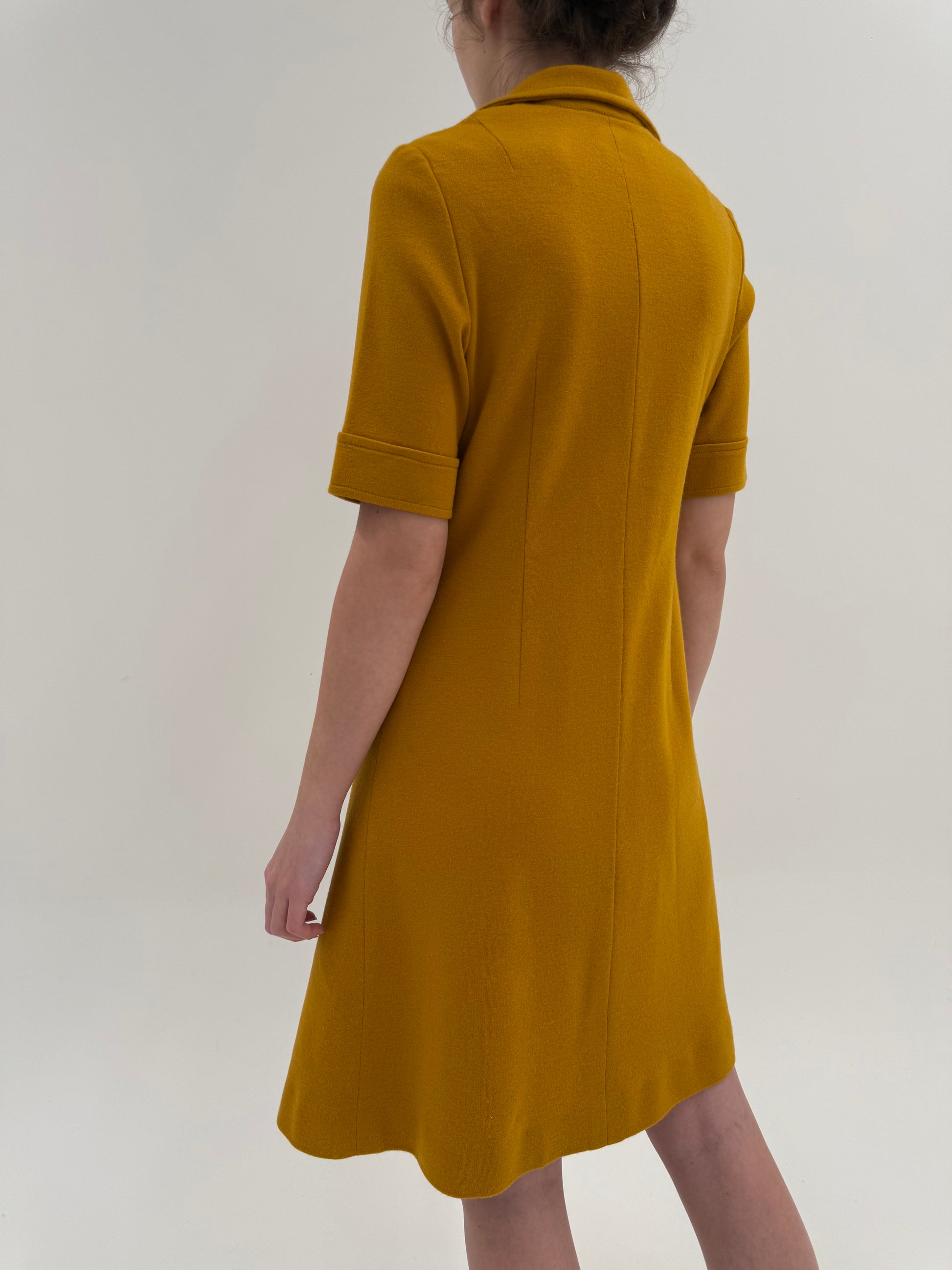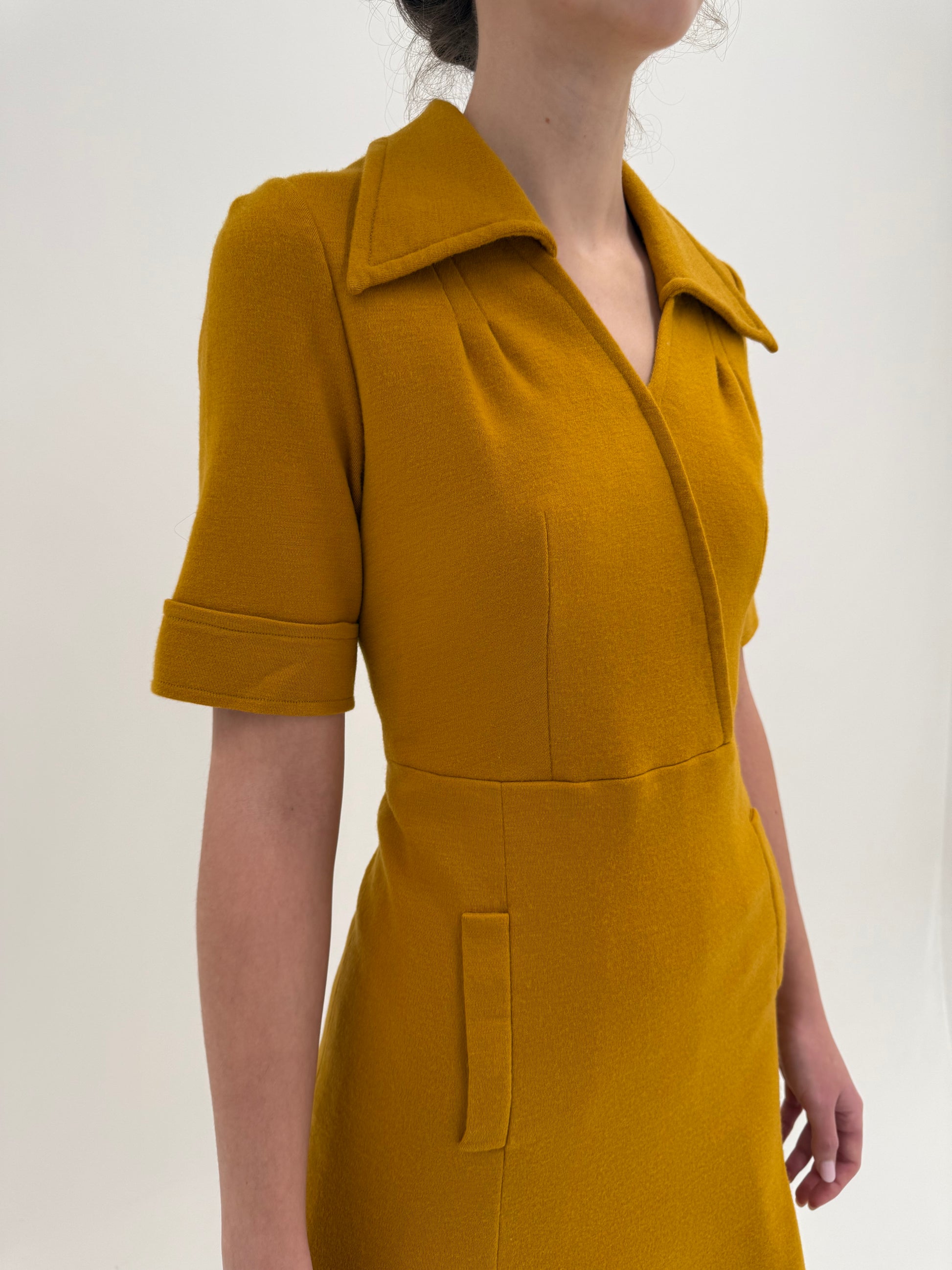 Rochie Old vintage anii 70 mustard yellow din lana extrafina