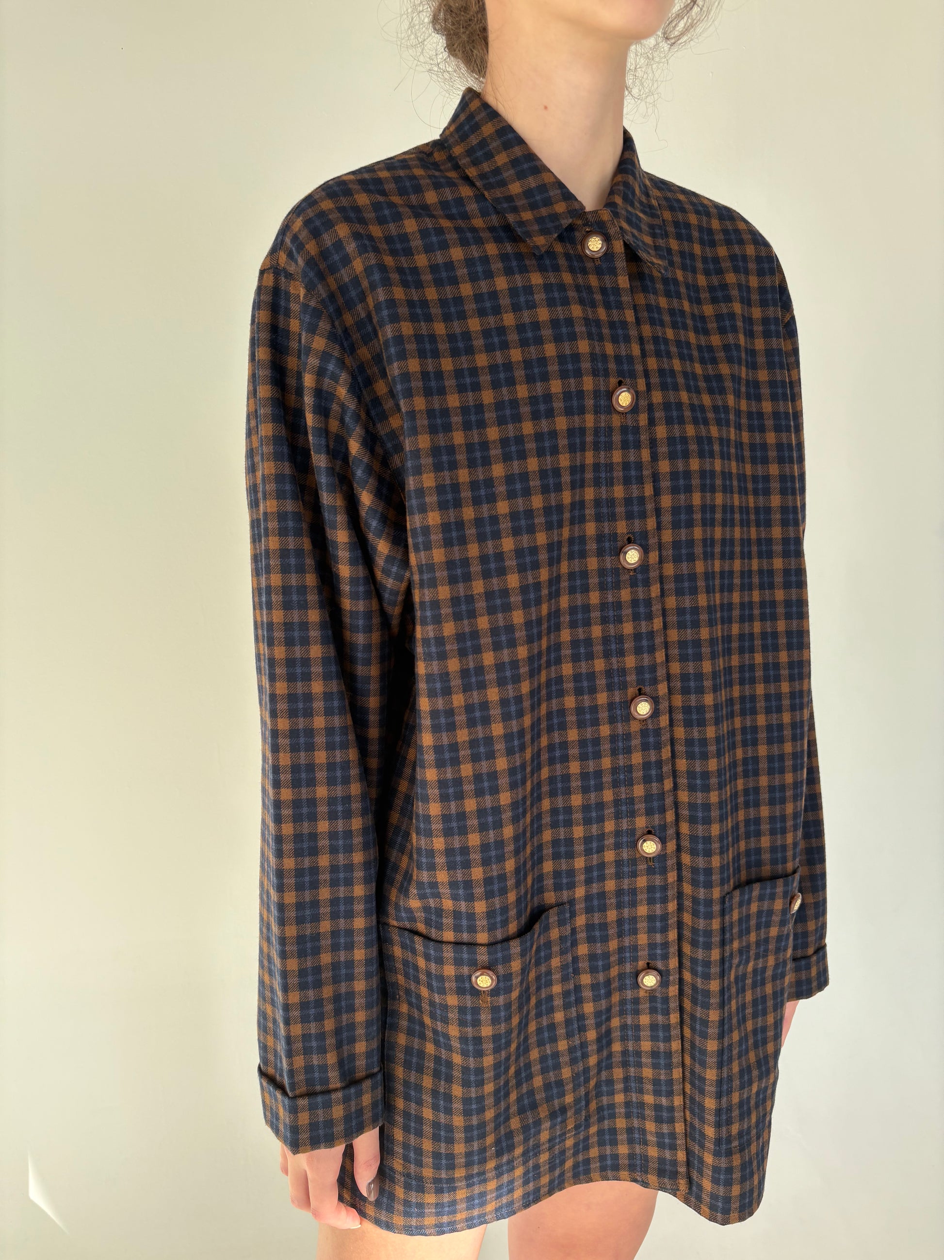 Overshirt / camasa în carouri camel din stofă excepțională de lana