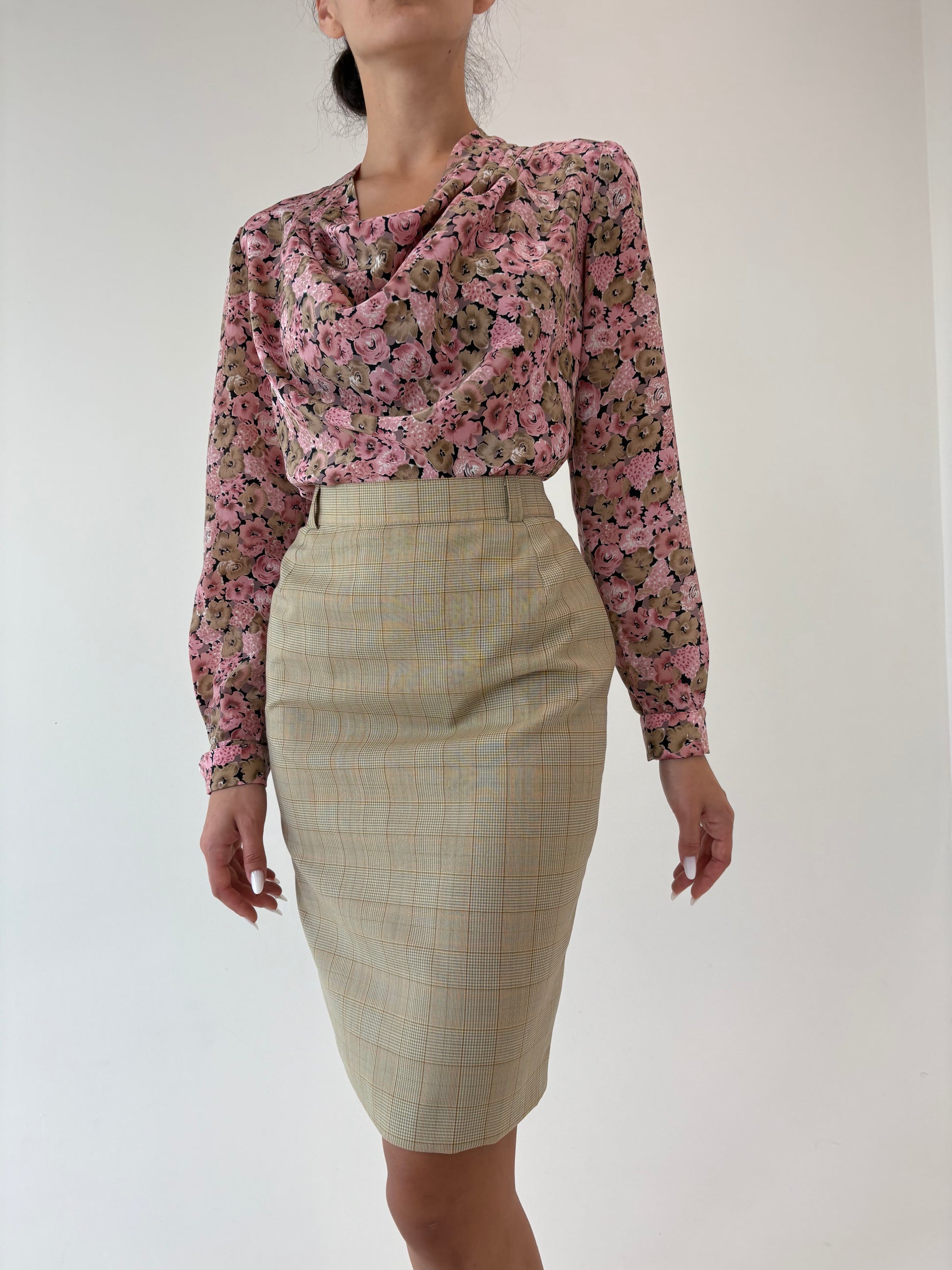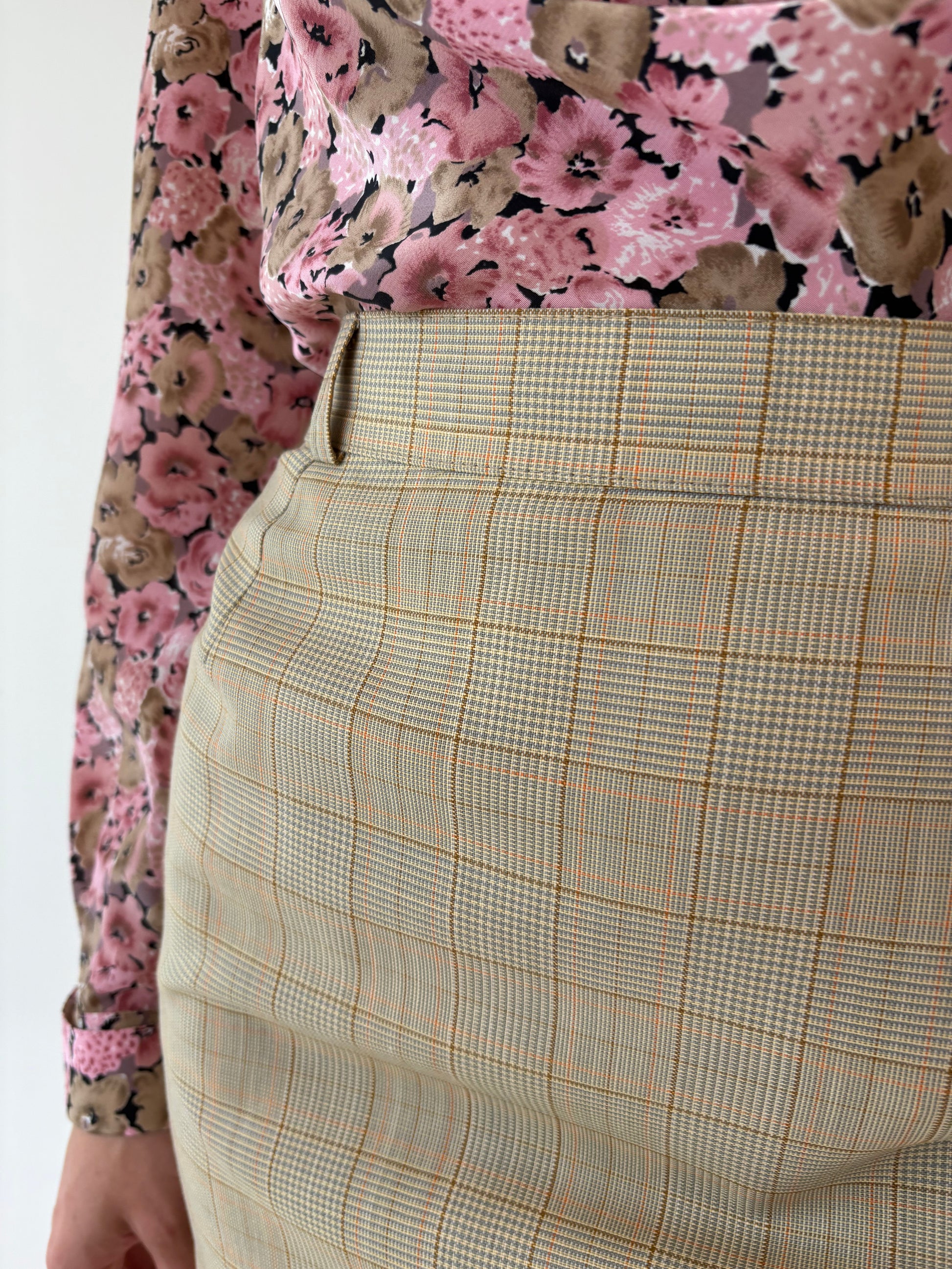 Fustă camel din lana extrafina pura certificată în carouri și culori superbe