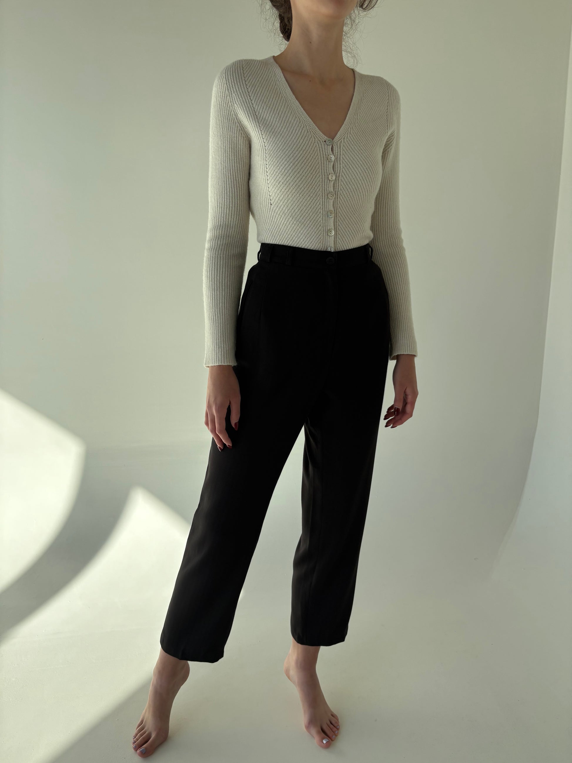 Pantaloni dark chocolate brown țigaretă din lana extrafina