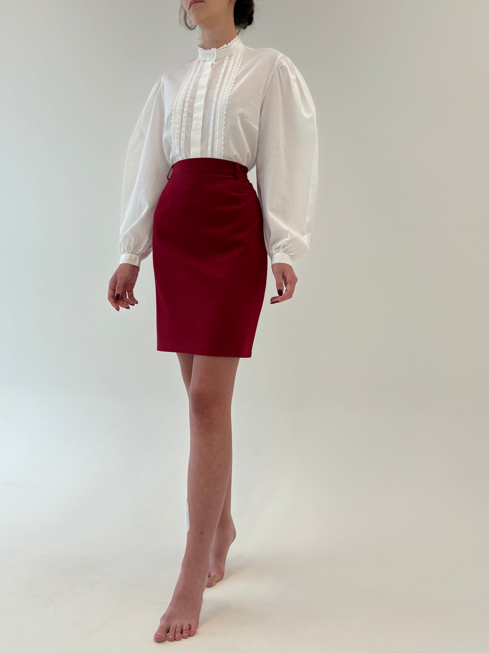Fustă oxblood din stofita cu talie ultra înaltă elastică marcată