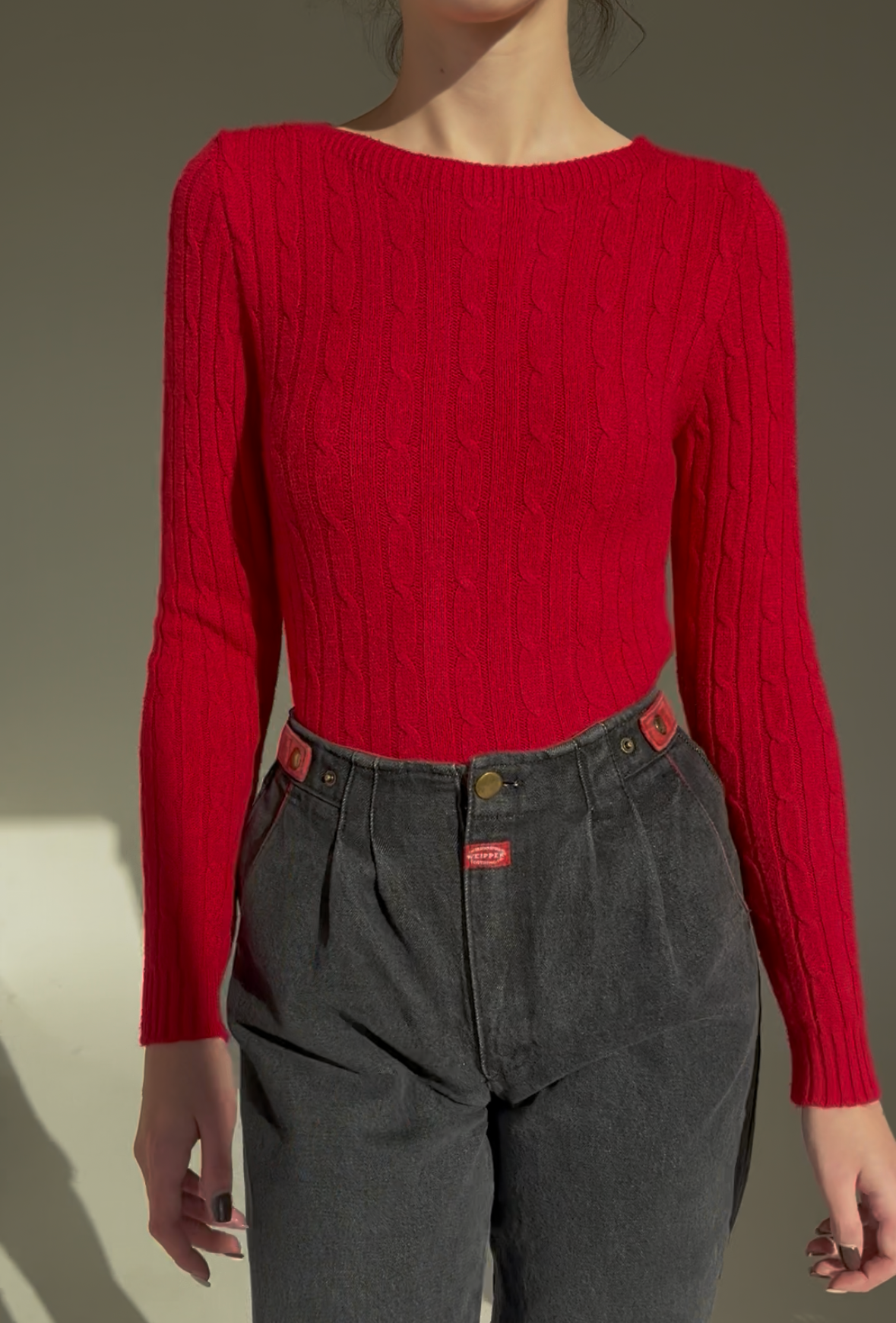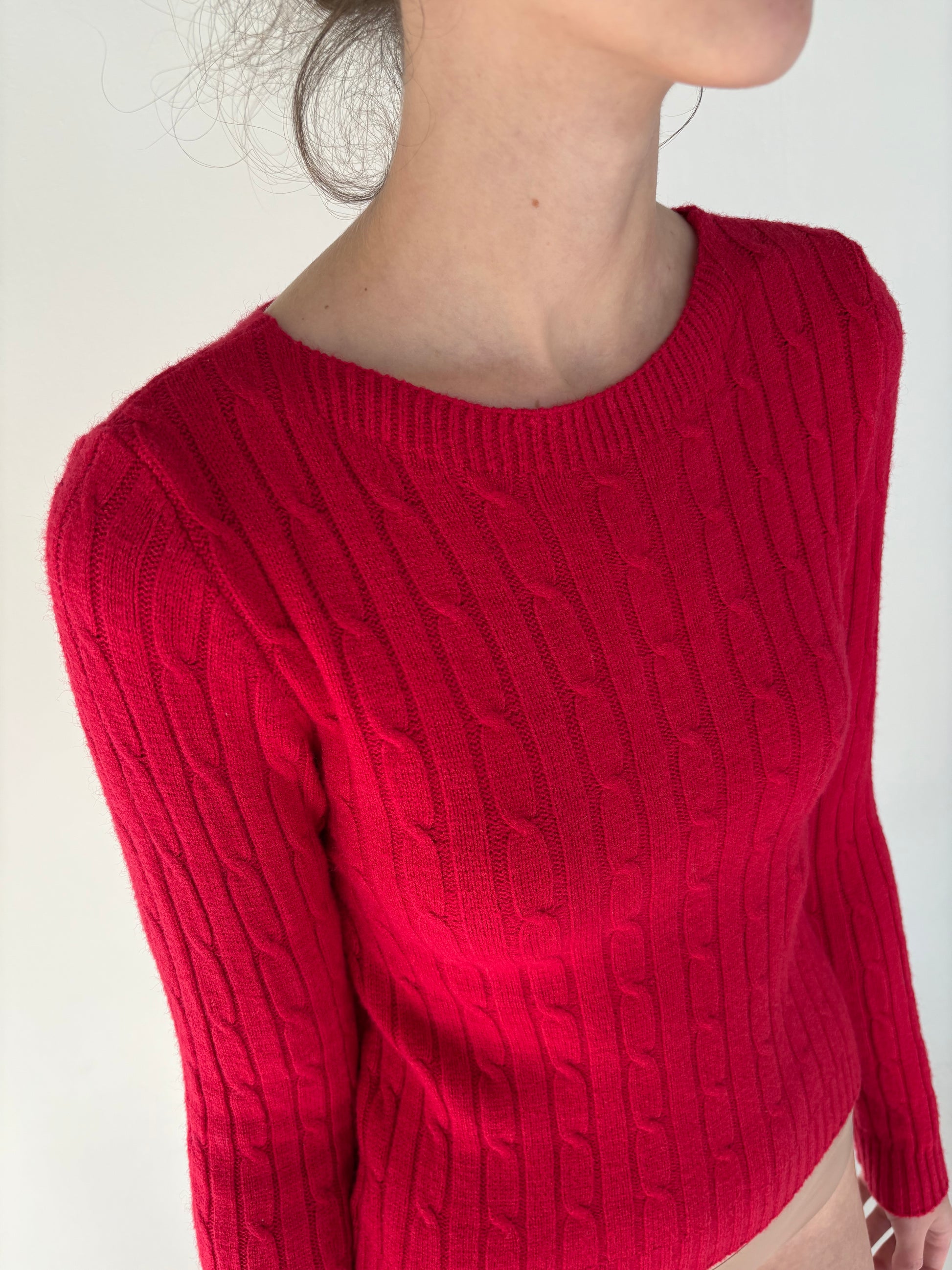 Pulover cherry red cu torsade din mix de lana extrafina (și bumbac)