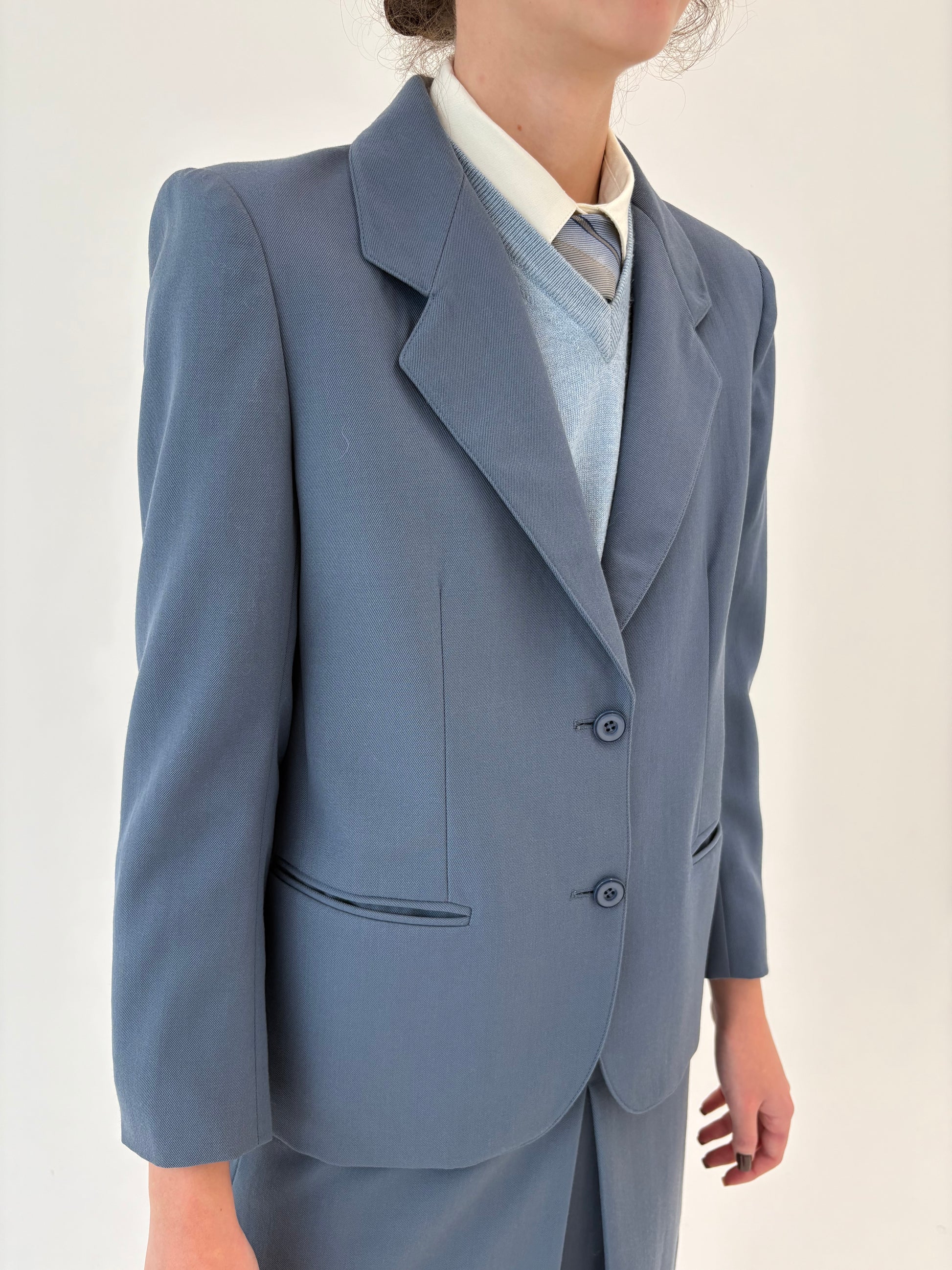 Deux piece italian din lana extrafina structurată dusty baby blue