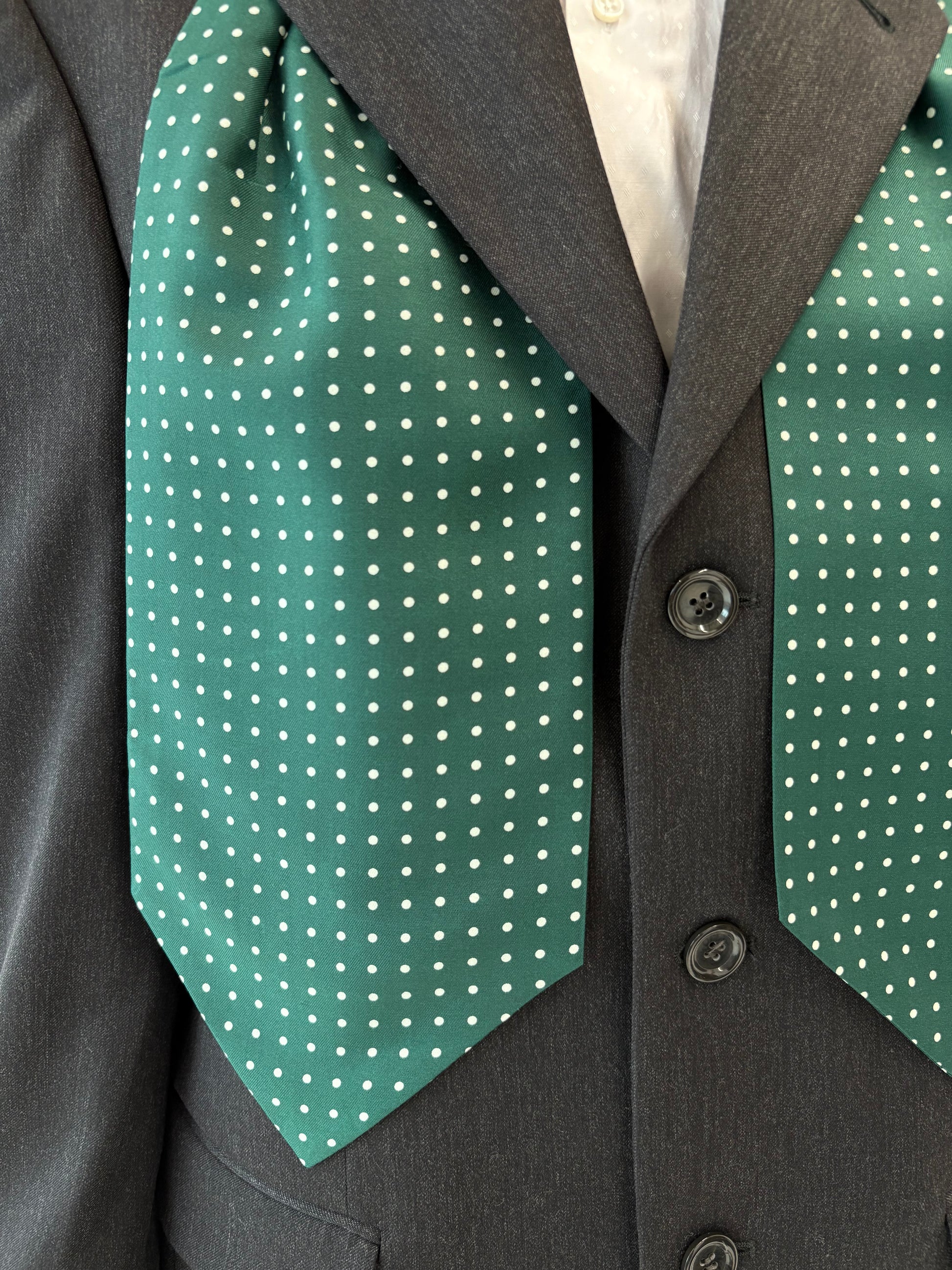 Ascot tie din mătase naturală forest green cu buline ivorie