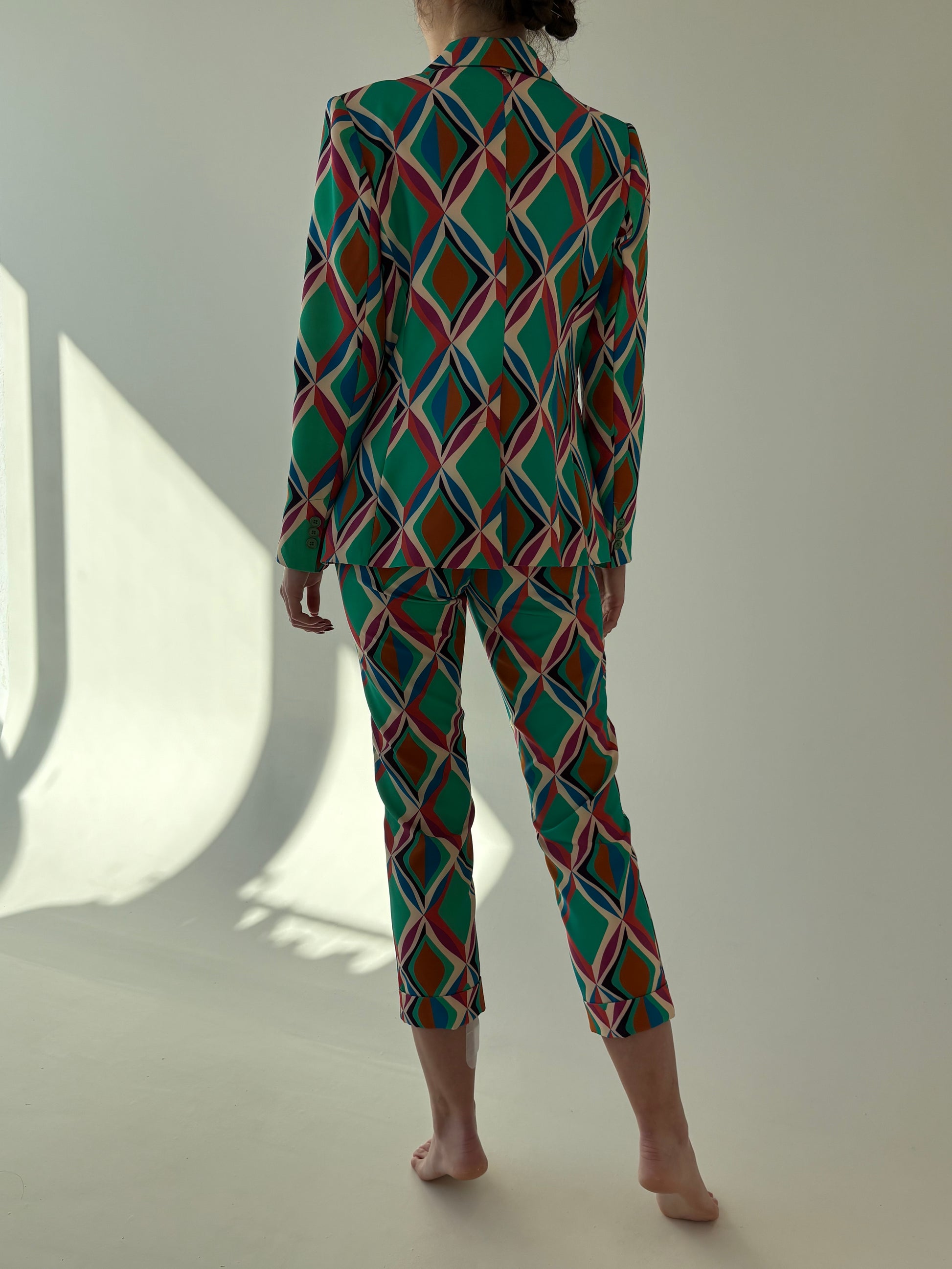Costum italian în croi modern cu print în culori tari