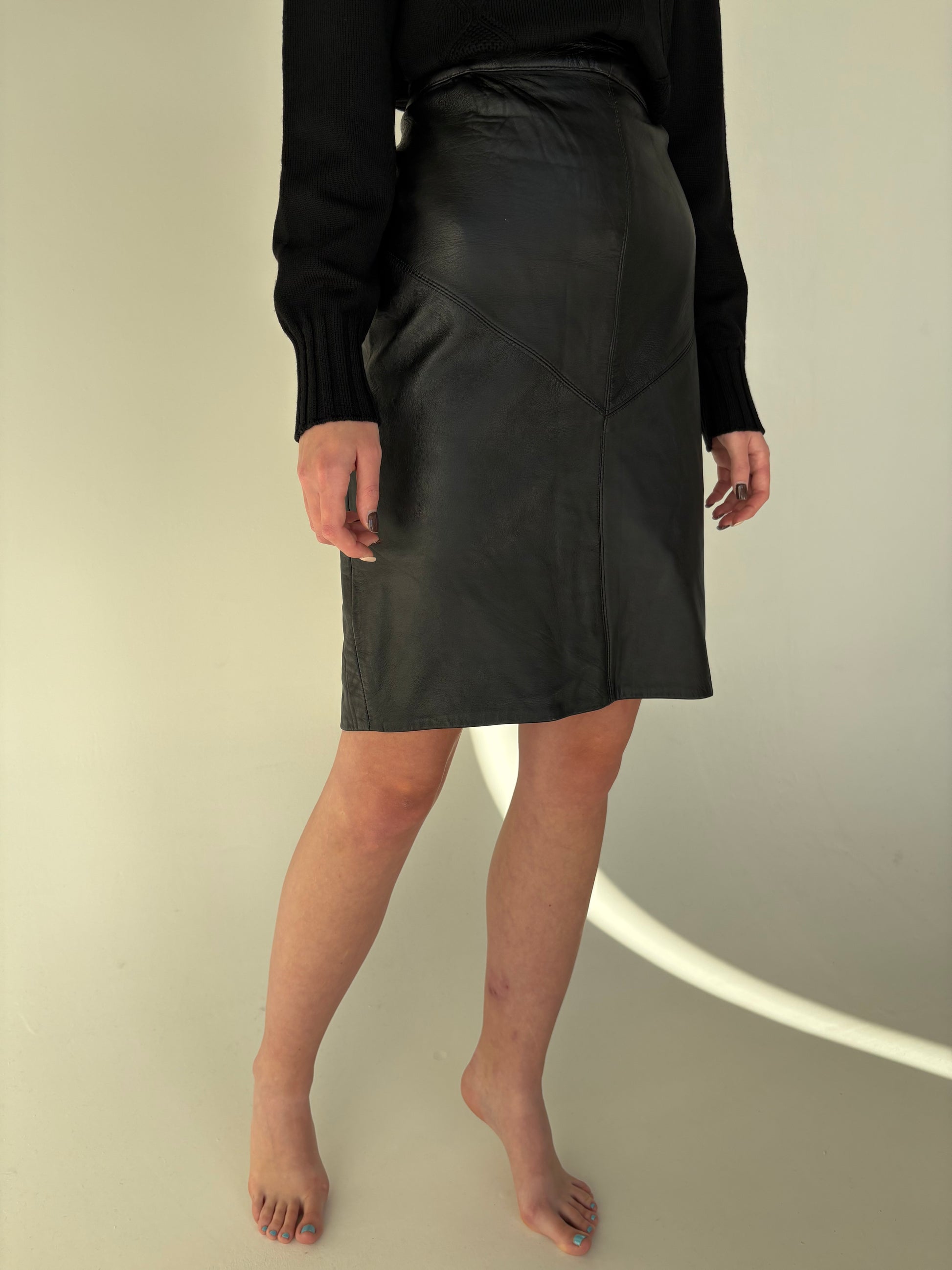 Fustă din piele naturală moale cu talie ultra înaltă marcată