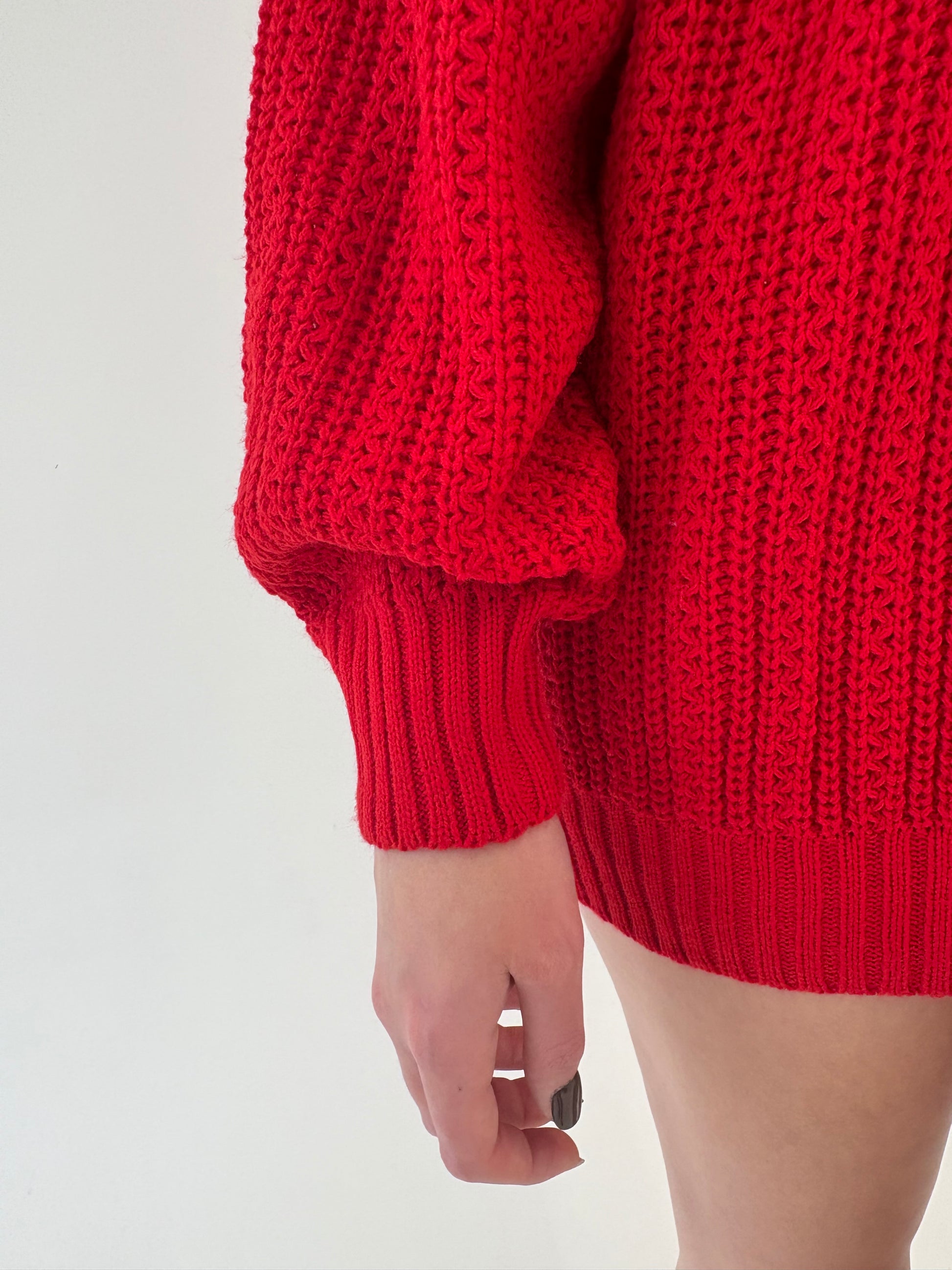 Pulover vintage cherry red cu mânecă fluture din lana extrafina de gramaj mare