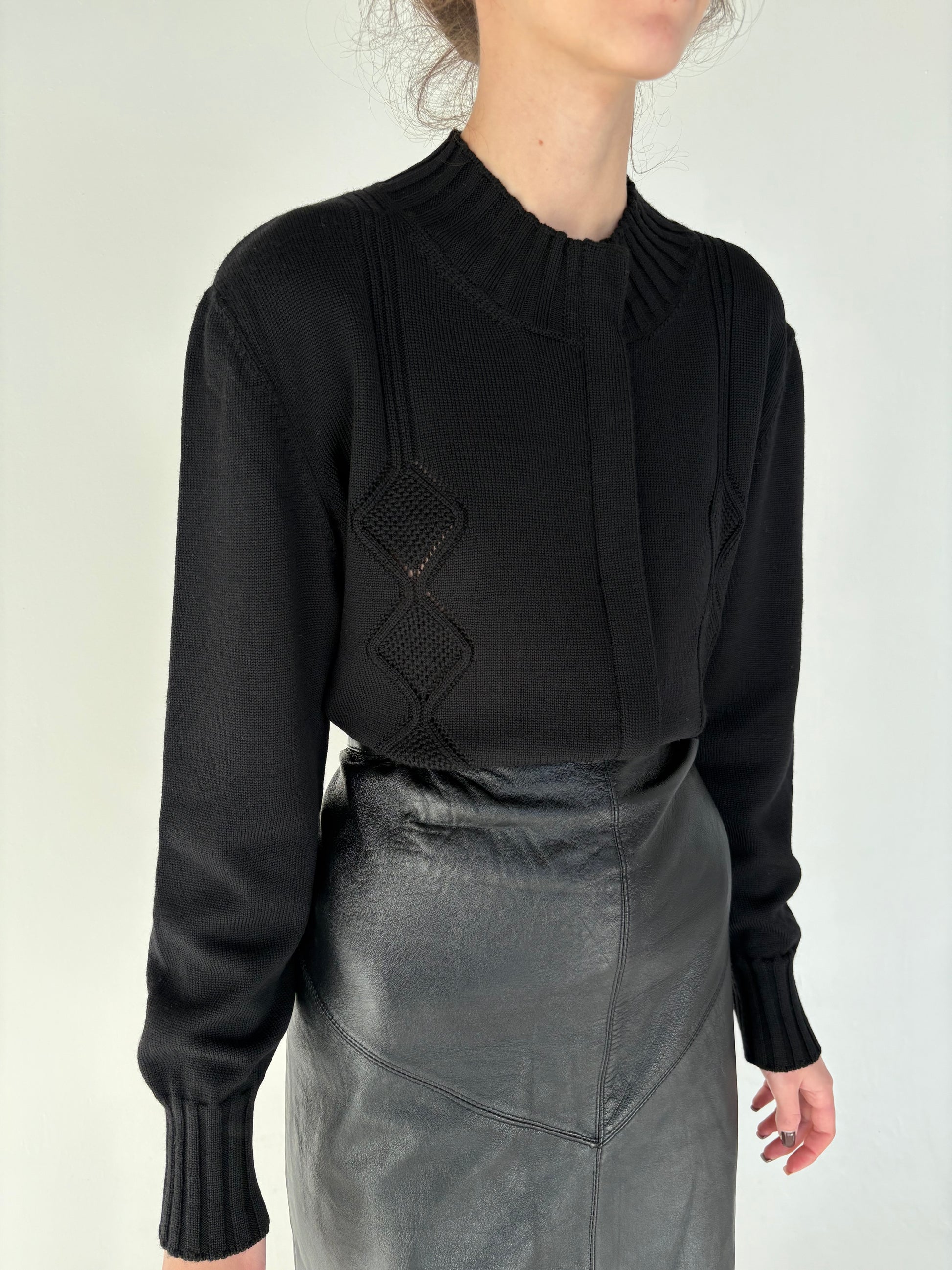 Cardigan high end negru italian din lana merino extrafina de gramaj mare