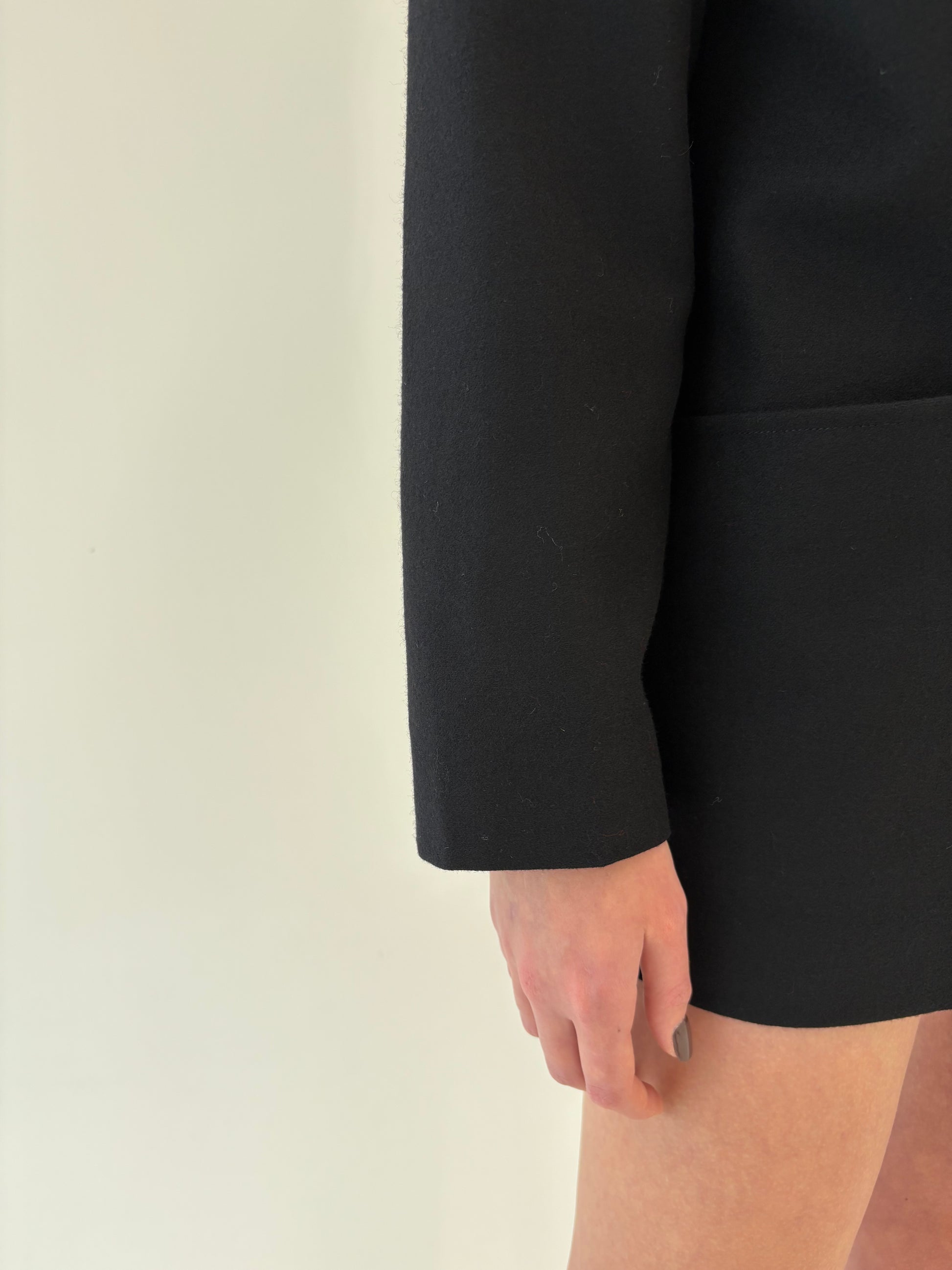 Sacou negru italian din stofă de lana extrafina certificată cu închidere dublă