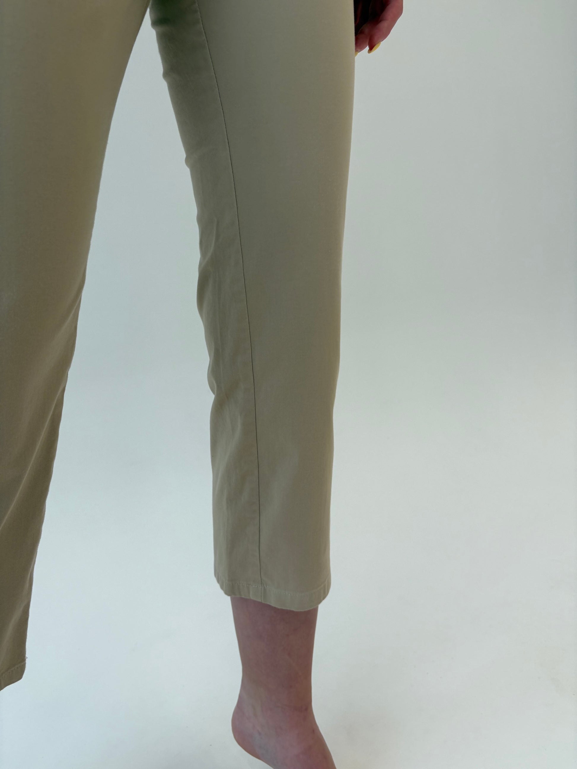 Pantaloni camel italienești petite din poplin modelator de bumbac în croi capri