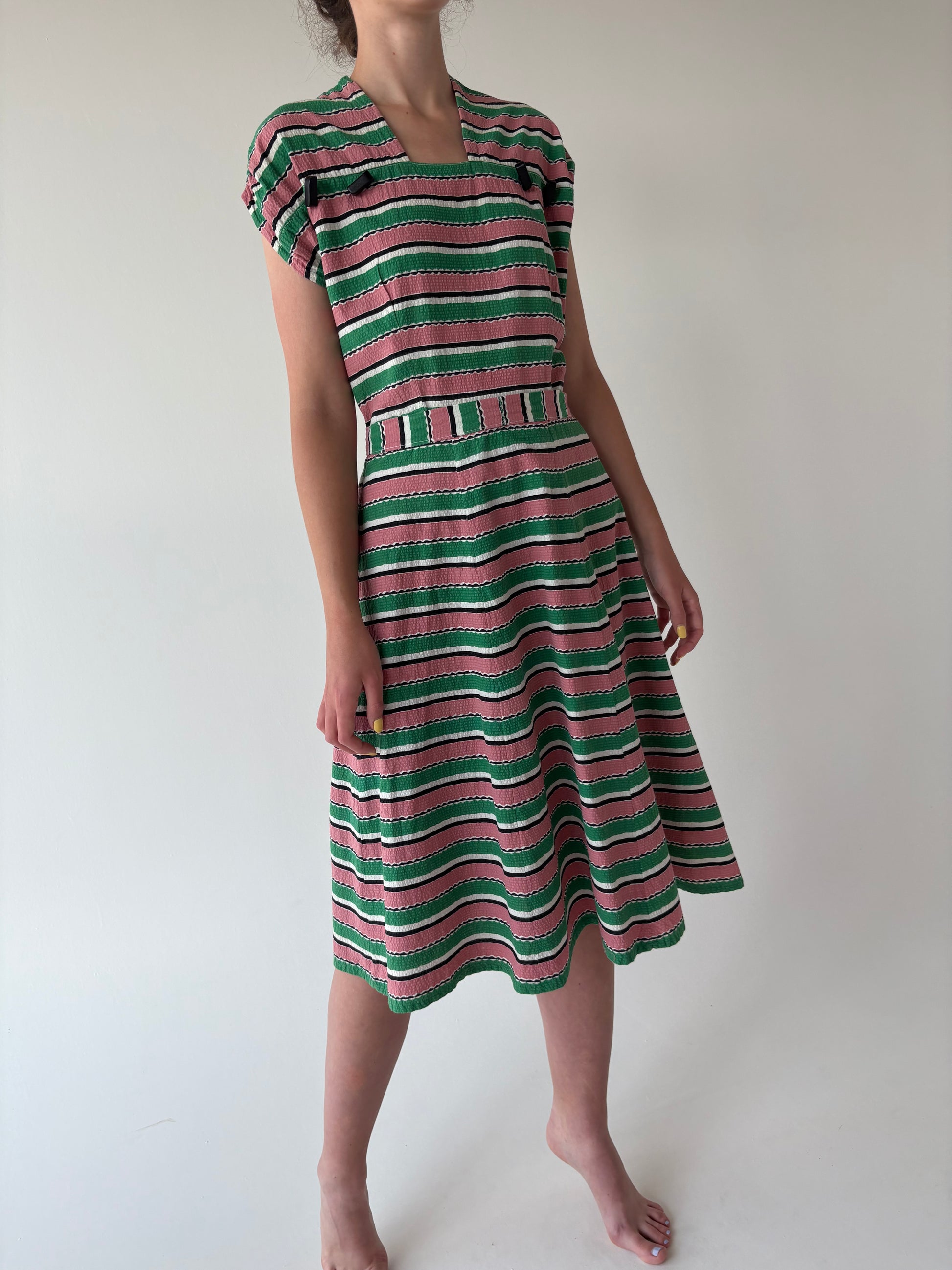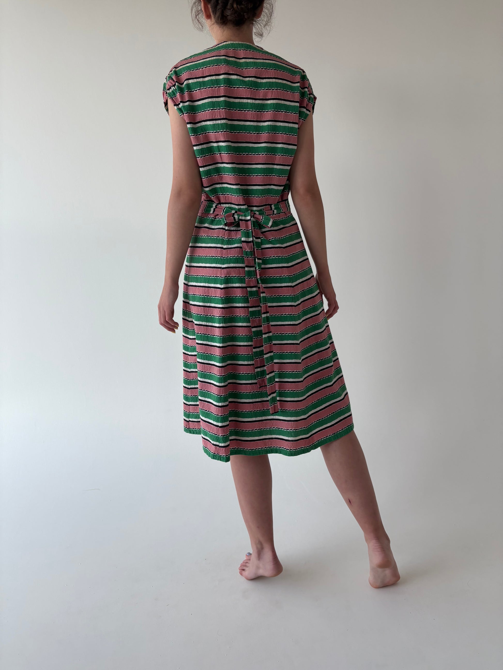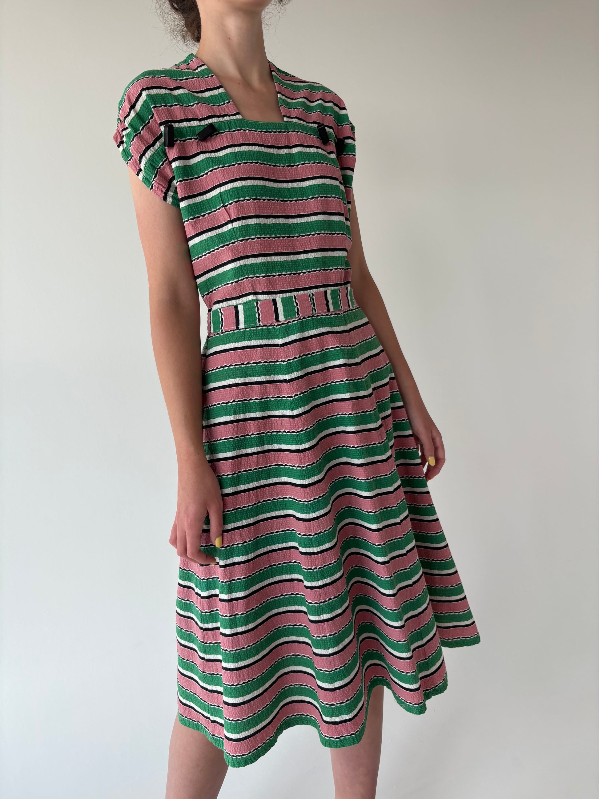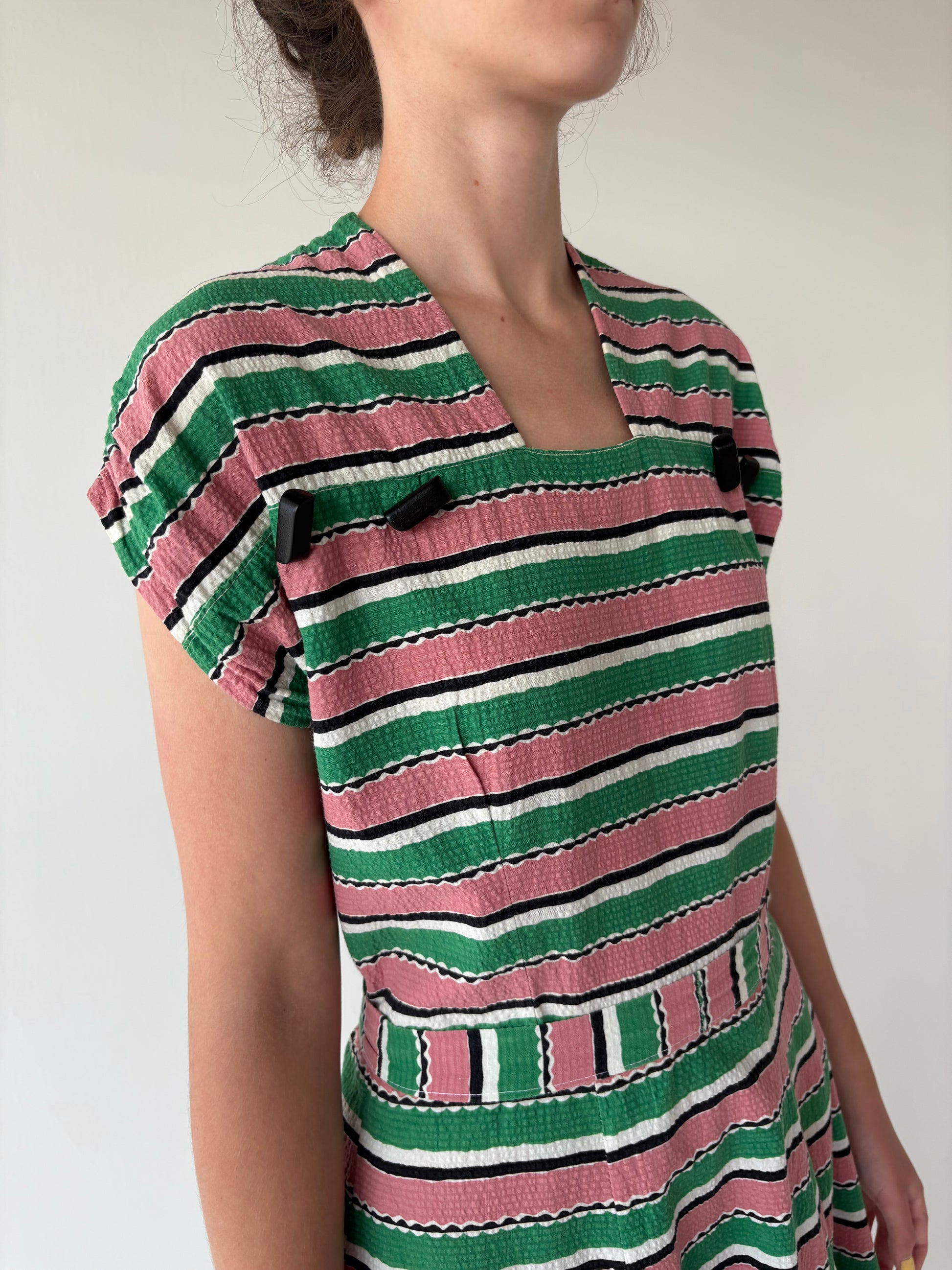 Rochie vintage din seersucker cu talie marcată reglabilă
