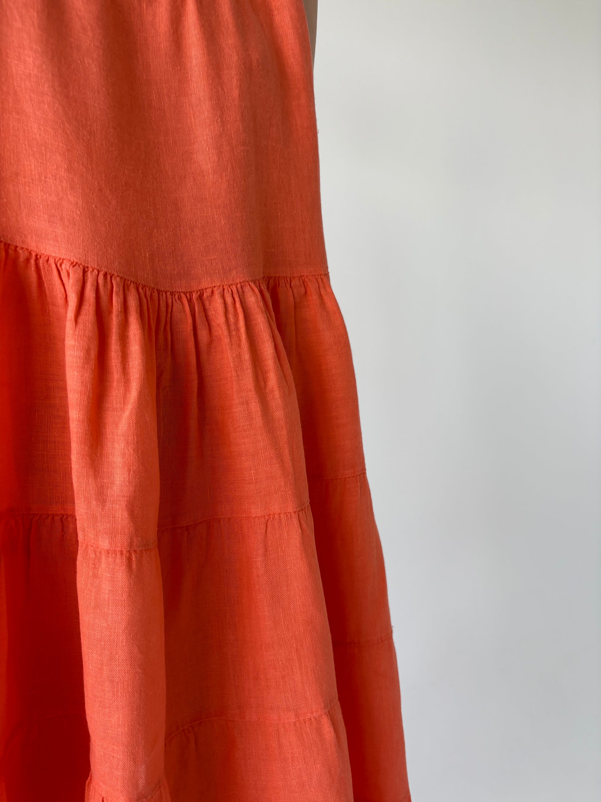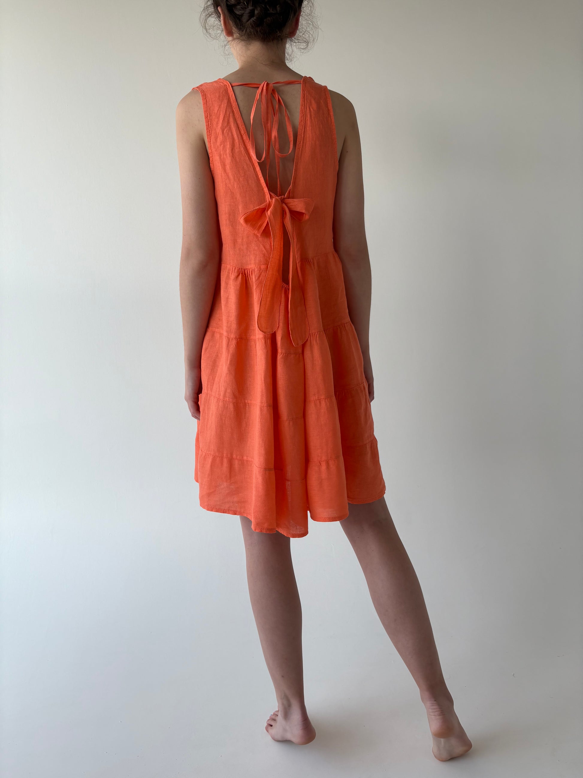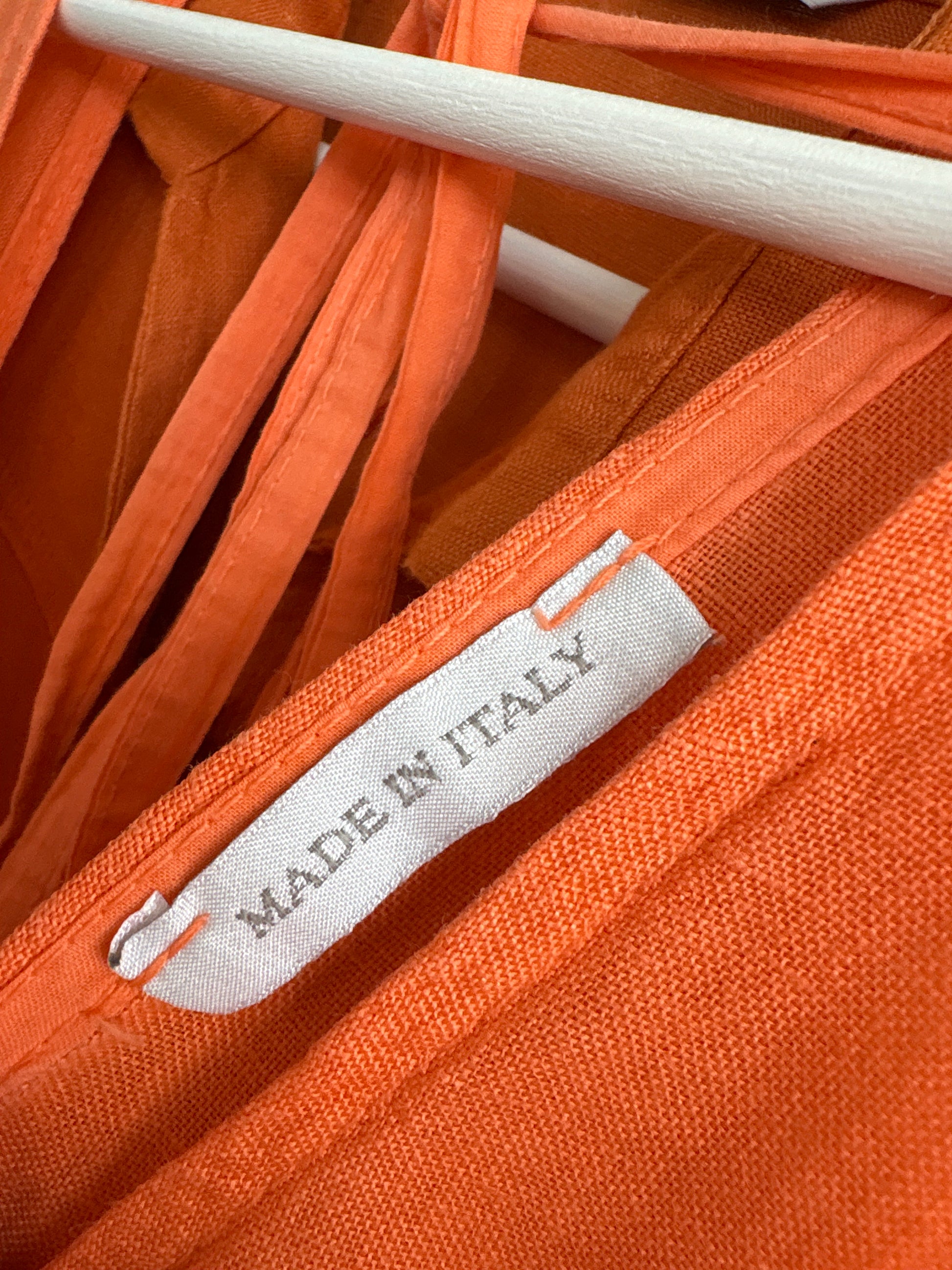 Rochie coral orange italiană din in cu spate decupat reglabil
