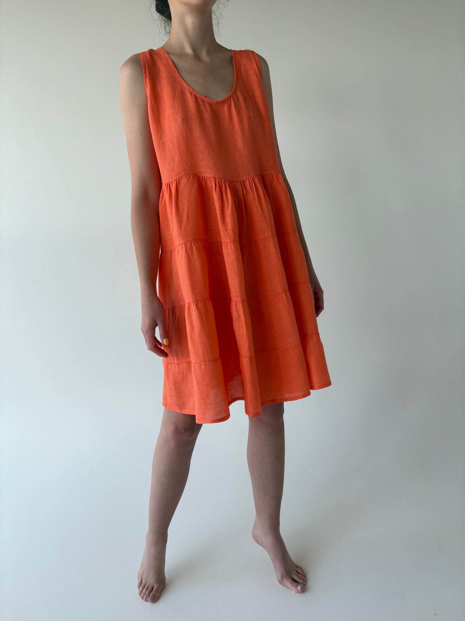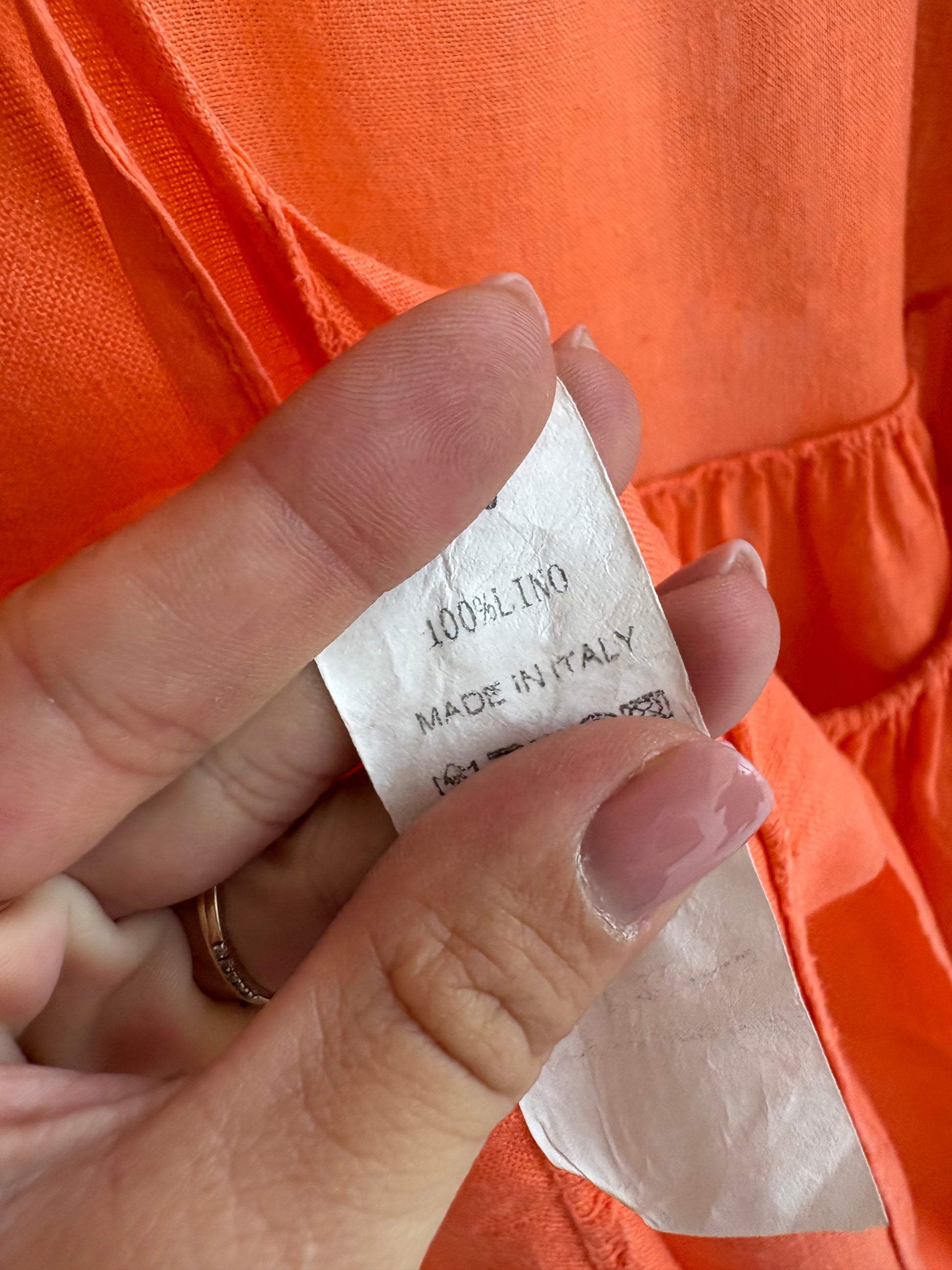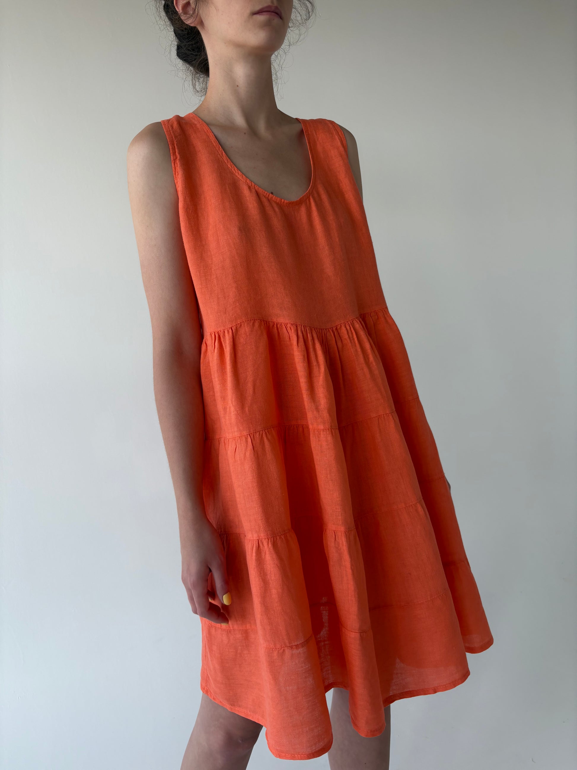 Rochie coral orange italiană din in cu spate decupat reglabil