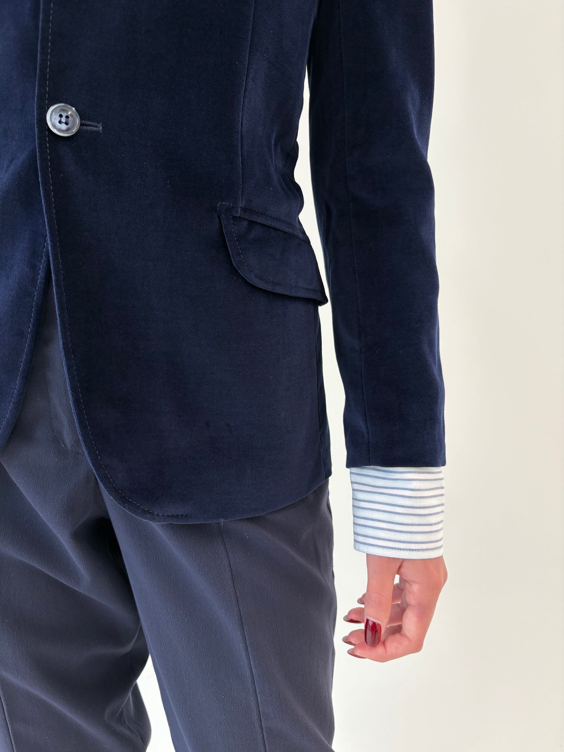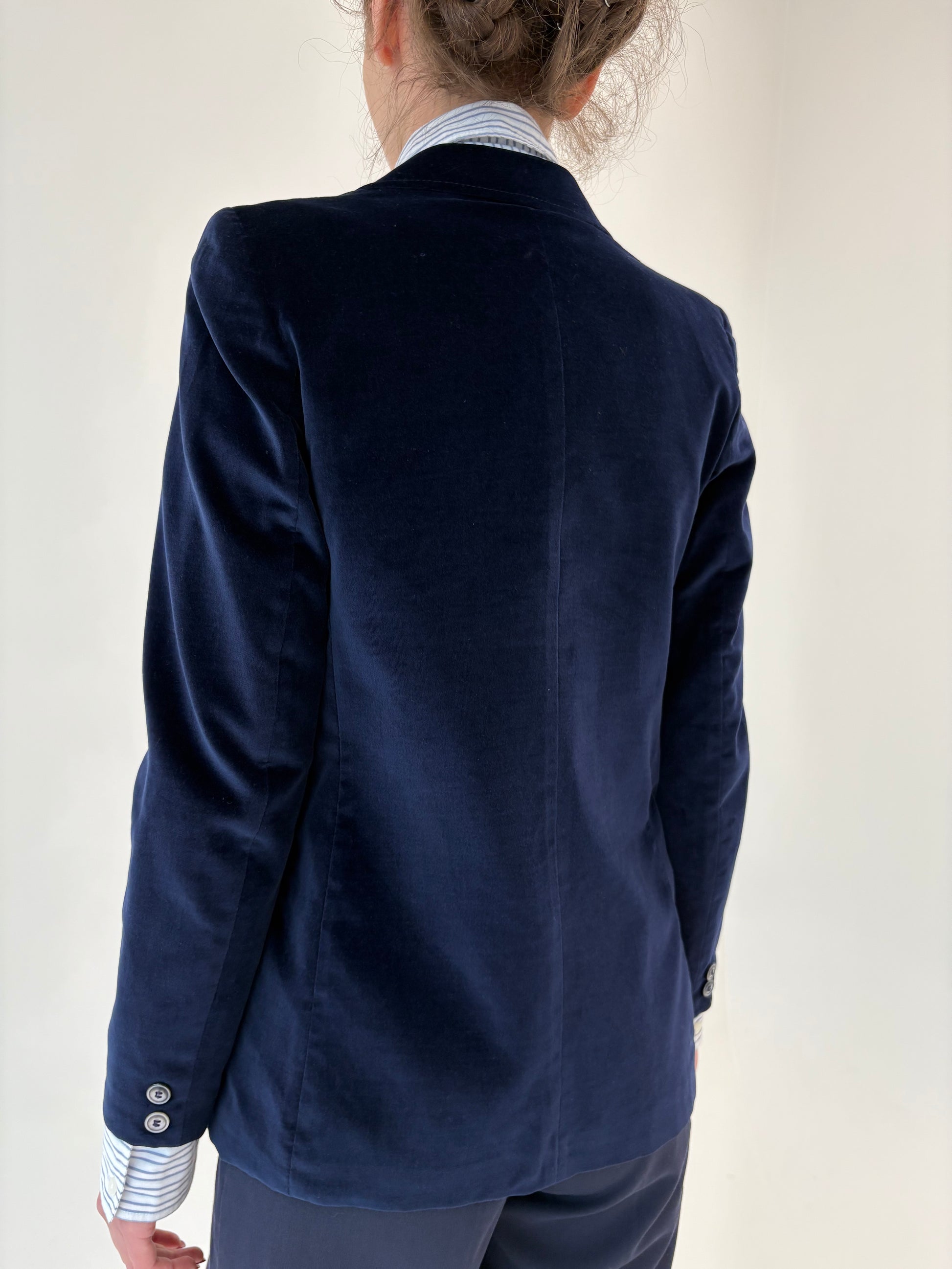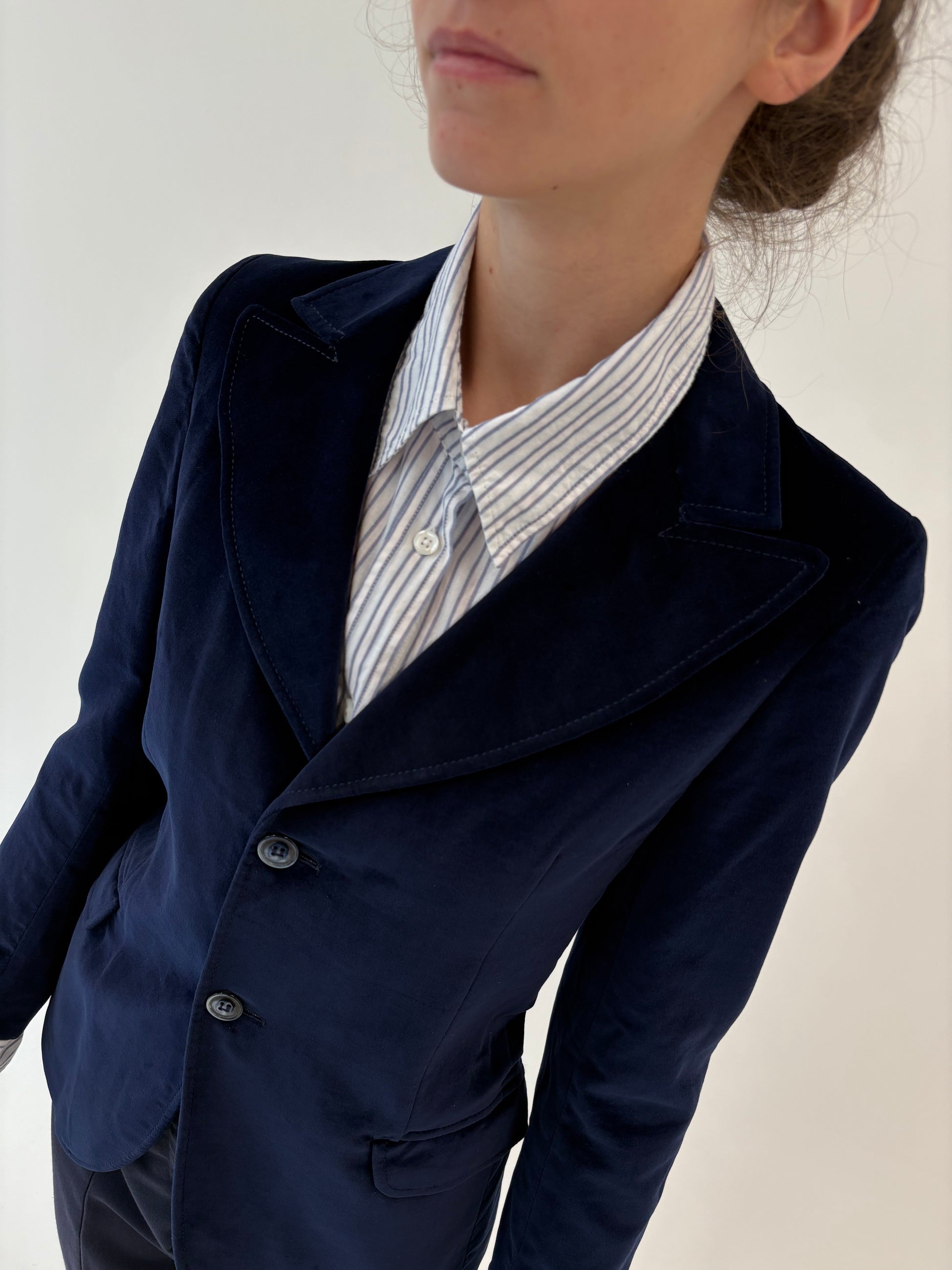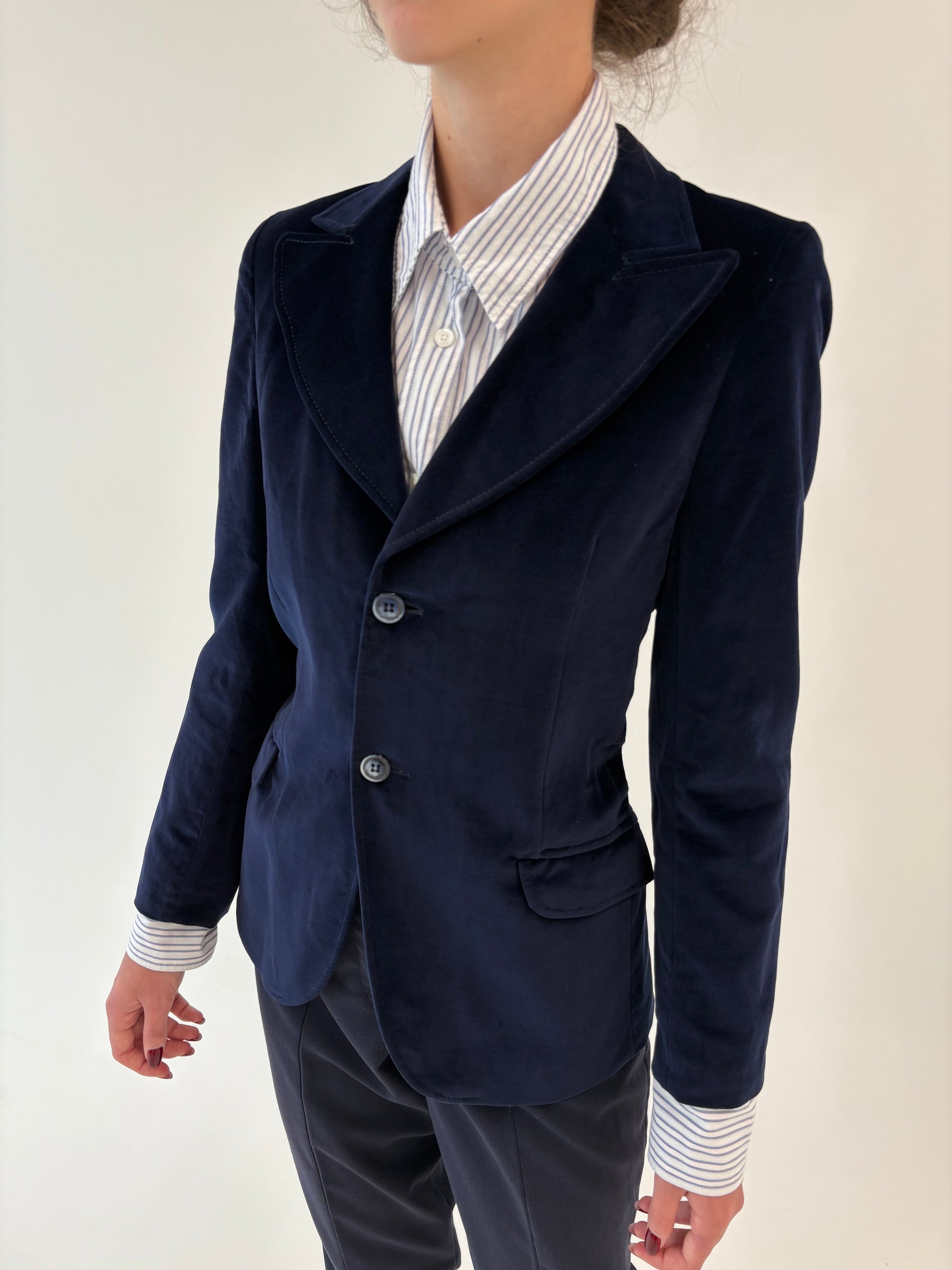 Sacou vintage din catifea albastru cerneală cu revere late și croi cambrat
