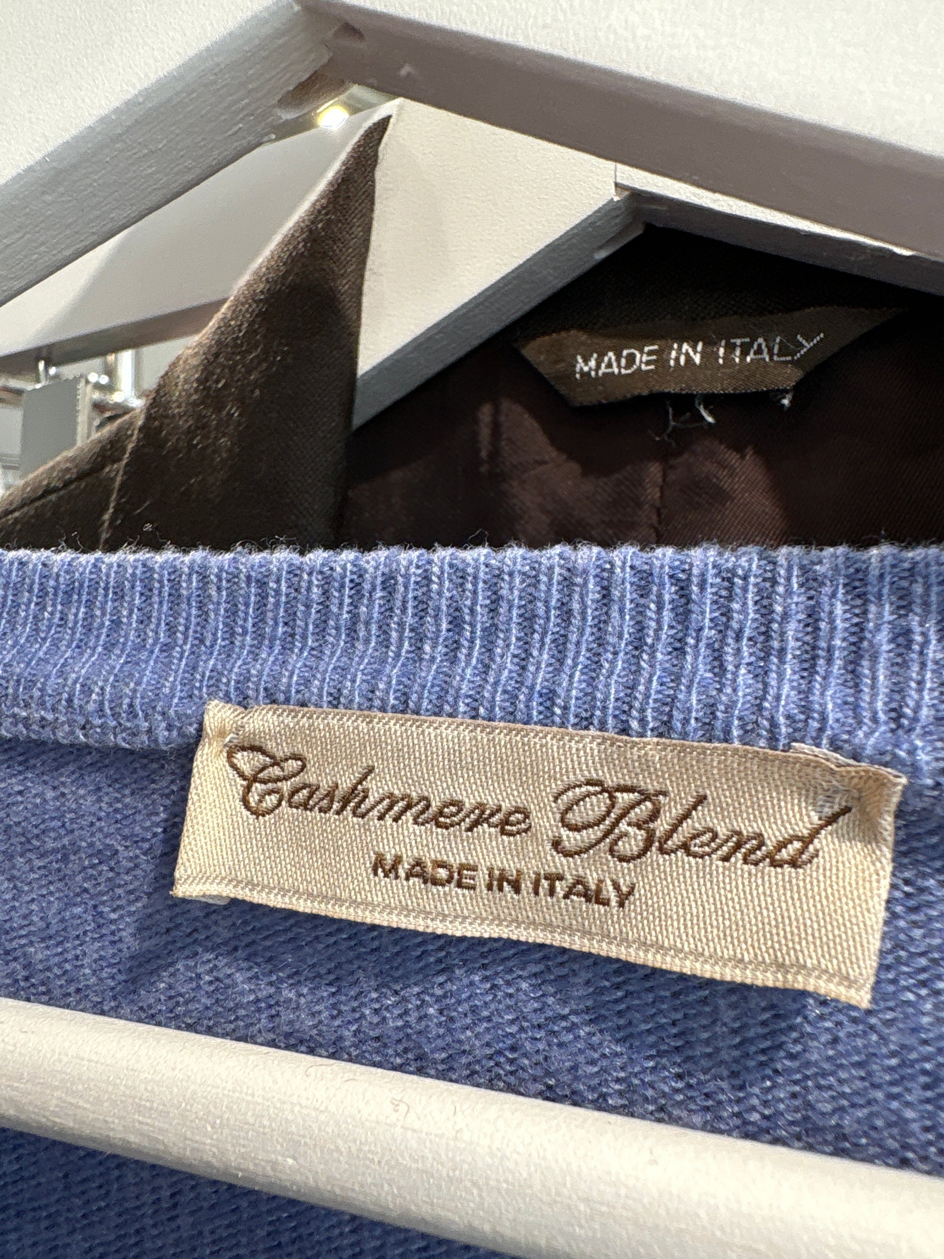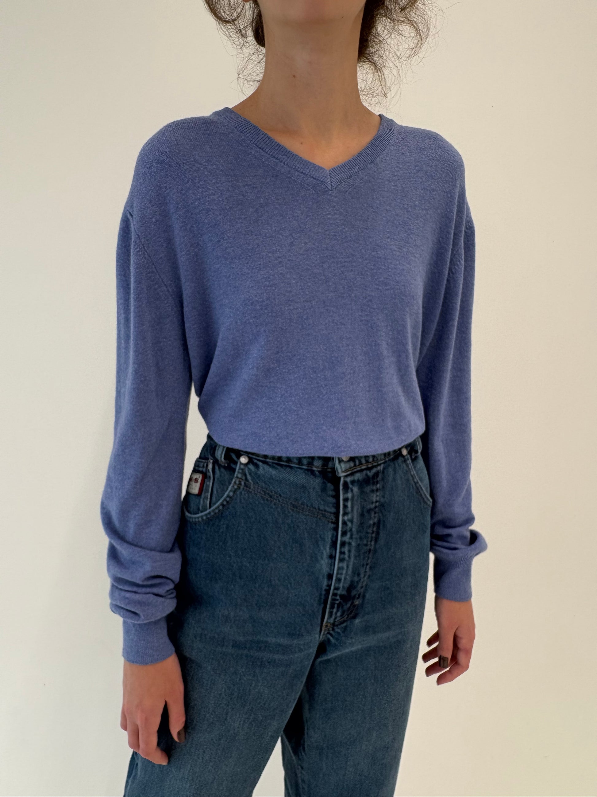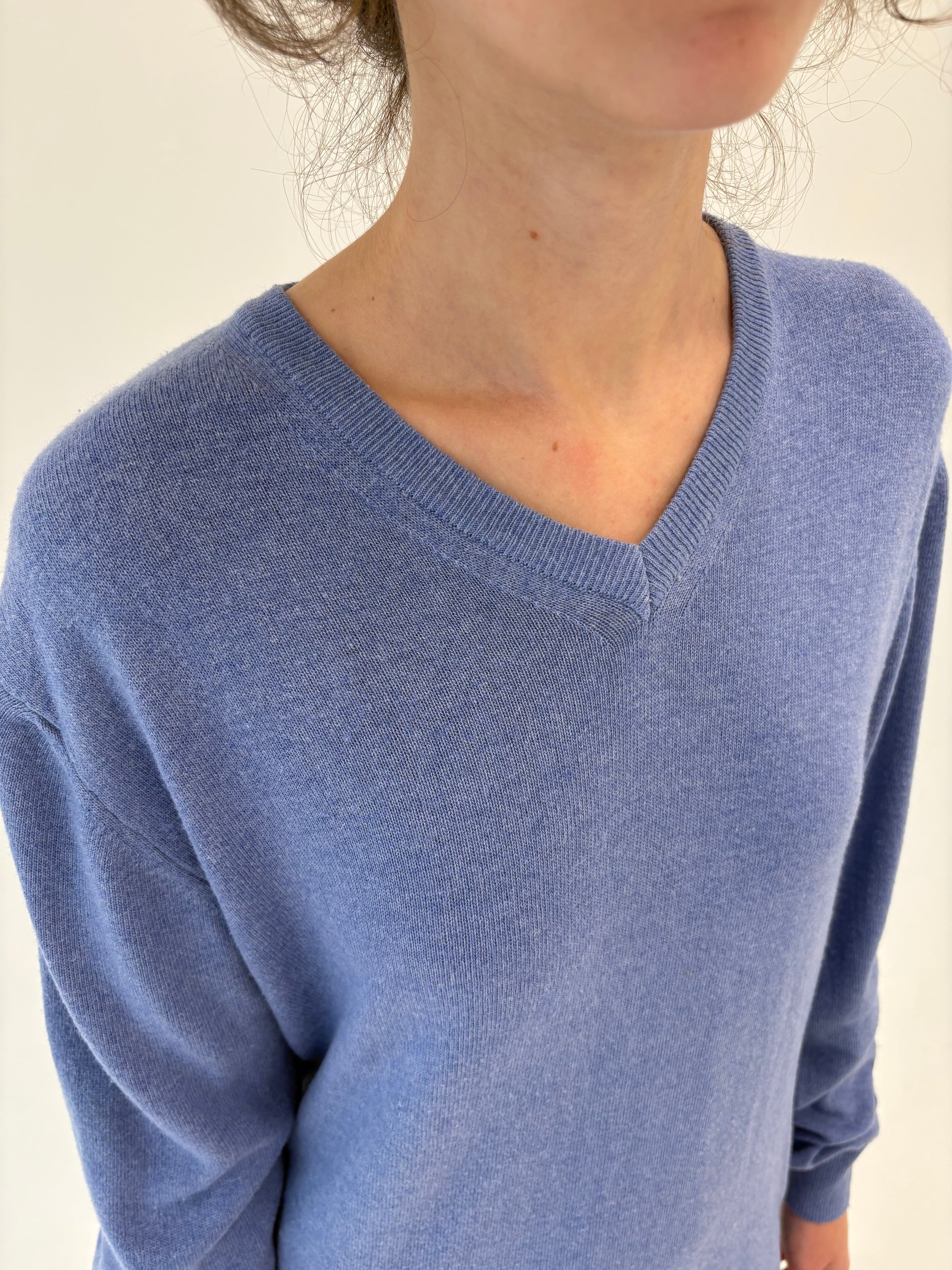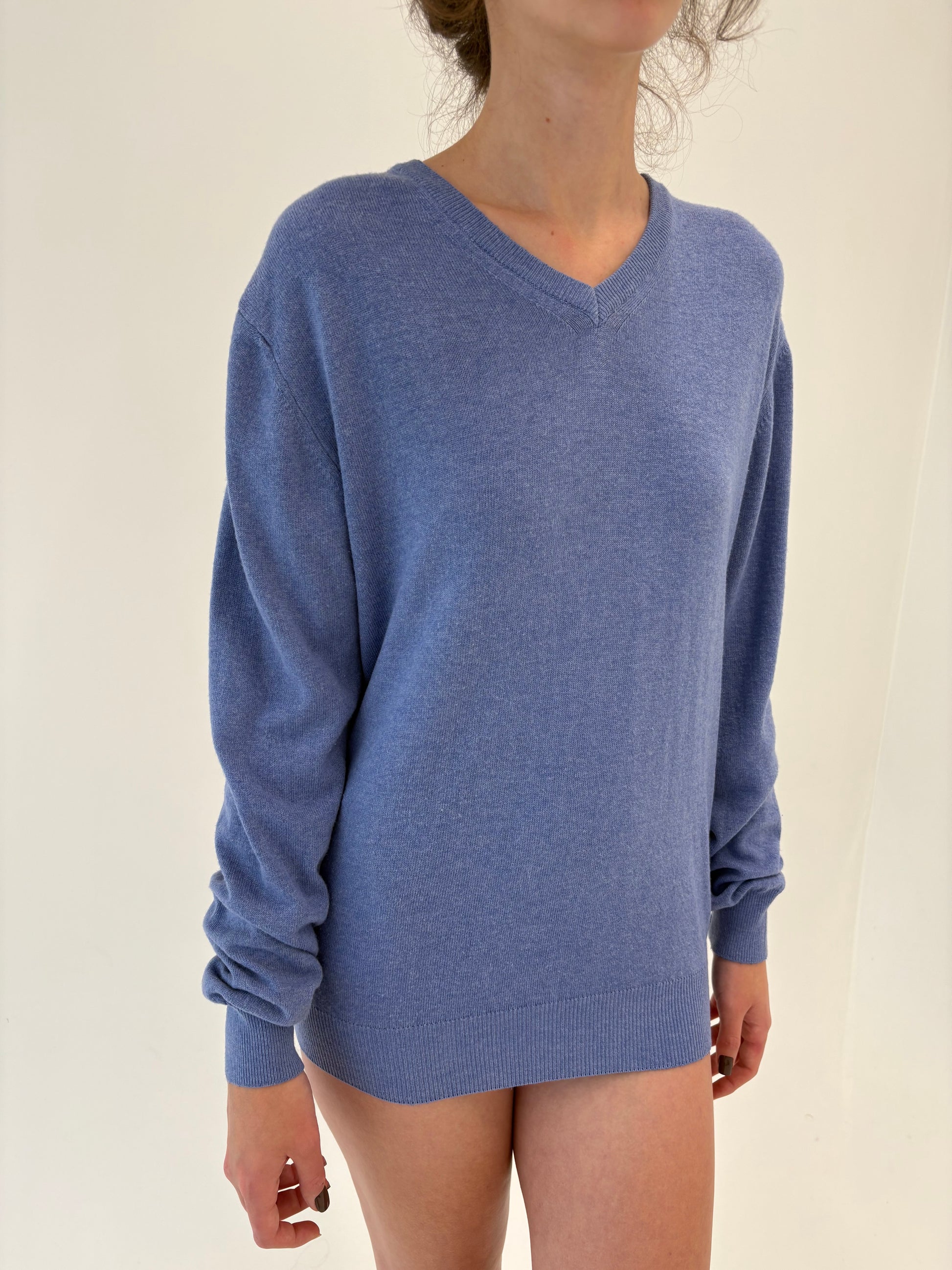 Pulover tall italian din cașmir și lana merino de gramaj mare albastru ciel