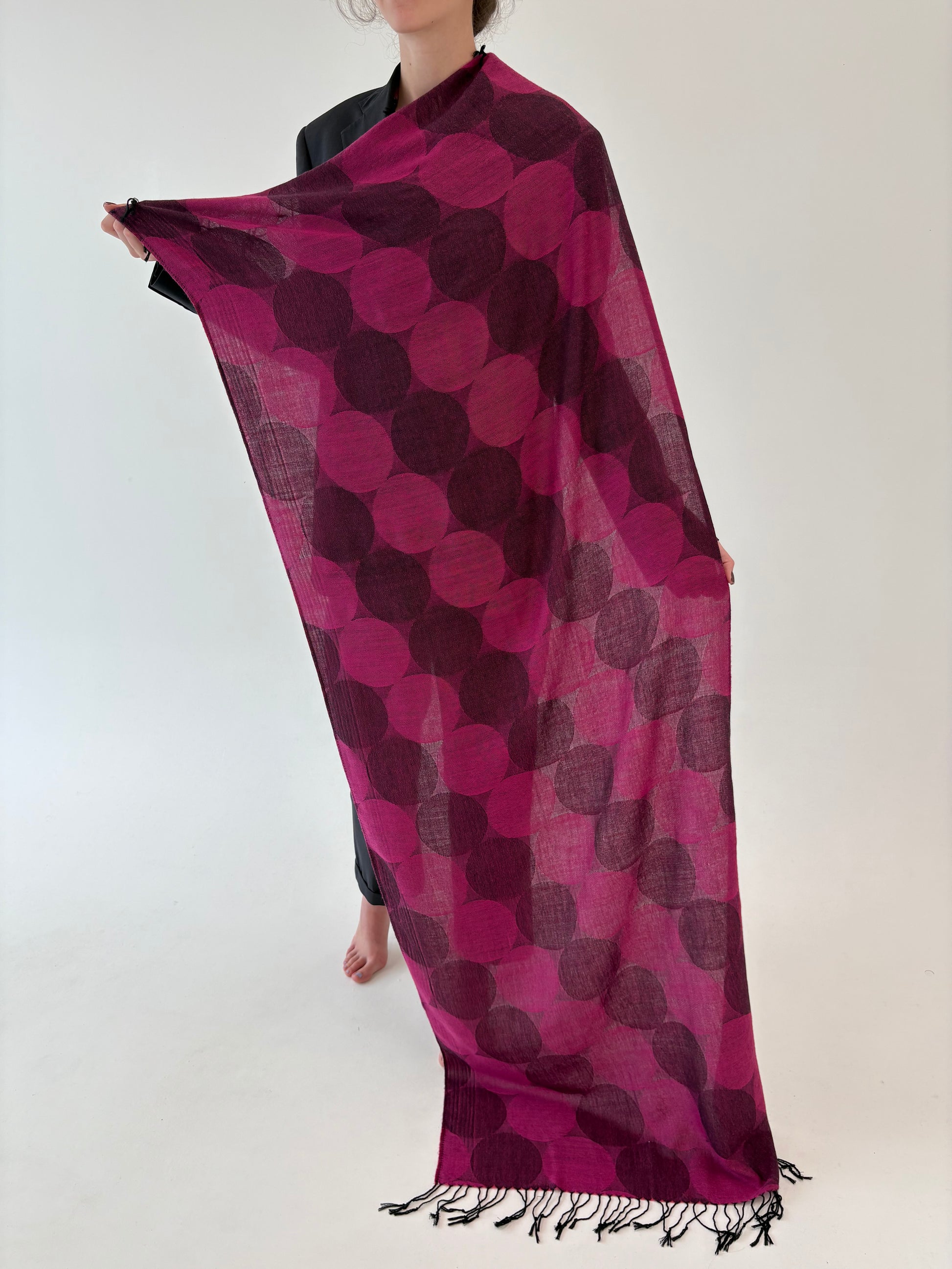 Sal XXL din cașmir și mătase naturală cu fucsia