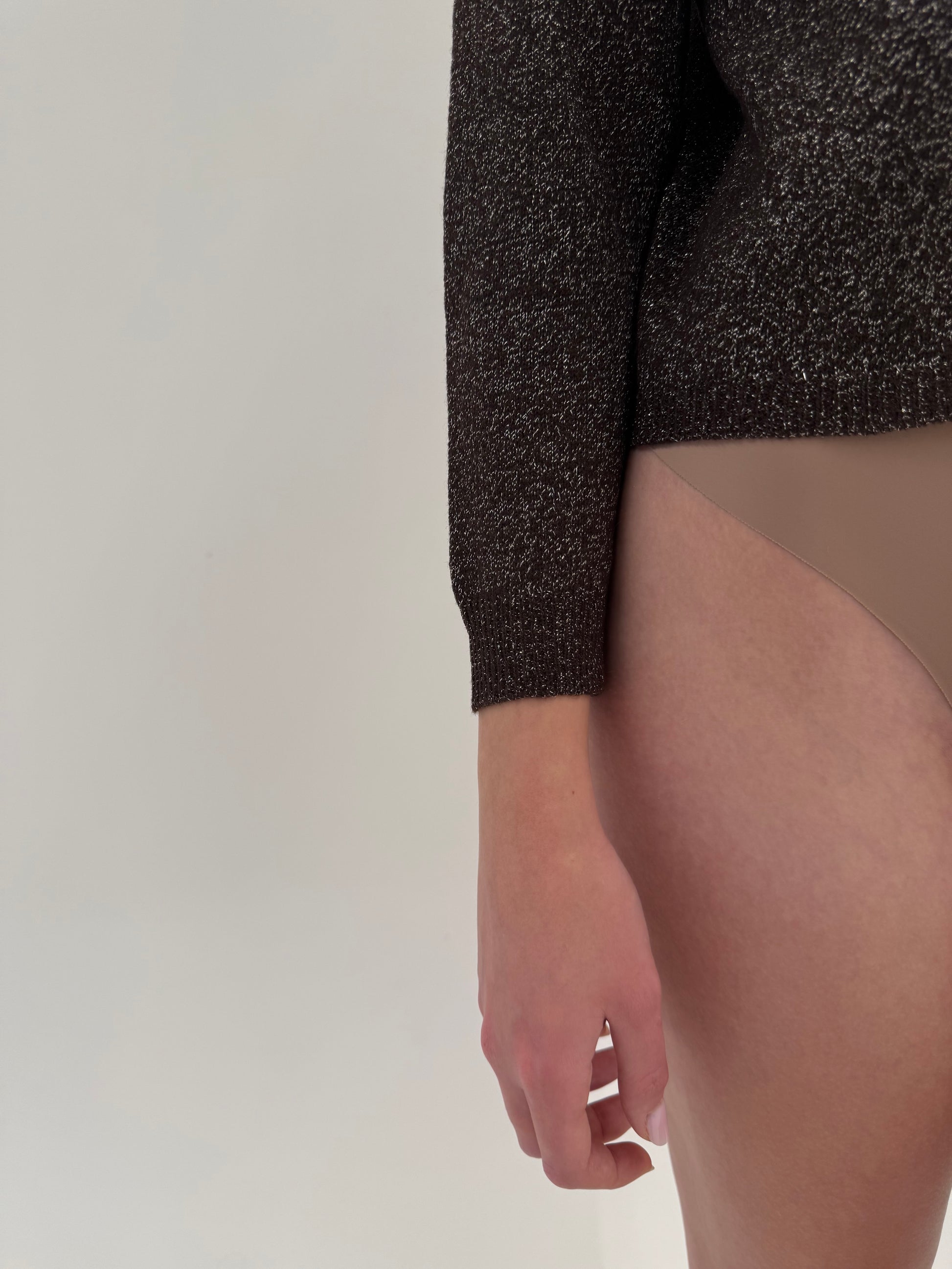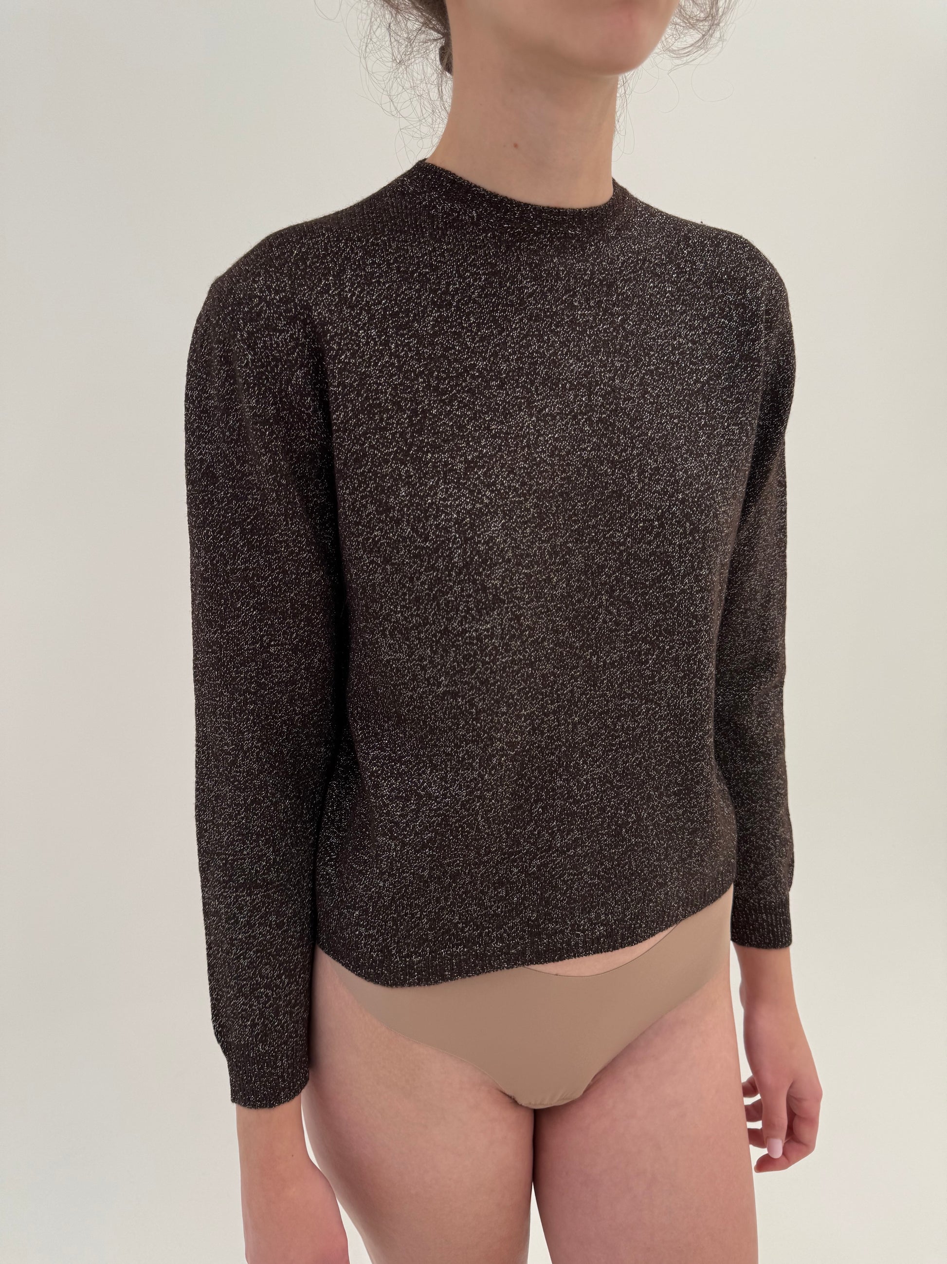 Pulover vintage prețios chocolate brown din lana extrafina cu lurex fin