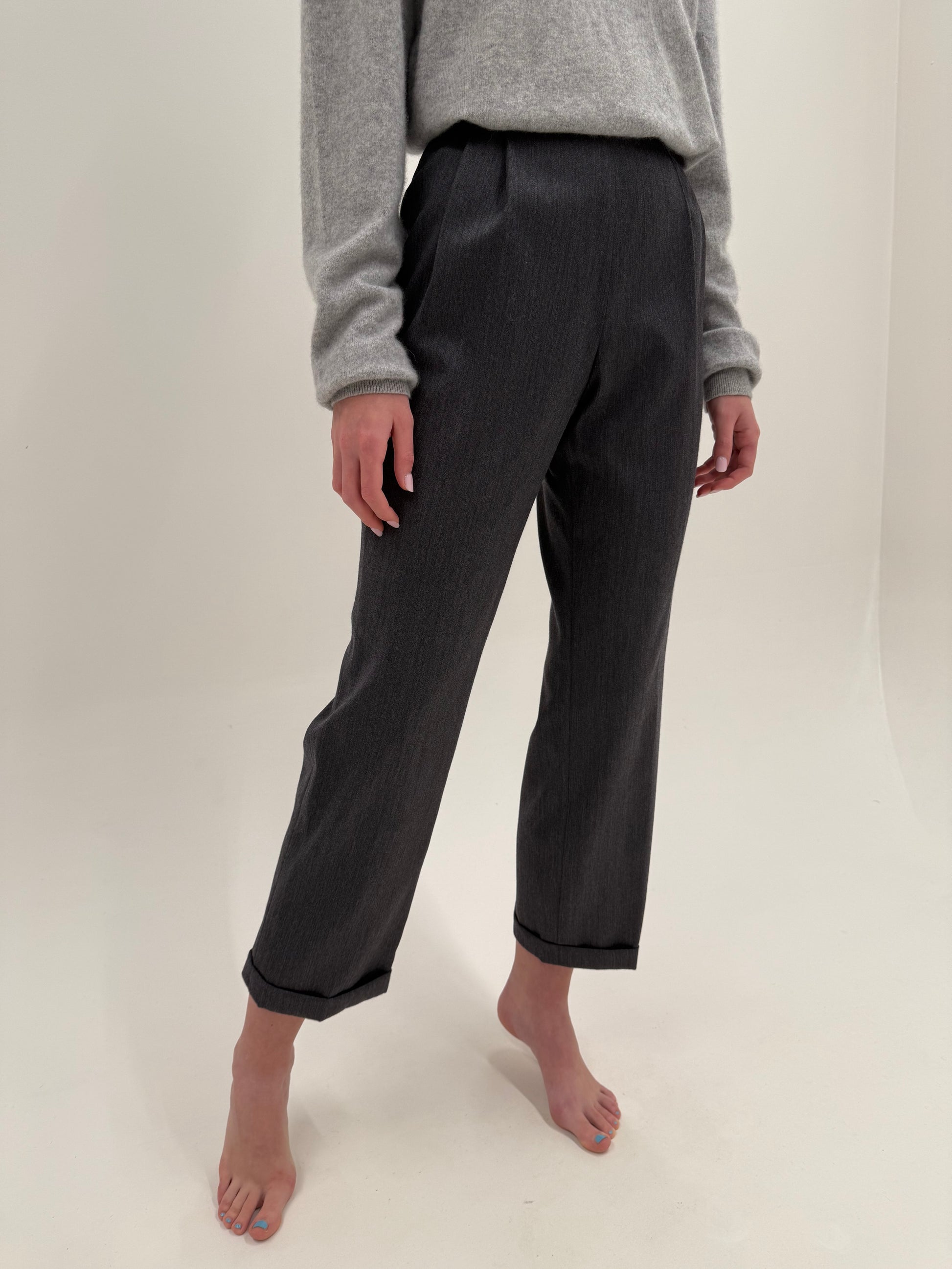 Pantaloni high end italienești din stofă de lana extrafina plină cu pense