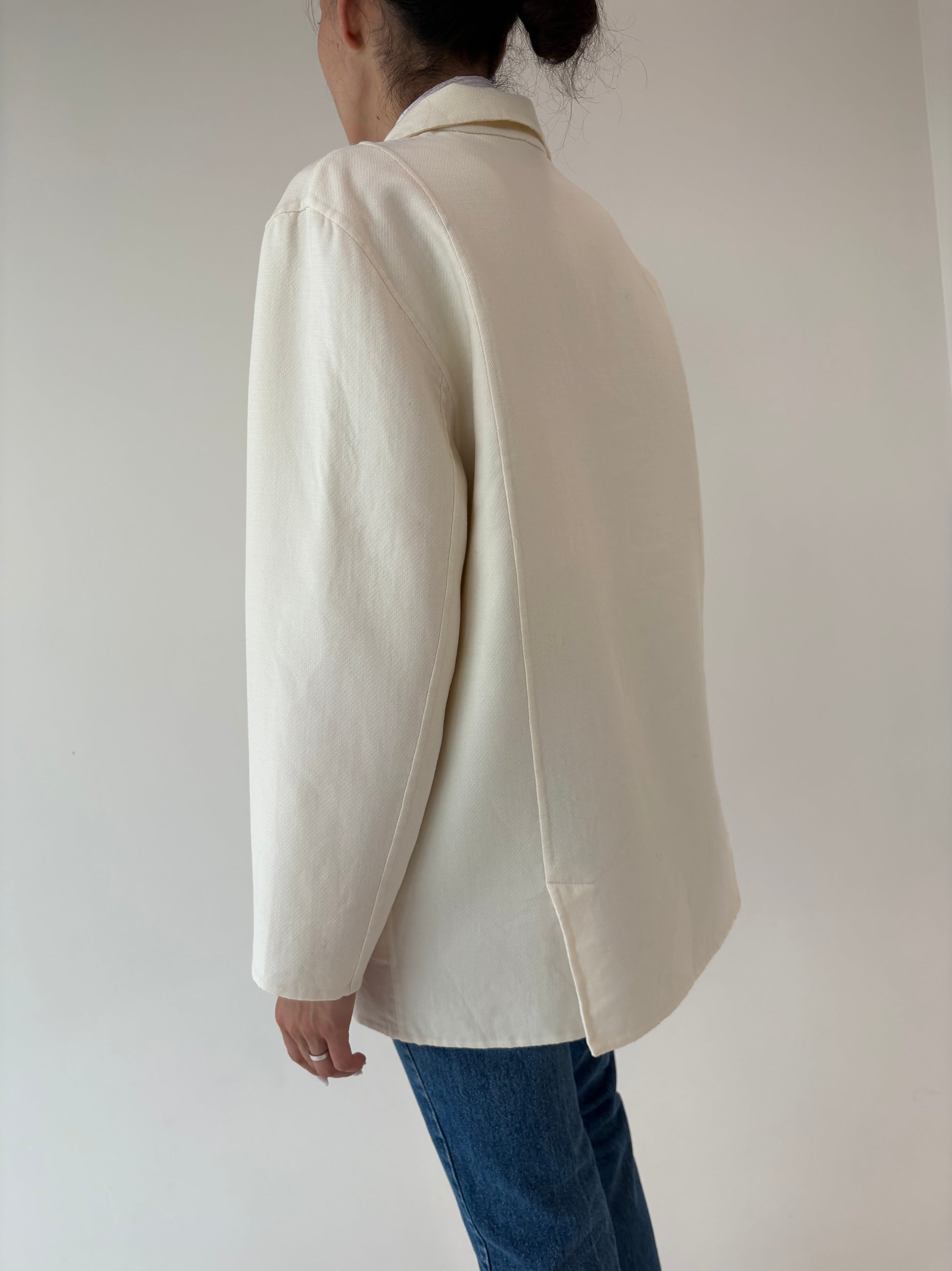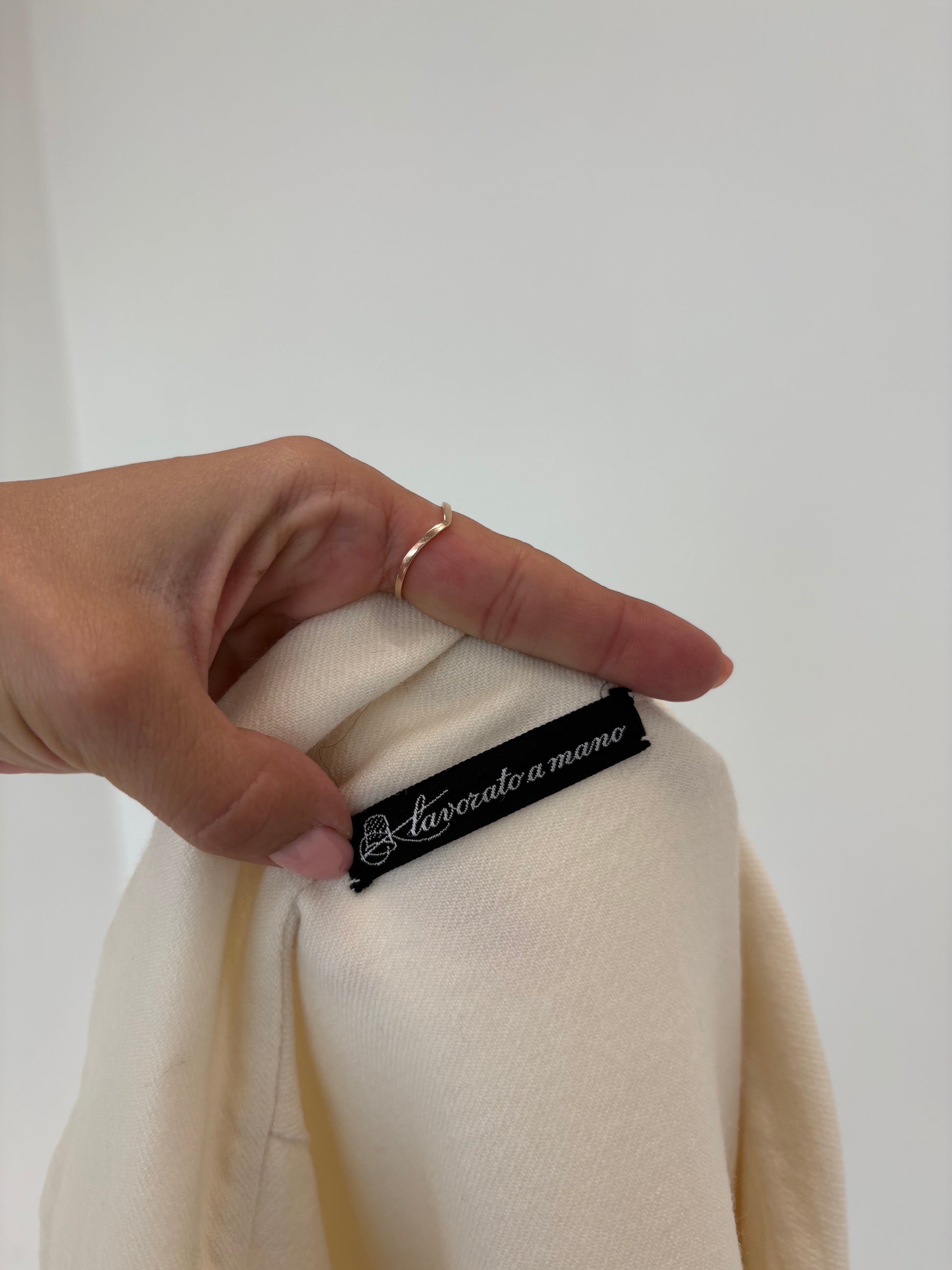 Paltonas vintage italian couture din lana extrafina butter white în croi retro modern