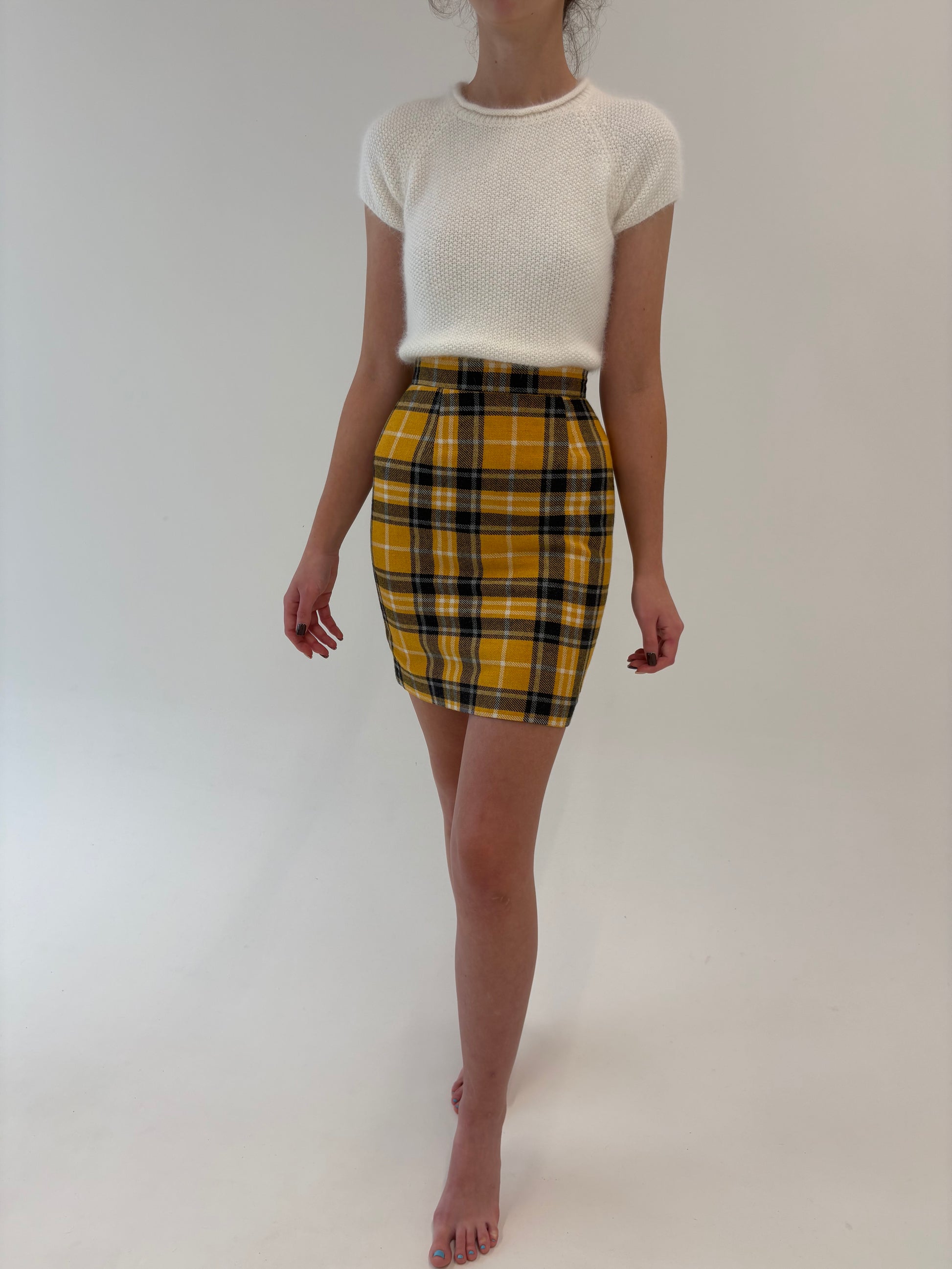 Fustă conică cu talie ultra înaltă marcată din Tartan de lana