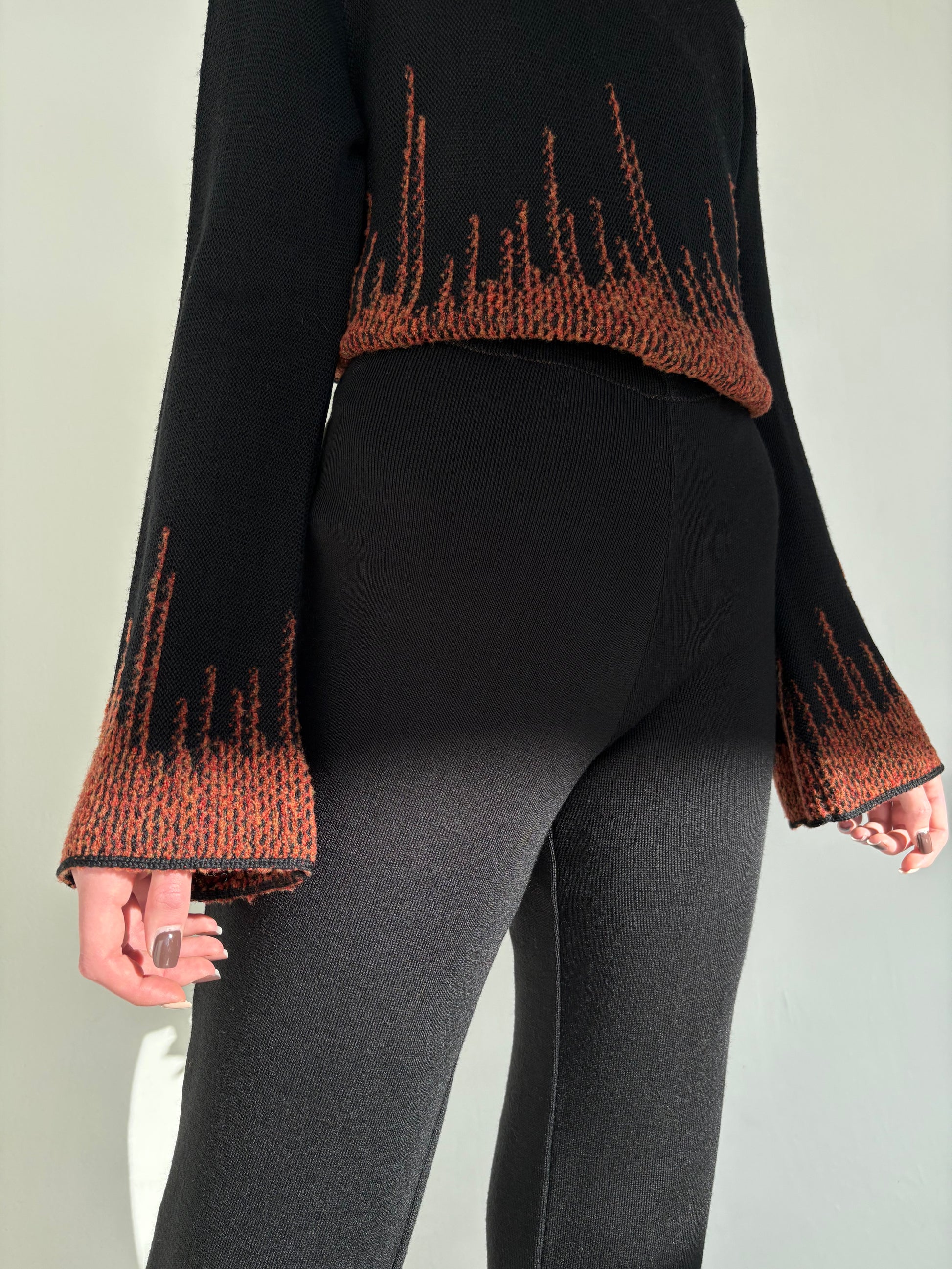 Pantaloni negri din tricot strech de lana merino extrafina cu talie ultra înaltă